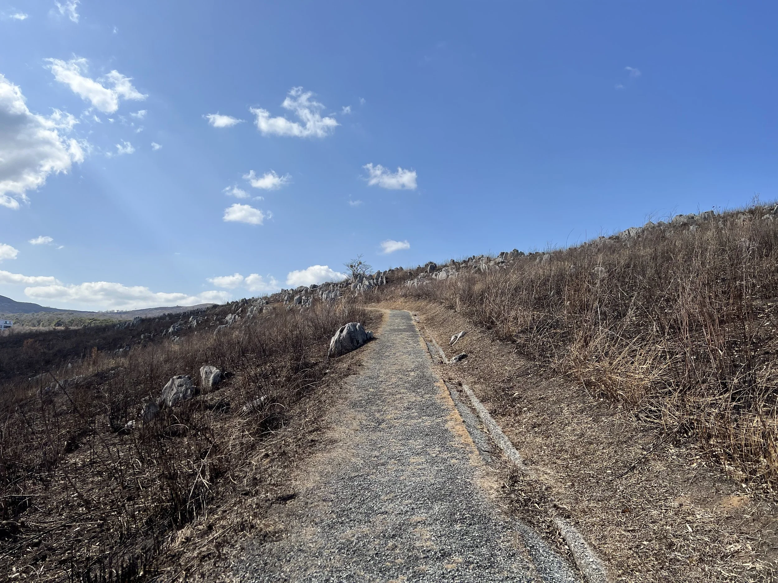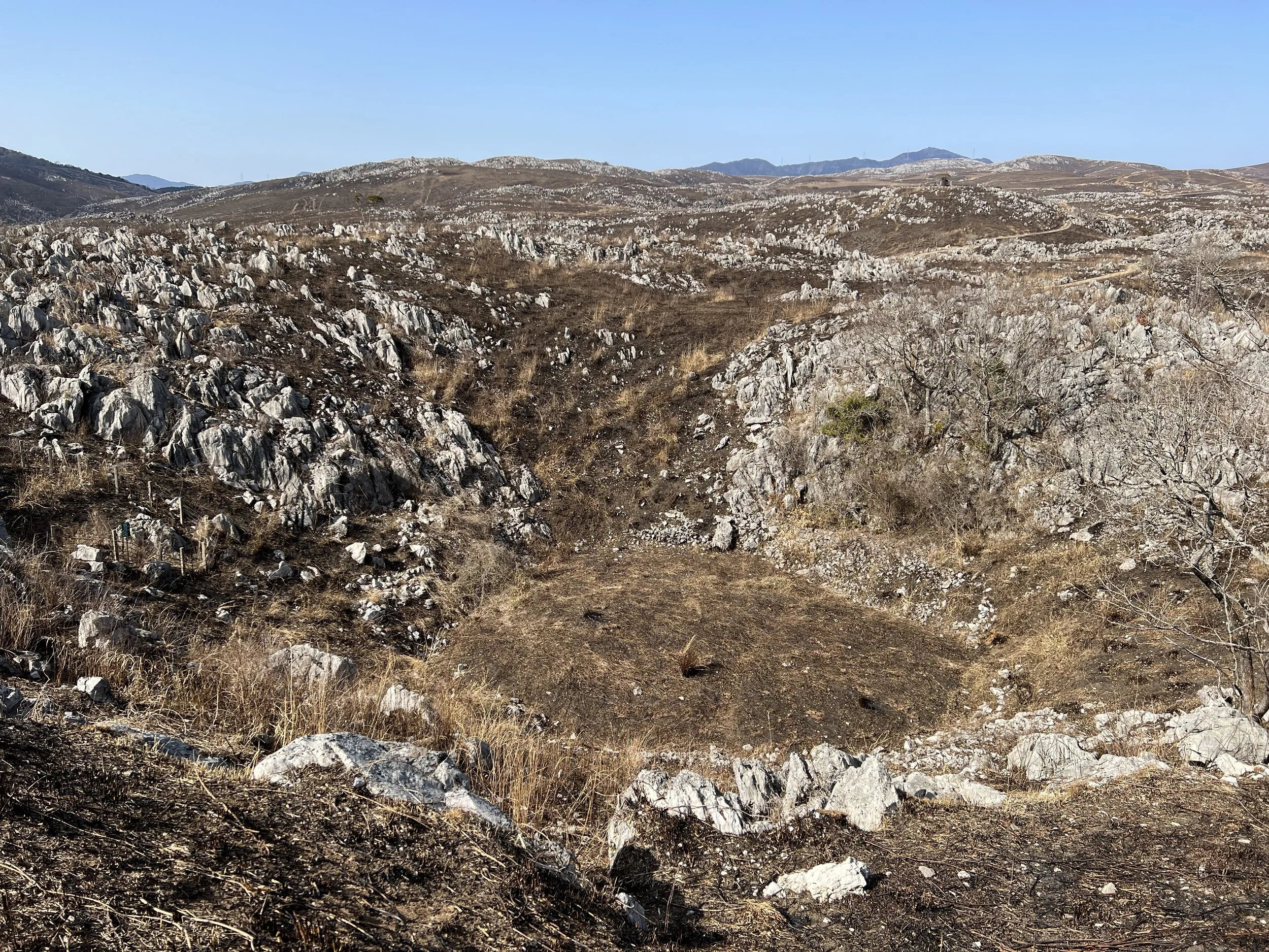 The Akiyoshidai Plateau is scattered with limestone pinnacles, creating a landscape that feels rare and almost otherworldly in Japan. The limestone here originated as a coral reef roughly 300 million years ago. A network of hiking trails crisscrosses the plateau, allowing for various route combinations. I chose the trail leading to Mt. Wakatake, though it’s easy to connect this hike with other nearby peaks. The scenery felt unique no matter where I looked.