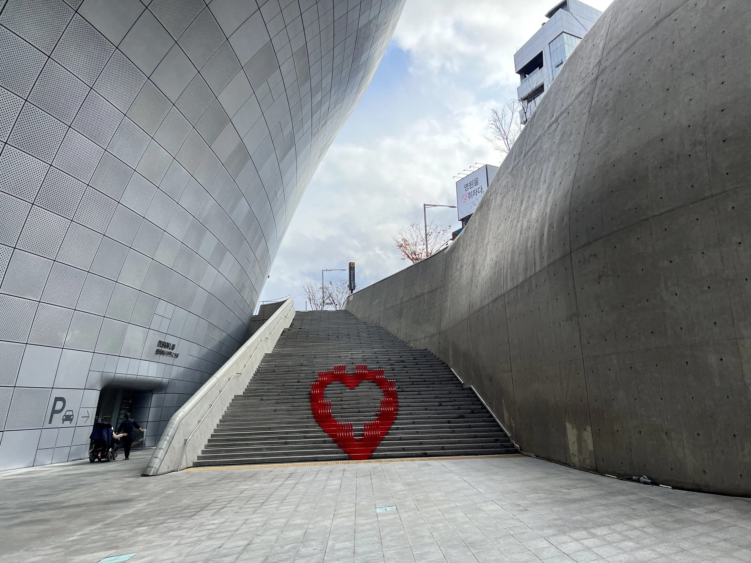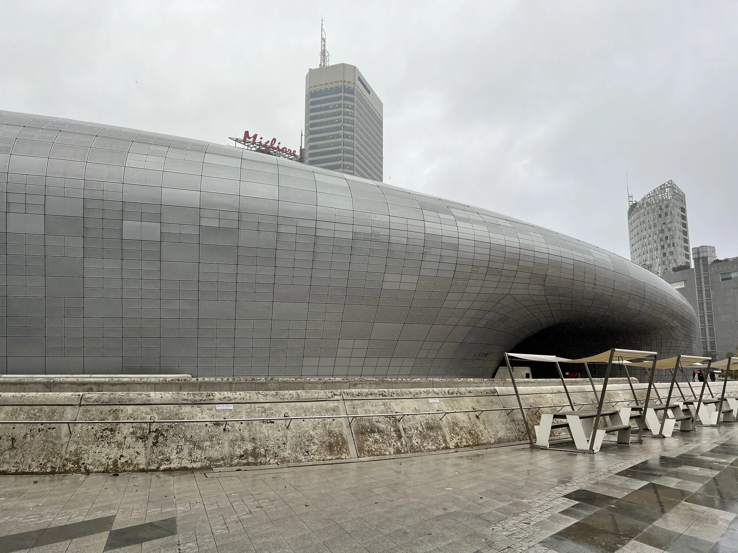Dongdaemun Design Plaza (DDP) came highly recommended by a friend, and after looking into it, I was immediately drawn to its futuristic architecture. Designed with sweeping curves, metallic surfaces, and a seamless flow of space, the building looked unlike anything else in Seoul. Since it was pouring rain that morning, visiting DDP felt like the perfect indoor adventure.