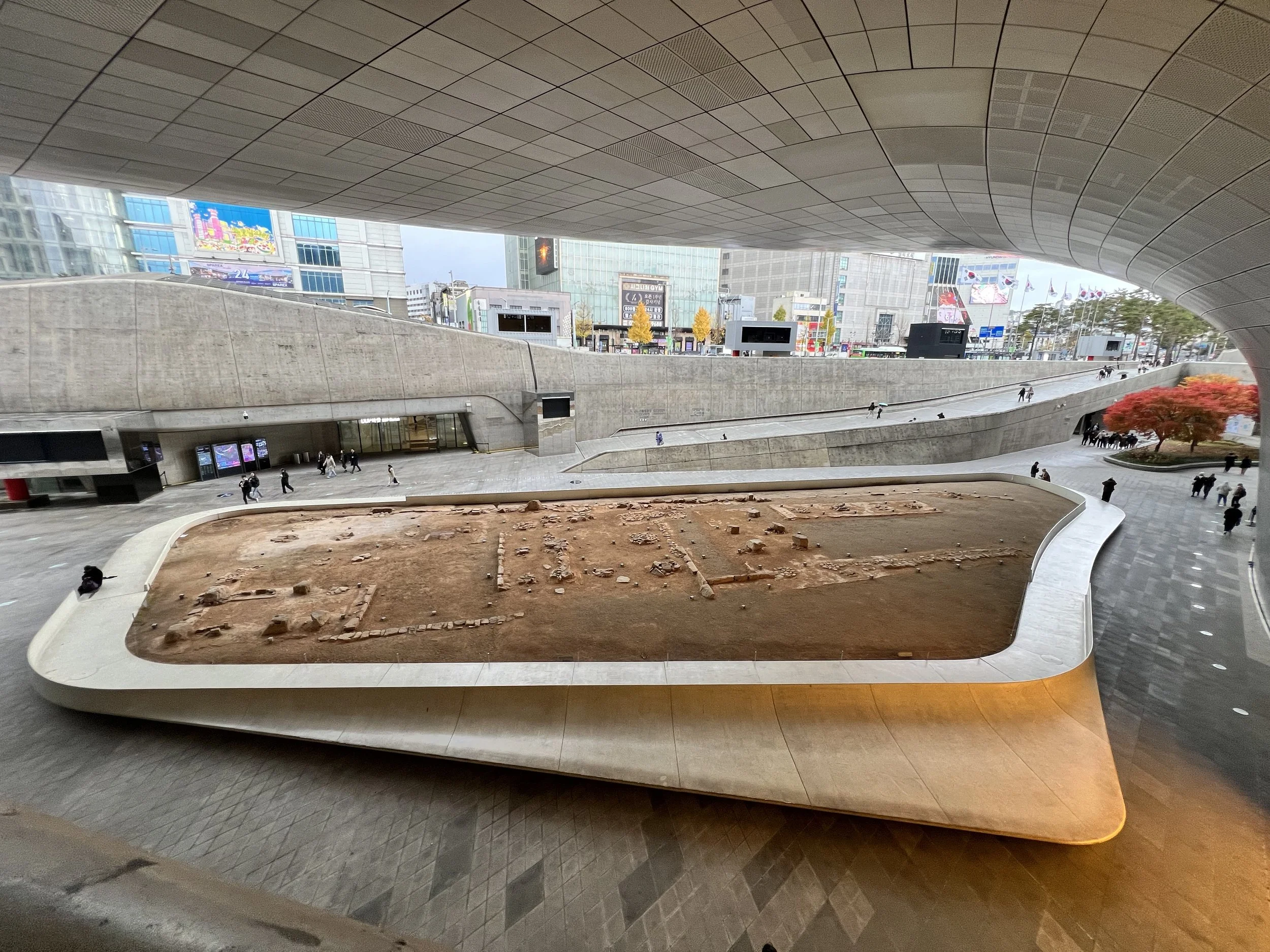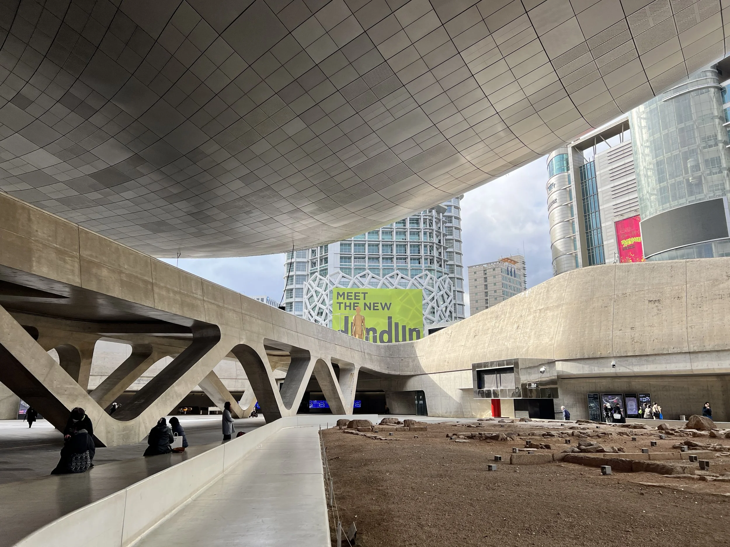 I took the subway from Seoul Station to Dongdaemun History & Culture Park Station, and as soon as I exited the station, I was right at the plaza. The area is more like a cultural complex than a single attraction—complete with galleries, exhibition halls, a history museum, design shops, cafés, restaurants, rooftop spaces, and an underground market.