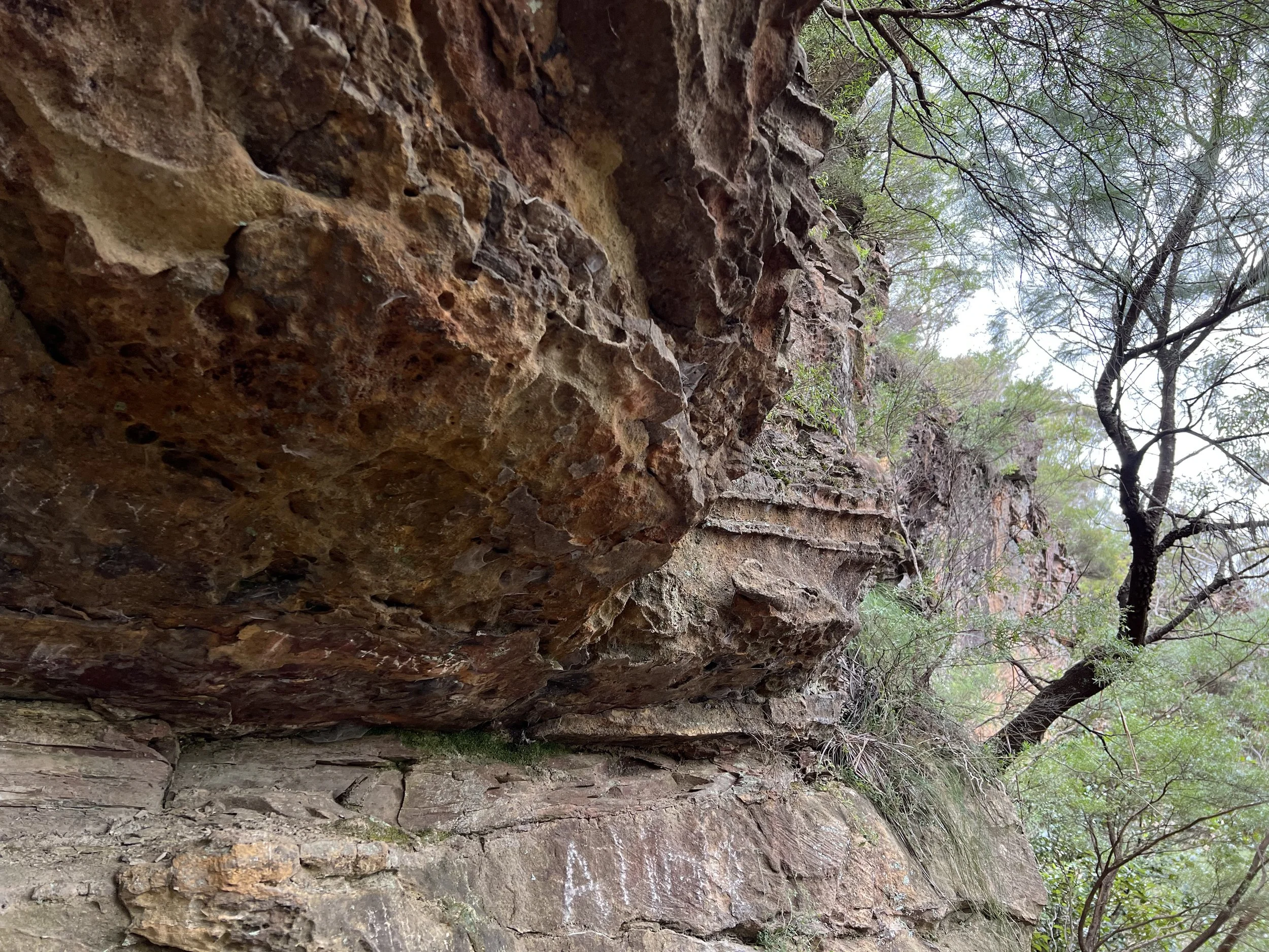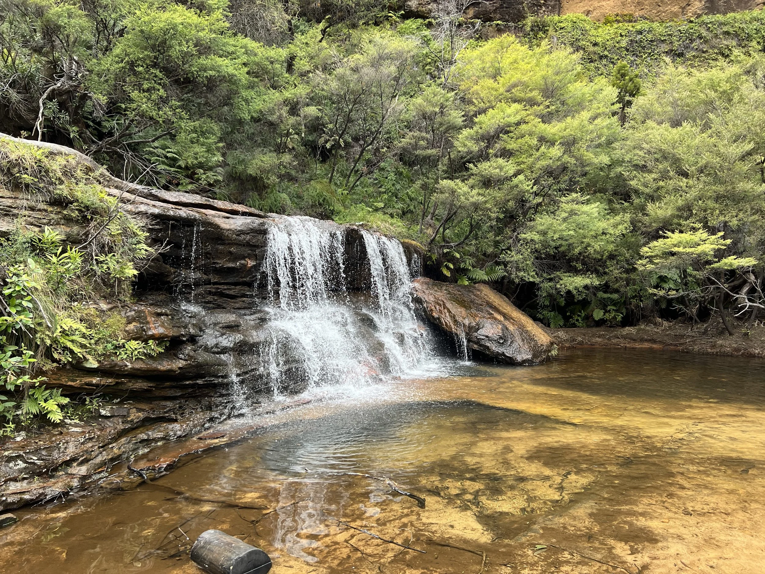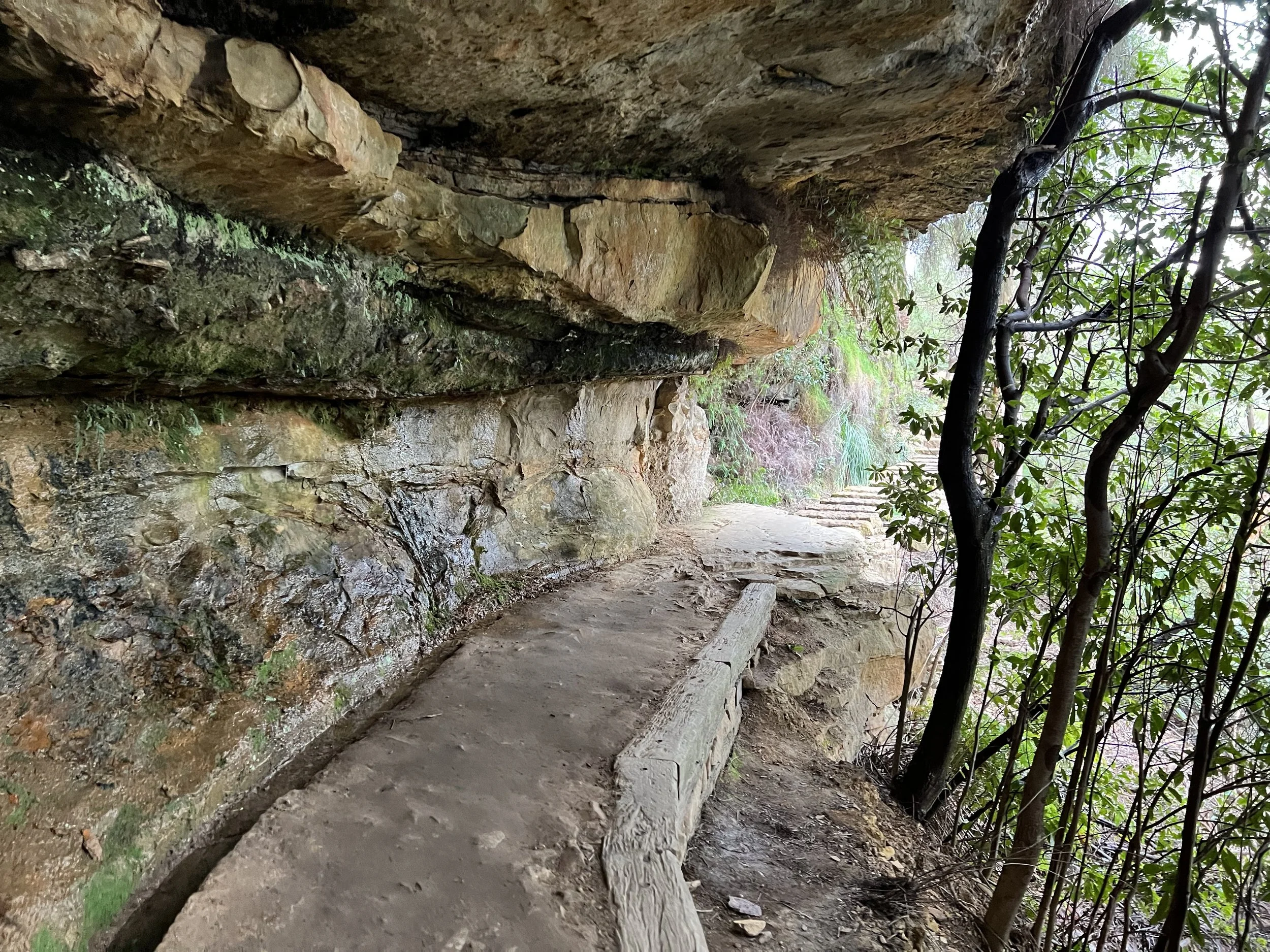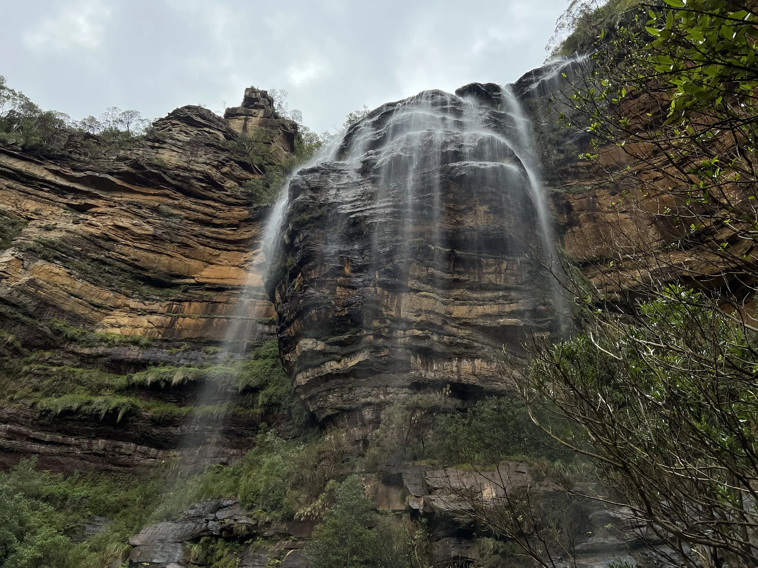Our group walked the Overcliff–Undercliff Track, a trail known for its low overhangs, hanging tree roots, and a series of lookouts that open up to sweeping valley views. As we made our way along the track, our guide shared stories and history about the region. From Wentworth Falls Lookout, we enjoyed our first full view of the waterfall, then continued to Fletchers Lookout where the views of the sandstone cliffs and the plateau were even more striking. Here, the guide offered the option to continue further down the trail. Only a few of us took him up on it, and I’m glad I did—I wanted to see the falls up close. The descent was steep, but the climb back up was the true workout. Still, the photos and the perspective were well worth the effort.