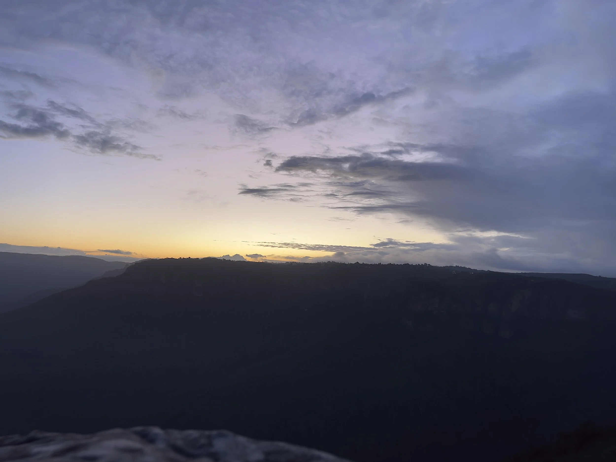 Our final stop of the day was Lincoln’s Rock, a wide sandstone ledge overlooking Jamison Valley. Known for its sunset views and stargazing potential, it’s a spot where the landscape truly feels endless. When we arrived, the sun was sinking behind the ranges, painting the sky in soft pinks, purples, and oranges. Sitting near the edge—carefully, as there are no railings—I took in the sweeping valley and felt that familiar sense of awe that only nature can inspire. It was a peaceful, reflective way to end the day.
