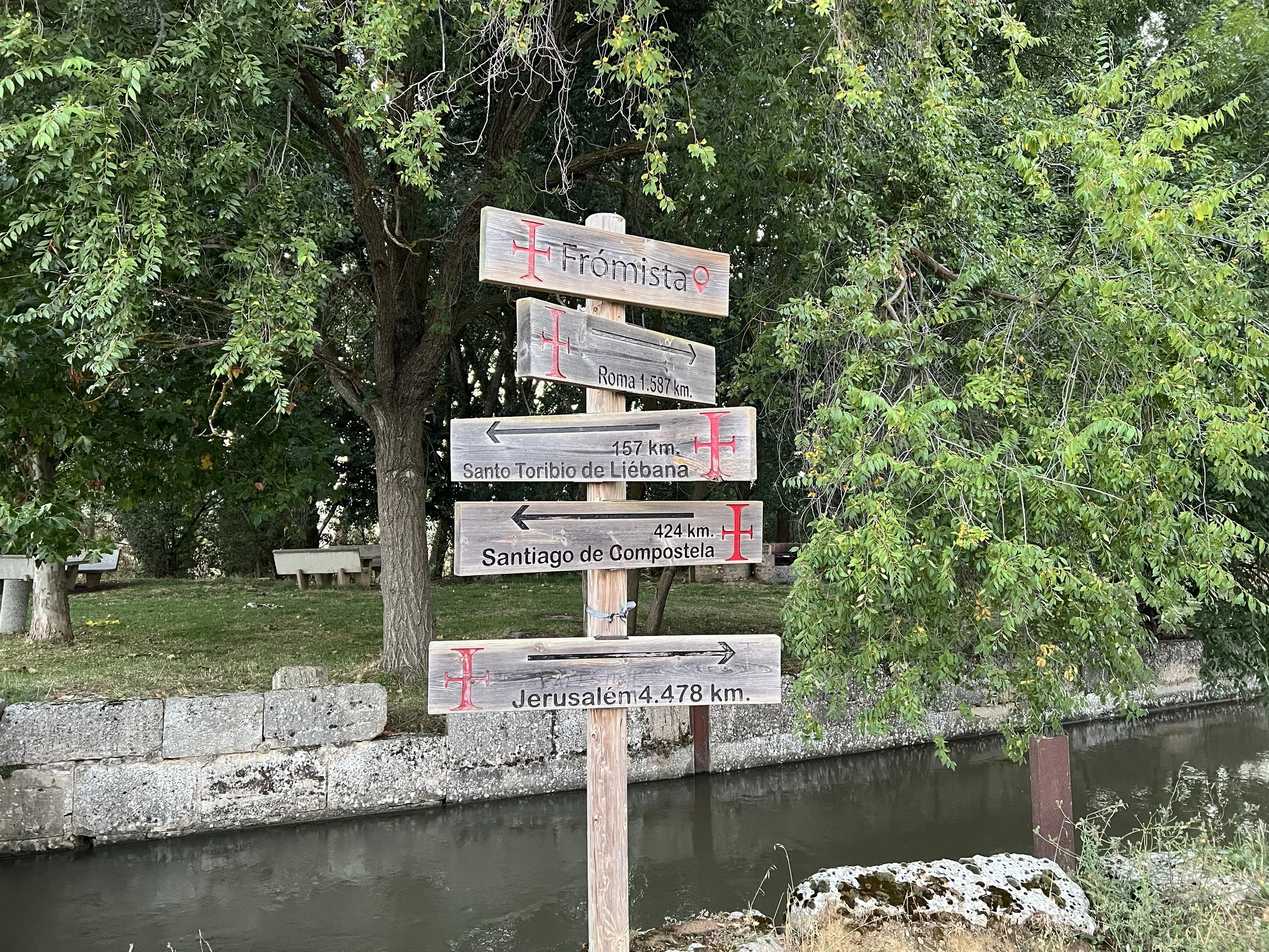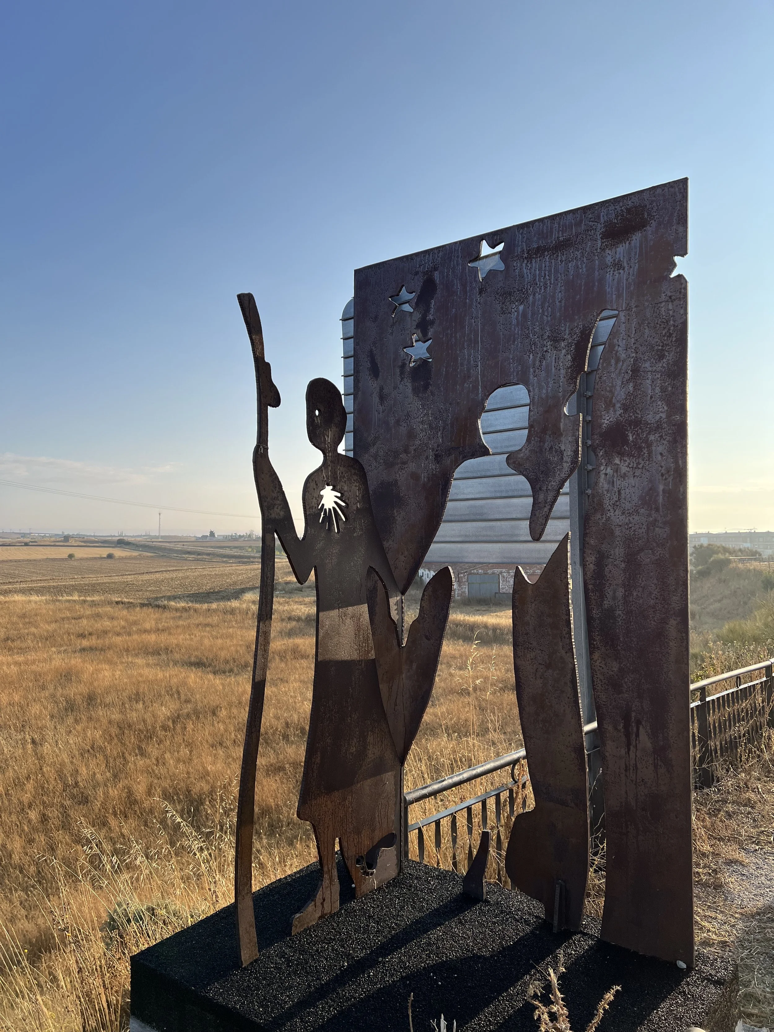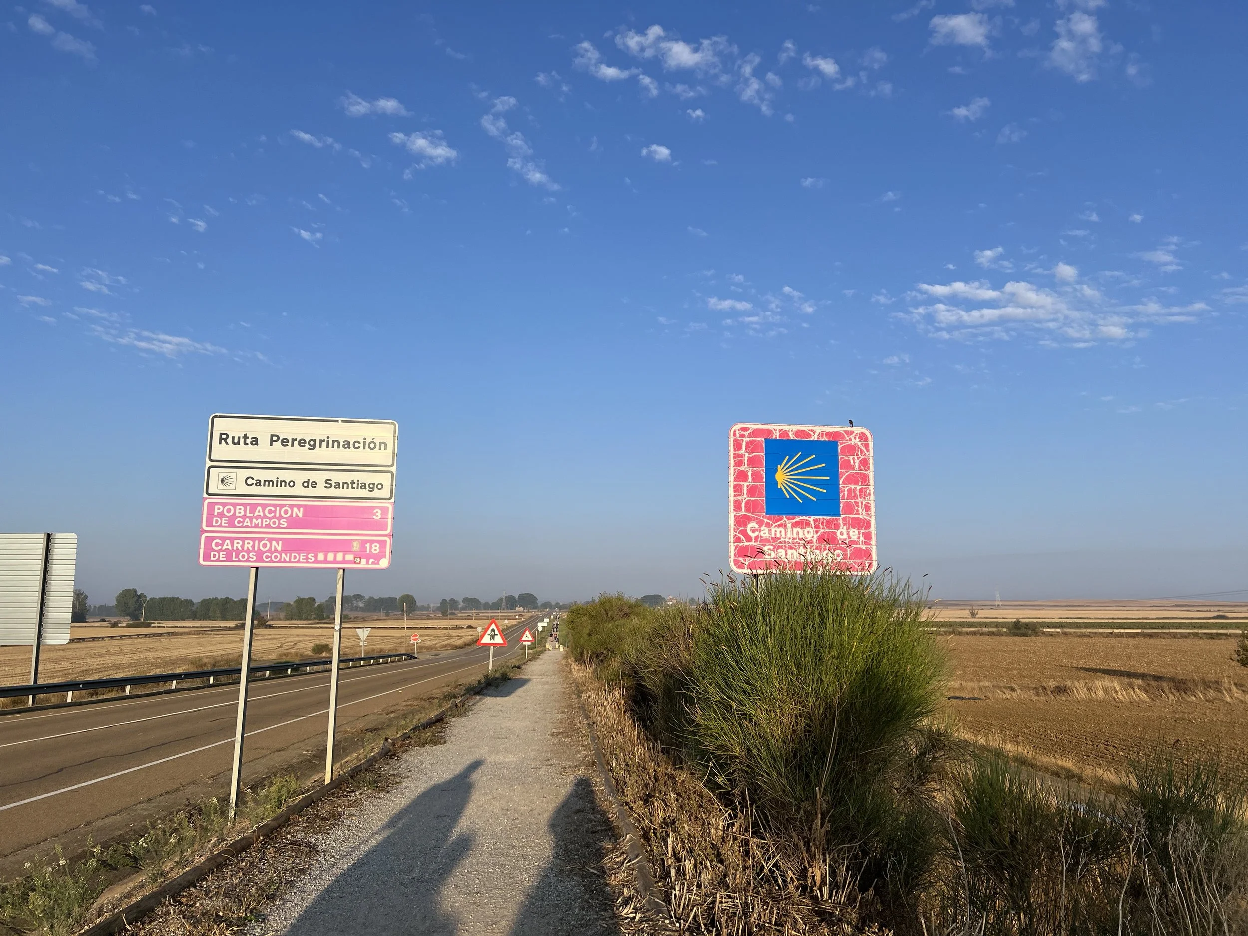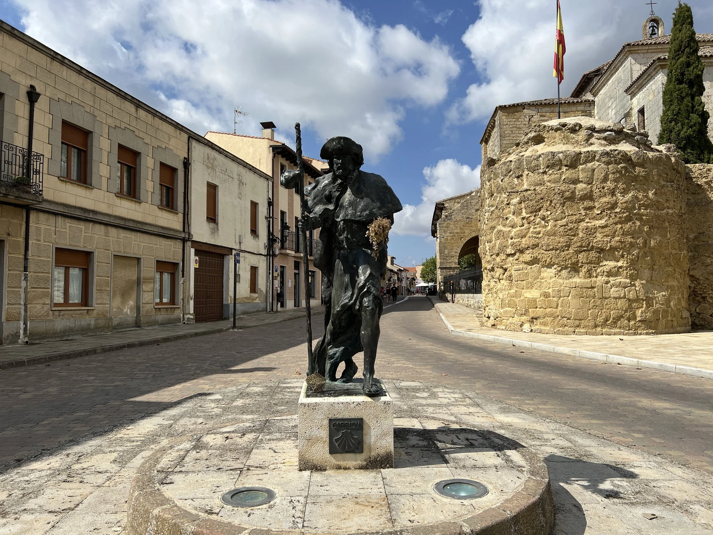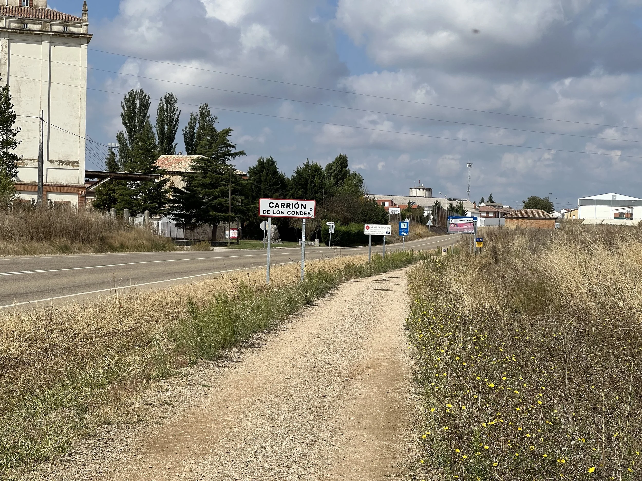 We took it slow today since one of our group members had foot pain. The route was flat but ran alongside the road, which wasn’t the most enjoyable walk. With little shade, the heat was tough for me, so reaching Carrión de los Condes felt like a huge relief.