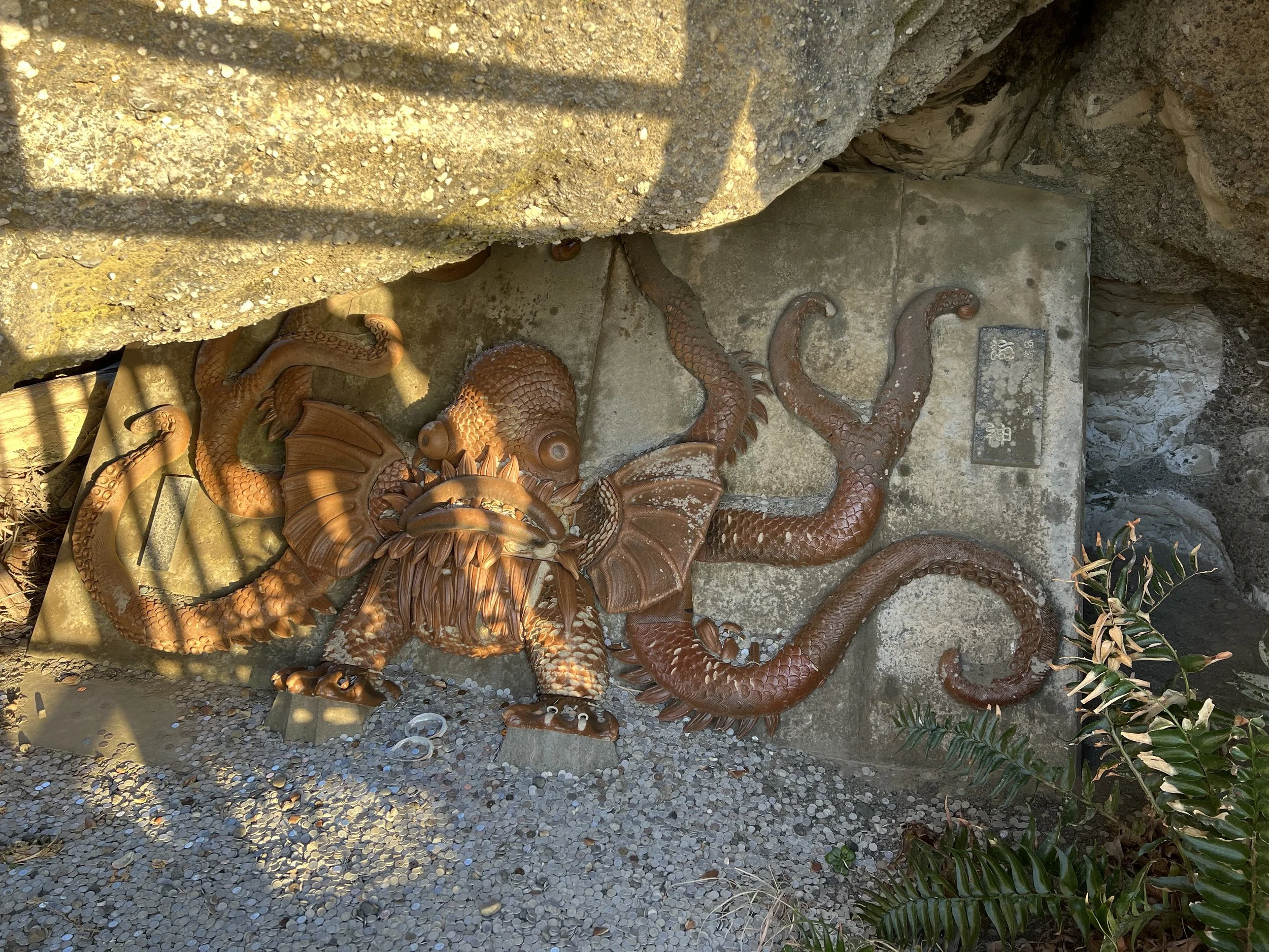 At the centre of the cape stands the historic lighthouse, the most recognizable landmark in the area. The lighthouse itself is open to visitors during the day, but since I had arrived near sunset it had already closed for the evening. Instead, I wandered around the grounds, which are surprisingly interesting in their own right. Scattered around the area were a few art installations, a small seaside shrine, and even a tiny cave tucked beneath a massive boulder near the lighthouse.