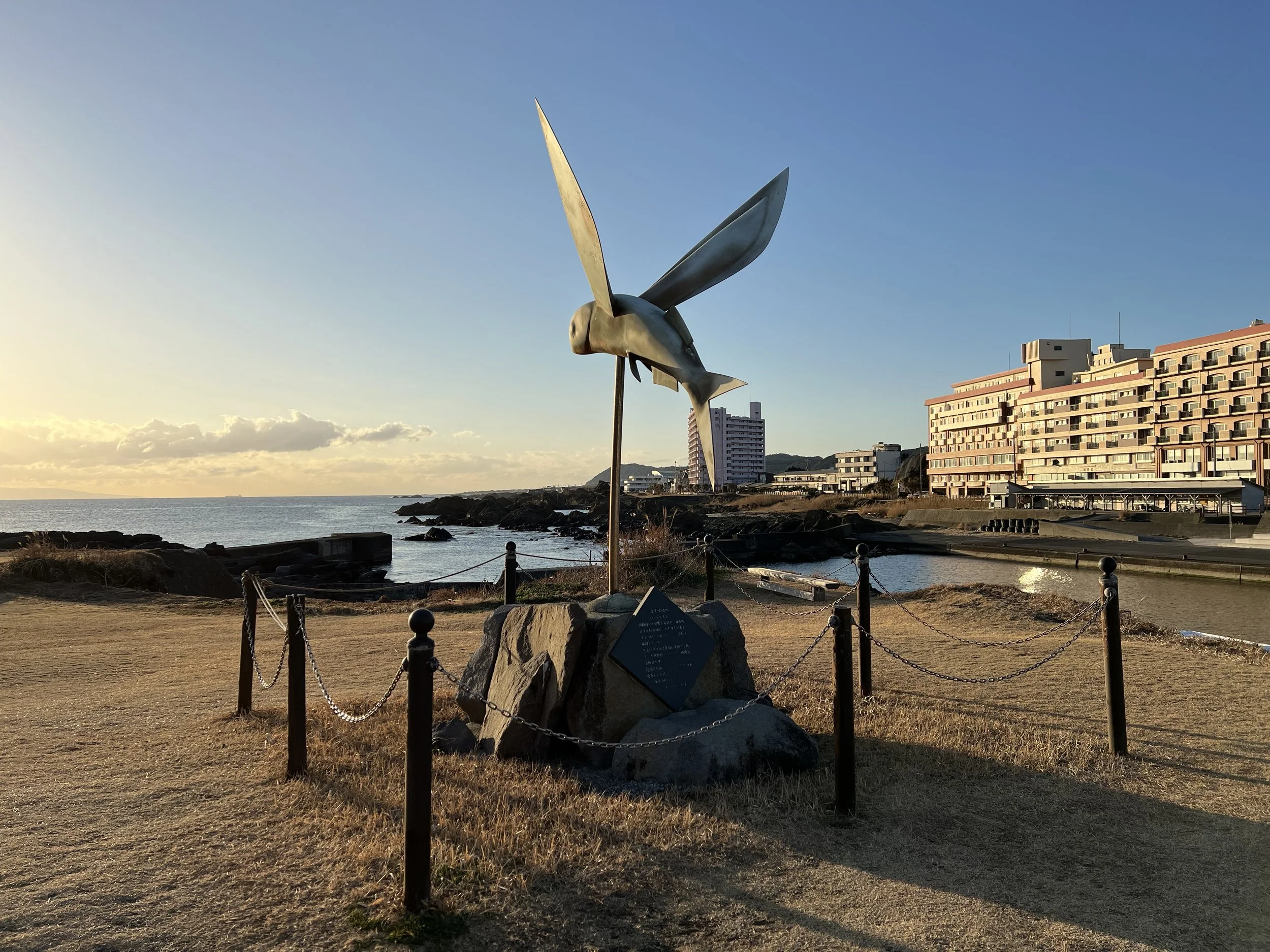 From that vantage point, it was easy to understand why this location is often listed as one of the best sunset viewing spots in Japan. The Pacific Ocean stretched endlessly in front of me while the sky glowed with deep shades of orange and gold. Waves crashed against the rocky shoreline below, adding a rhythmic soundtrack to the view. With the soft evening light and the vast ocean horizon, the setting felt surprisingly romantic.
