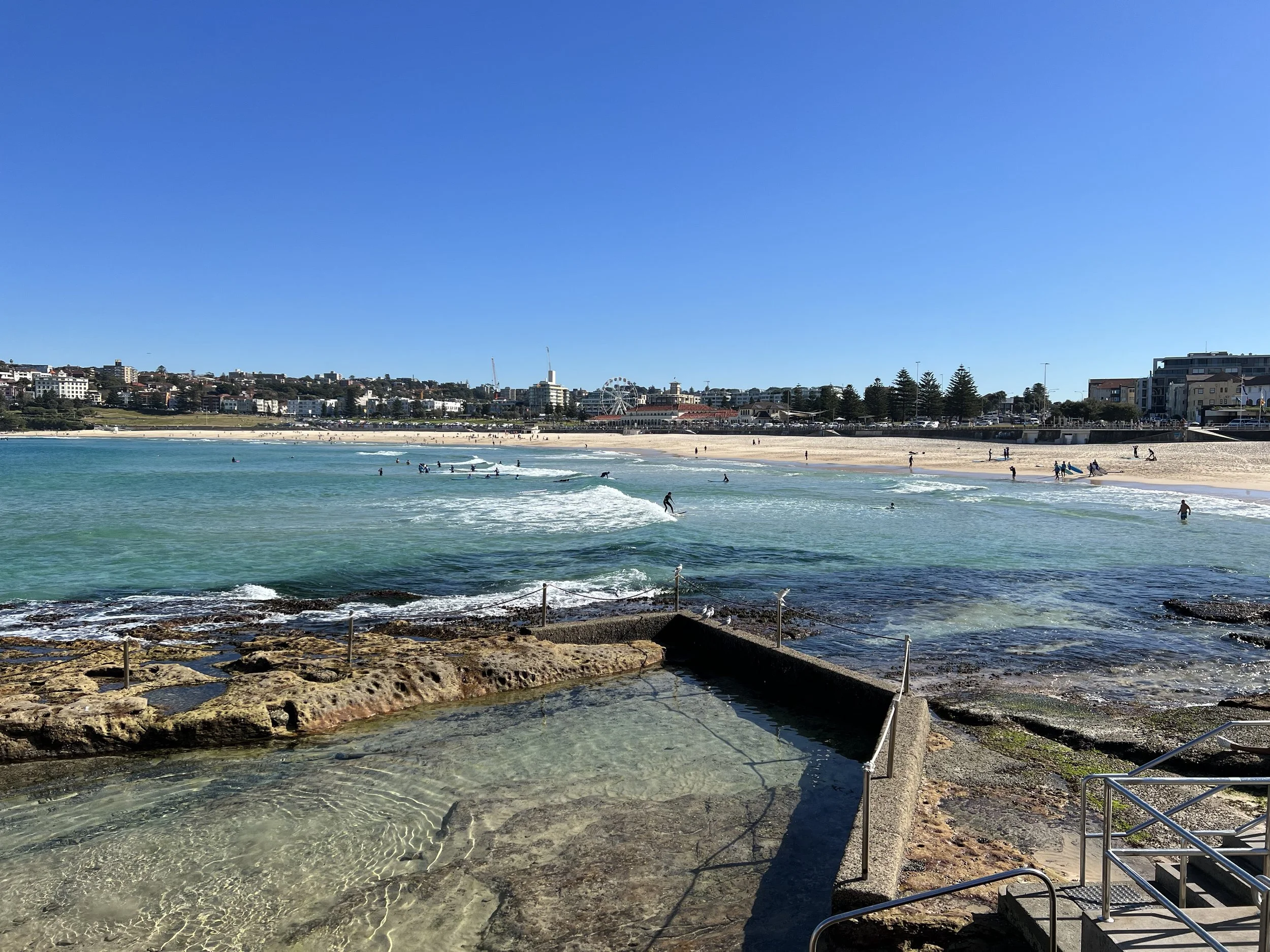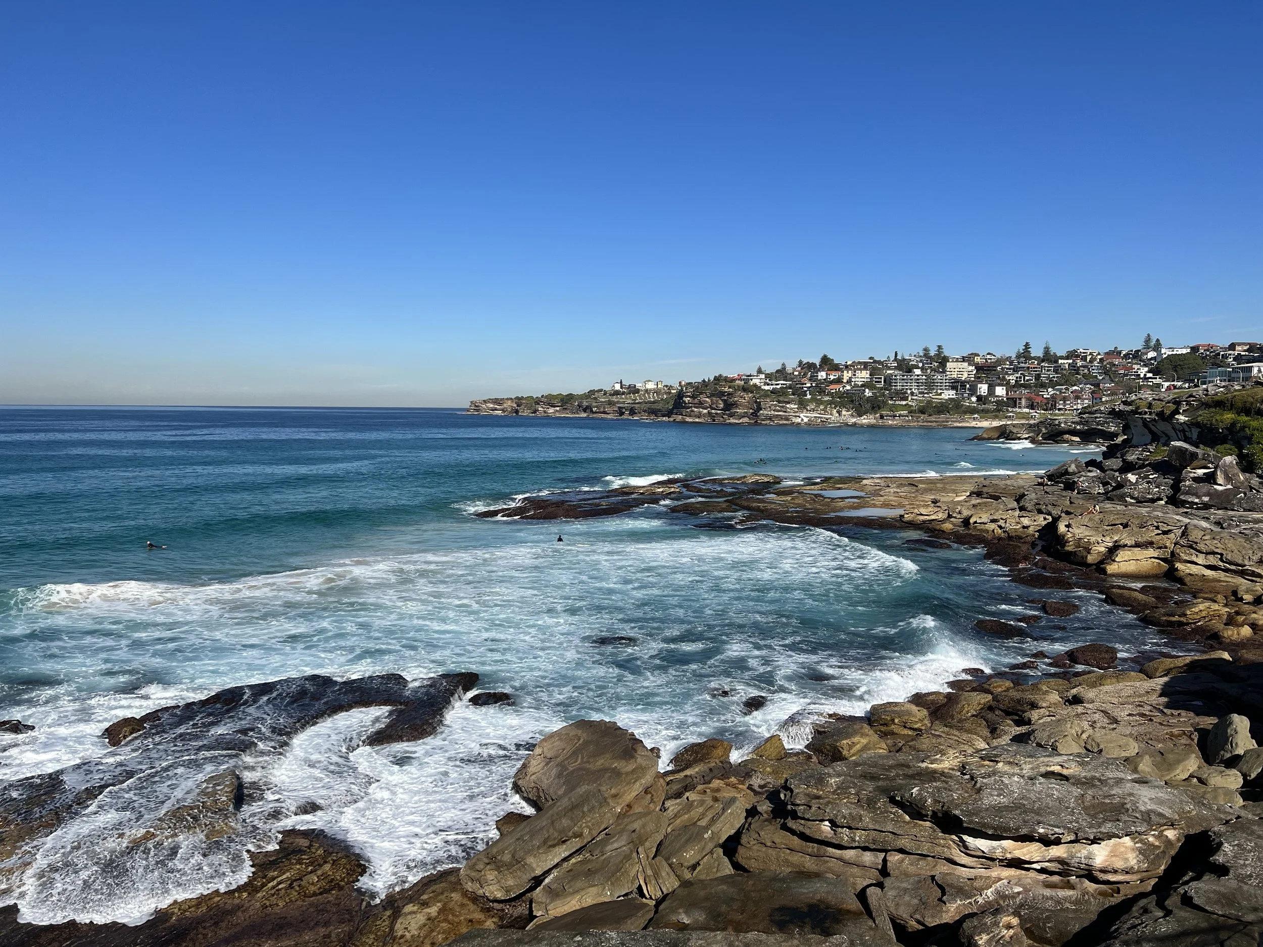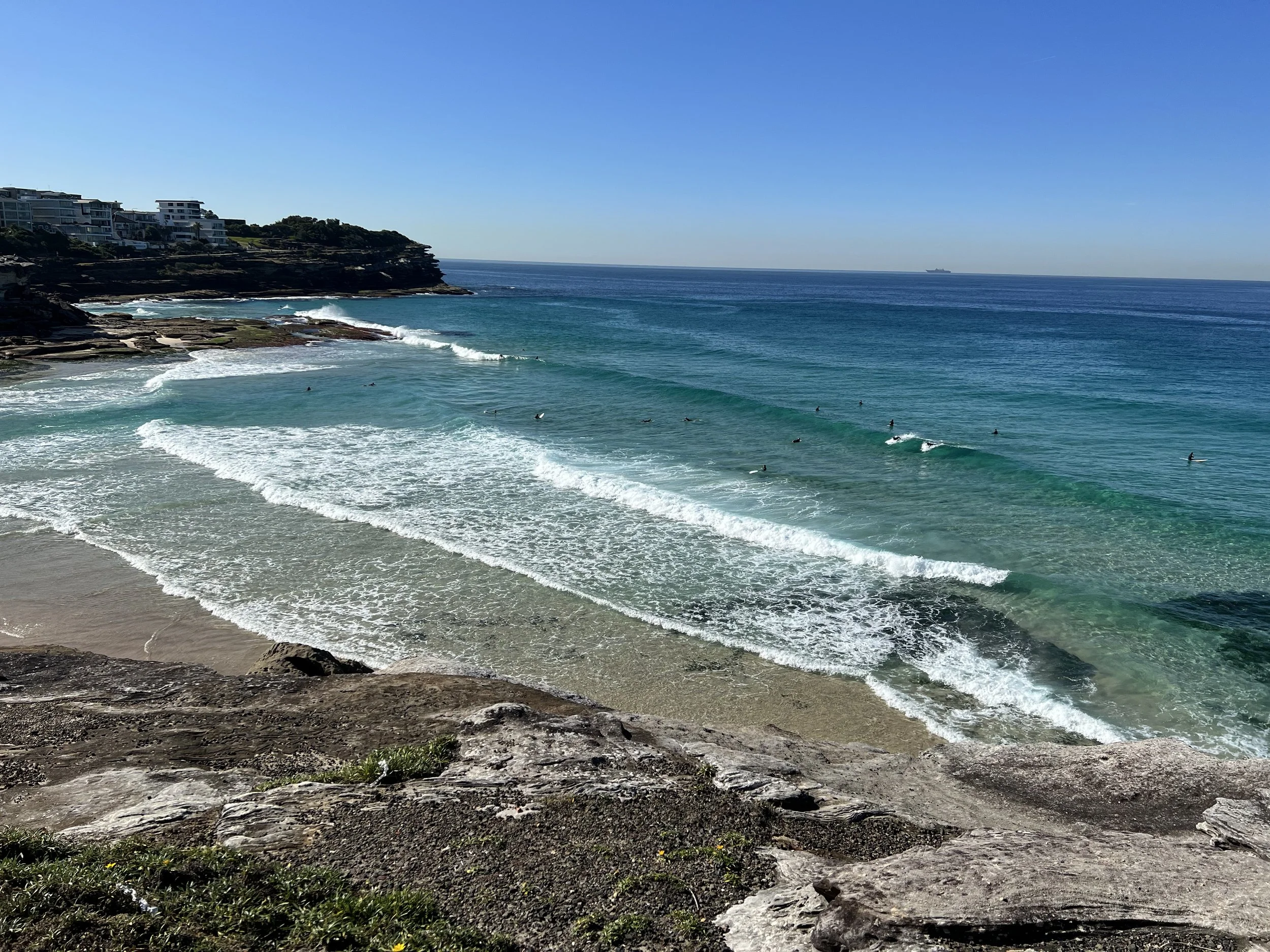 Despite Bondi’s reputation as a busy tourist hotspot, it wasn’t peak season when I visited, so I had space to enjoy the scenery without feeling rushed or in anyone’s way. I watched surf lessons taking place across the shoreline, people sunbathing, and fellow walkers like me strolling at a relaxed pace.