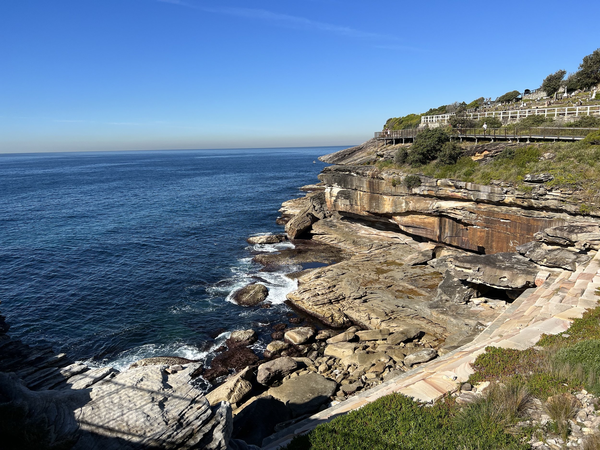 From Coogee Beach, I continued along the trail until I reached a small, quiet spot called Clovelly Beach. Surrounded by greenery, it felt like a hidden pocket of calm. I took a short break at a viewpoint called Cliff’s Edge—accurately named, as you’ll definitely want to watch your footing, especially on windy days. The rugged sandstone cliffs and crashing waves below made the view unforgettable.