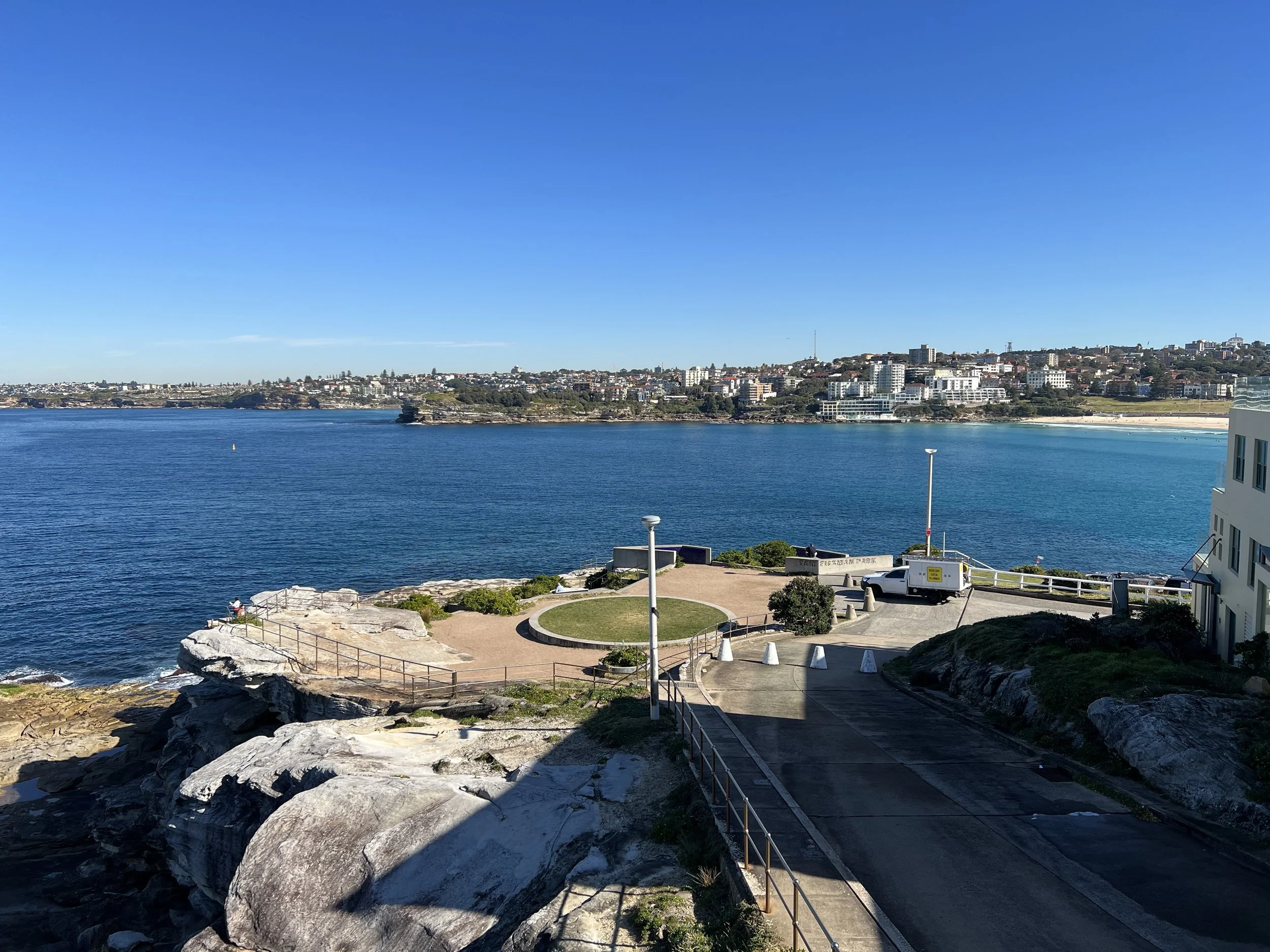The next stop was Tamarama Beach, a smaller but picturesque stretch of sand. I didn’t linger long and instead continued to Mackenzie’s Point Lookout. From here, you get your first distant view of Bondi Beach, along with sweeping cliffside scenery and a look at the nearby coastal neighborhood. I rested, drank some water, reapplied sunscreen, and luckily found a spot to refill my water bottle before continuing.