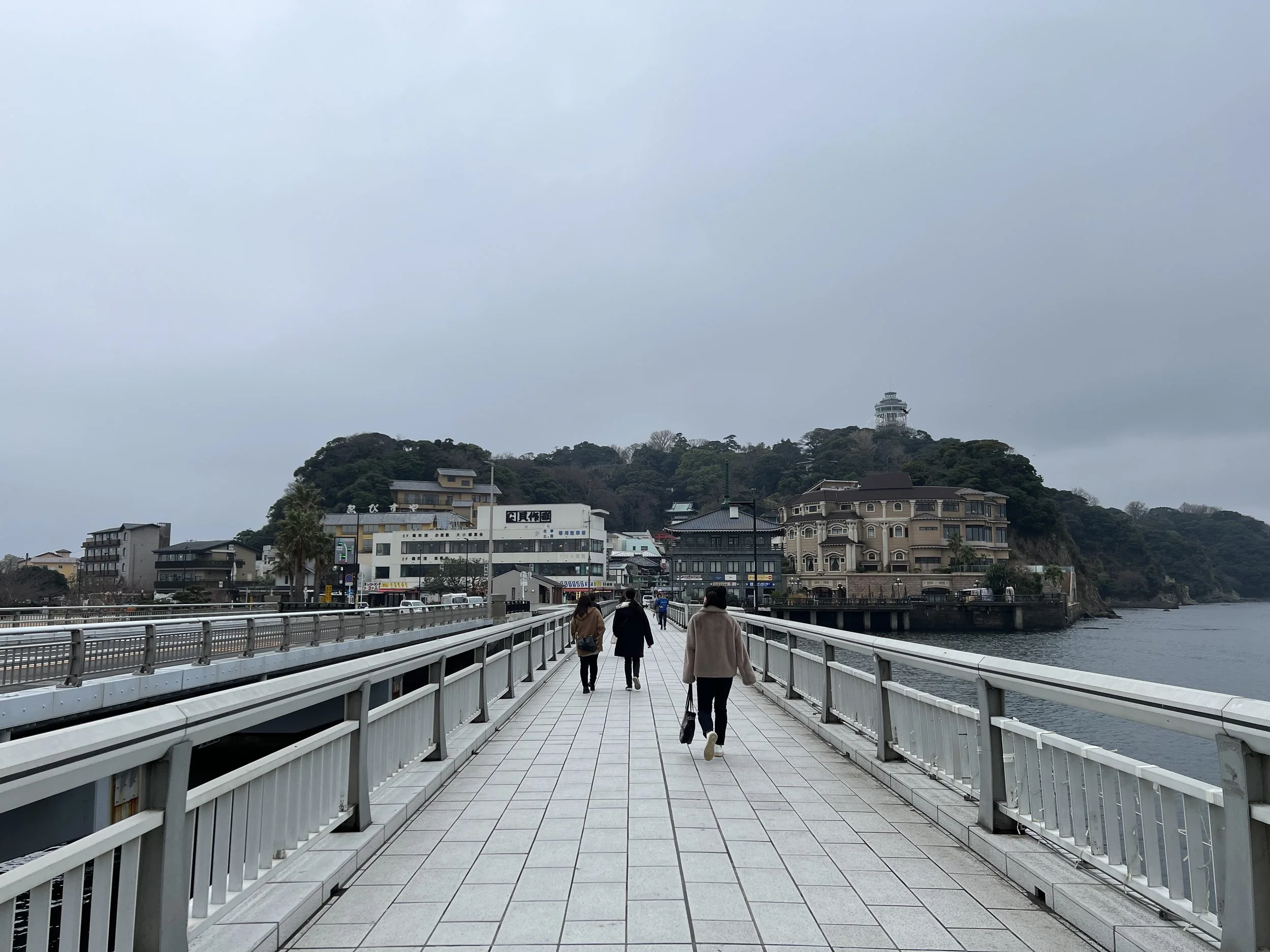 Enoshima is a small but lively island just off the coast near Kamakura, connected to the mainland by a bridge. Despite its size, it packs in a surprising number of attractions—from shrines and coastal viewpoints to sea caves. On clear days, you can even catch a view of Mount Fuji in the distance. That wasn’t the case for me, though—the skies were overcast, but at least it wasn’t raining.