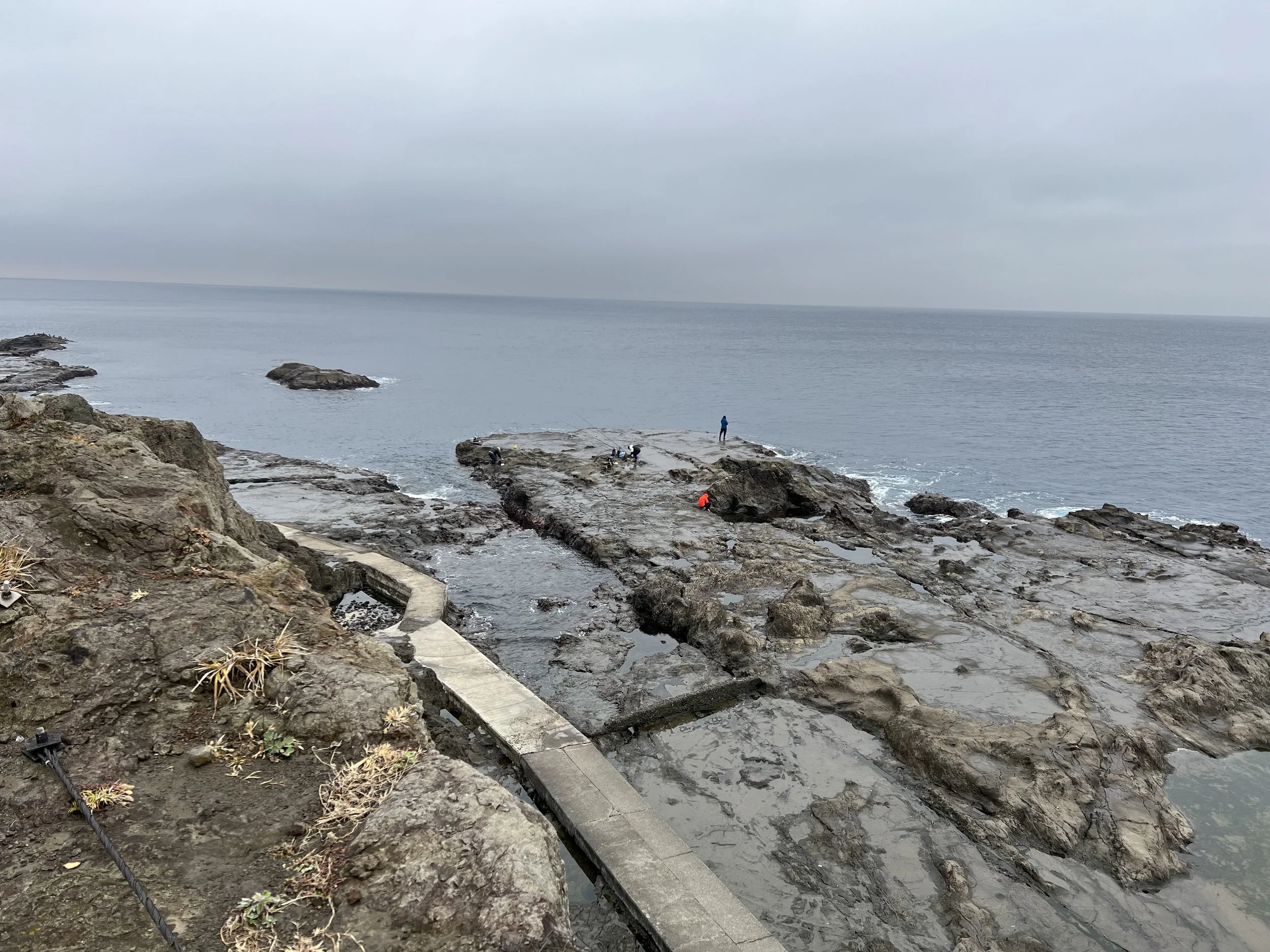 Exiting the caves brought me out to the edge of the island, where the coastline opens up. The sea was relatively calm, and I noticed several fishermen along the rocks. It felt like a quieter side of Enoshima compared to the busier shrine and shopping areas.