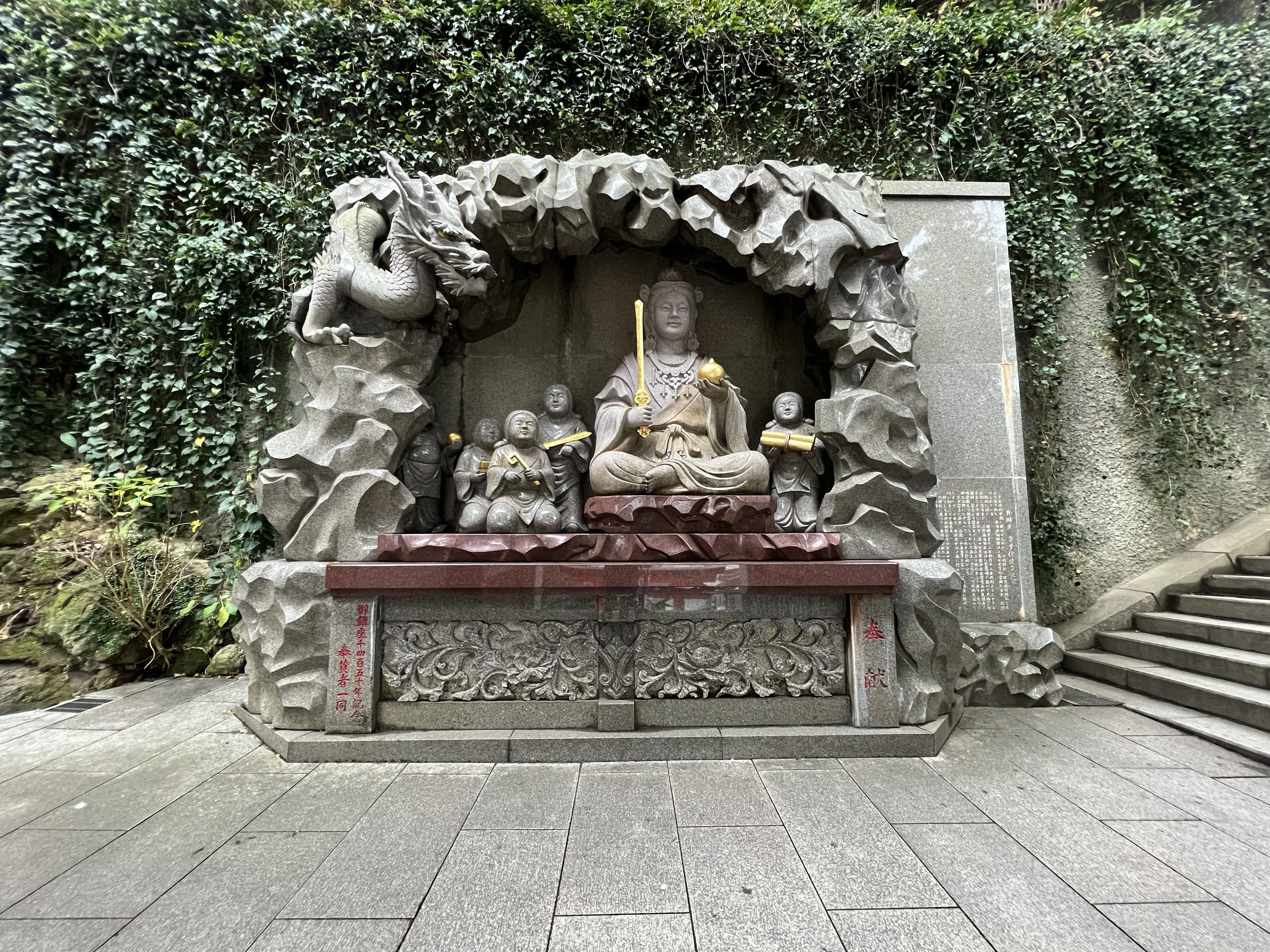 Enoshima Shrine dates back to 552, founded by imperial order during the reign of Emperor Kinmei to pray for the nation’s safety. The shrine is made up of three separate complexes spread across the island. The first and most visited is located near the entrance. Here, I found an octagonal hall that houses one of Japan’s three most revered statues of Benzaiten, the goddess of wealth, music, and knowledge, and the patron deity of Enoshima. I’d heard that some visitors even wash their money at the nearby pond in hopes of attracting prosperity.