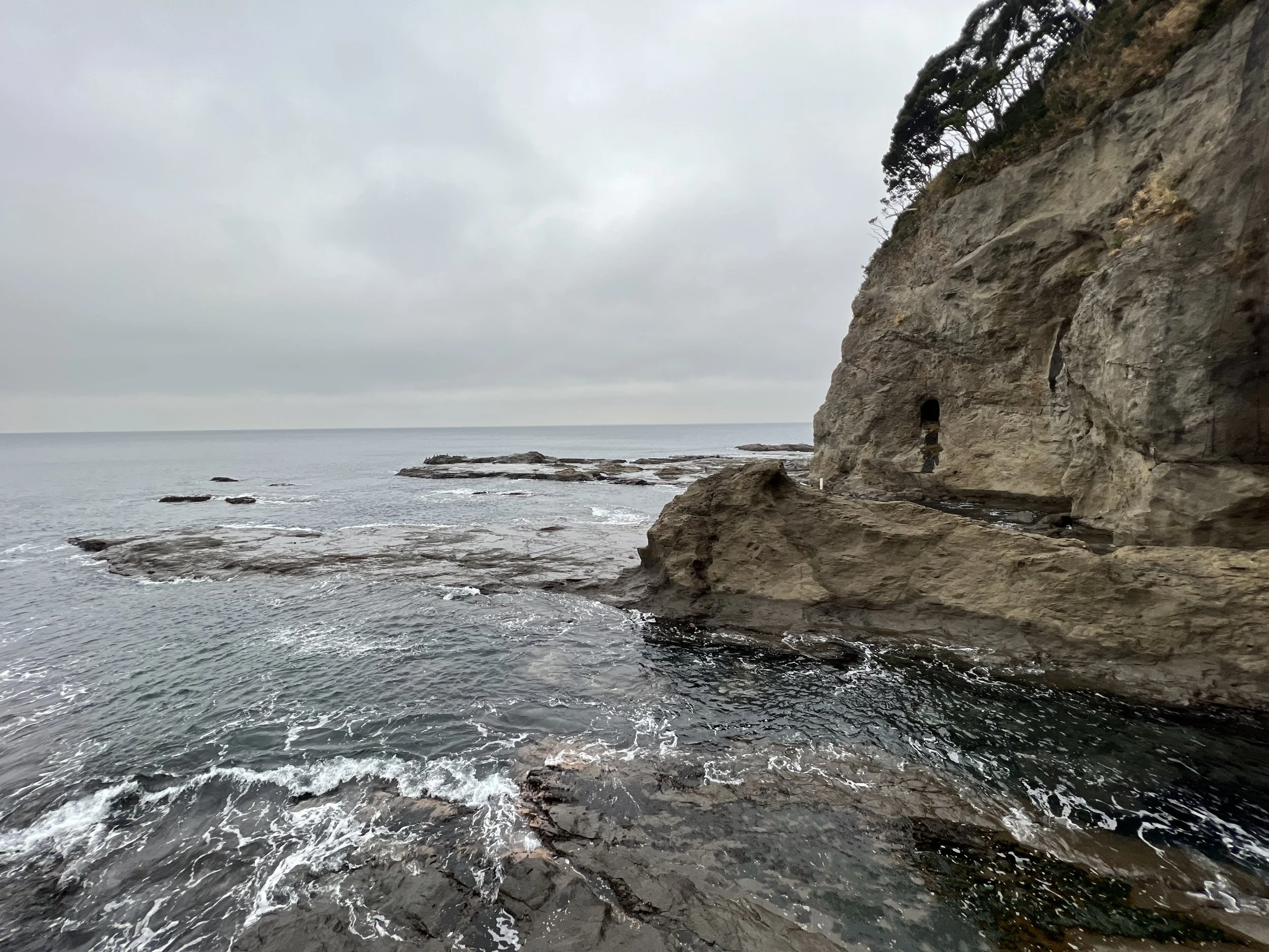 After visiting the shrines, I made my way toward the Enoshima Iwaya Caves. Formed by wave erosion, these caves have been used as sacred sites since ancient times and were once training grounds for monks, including Kobo Daishi.