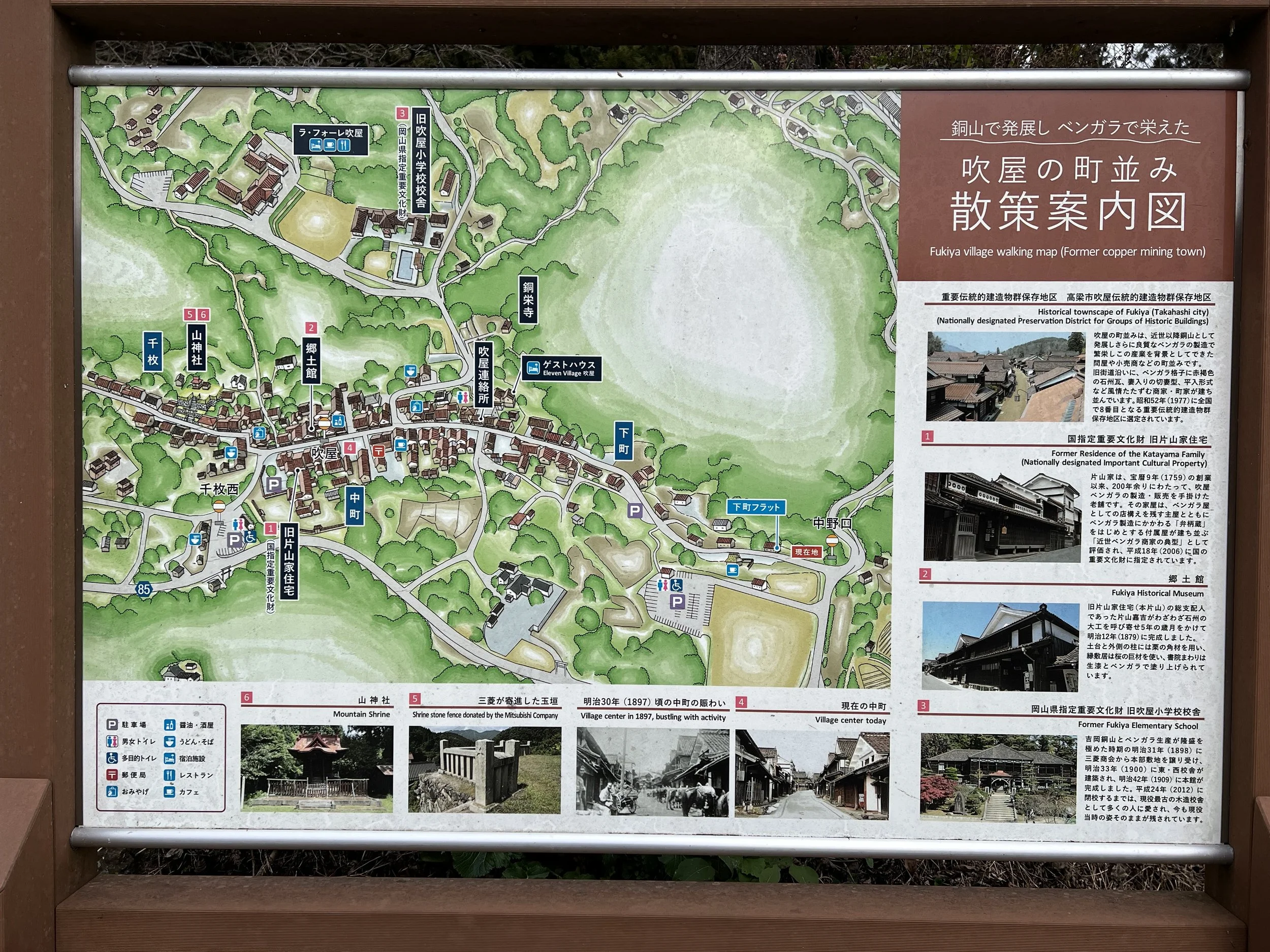 At its peak, Fukiya was an important economic hub despite its remote mountain location. As copper mining declined in the 1920s, the village gradually lost prominence, but many buildings remained intact. Today, Fukiya is designated as an Important Preservation District for Groups of Traditional Buildings, recognized for its unique colour scheme and historical value.