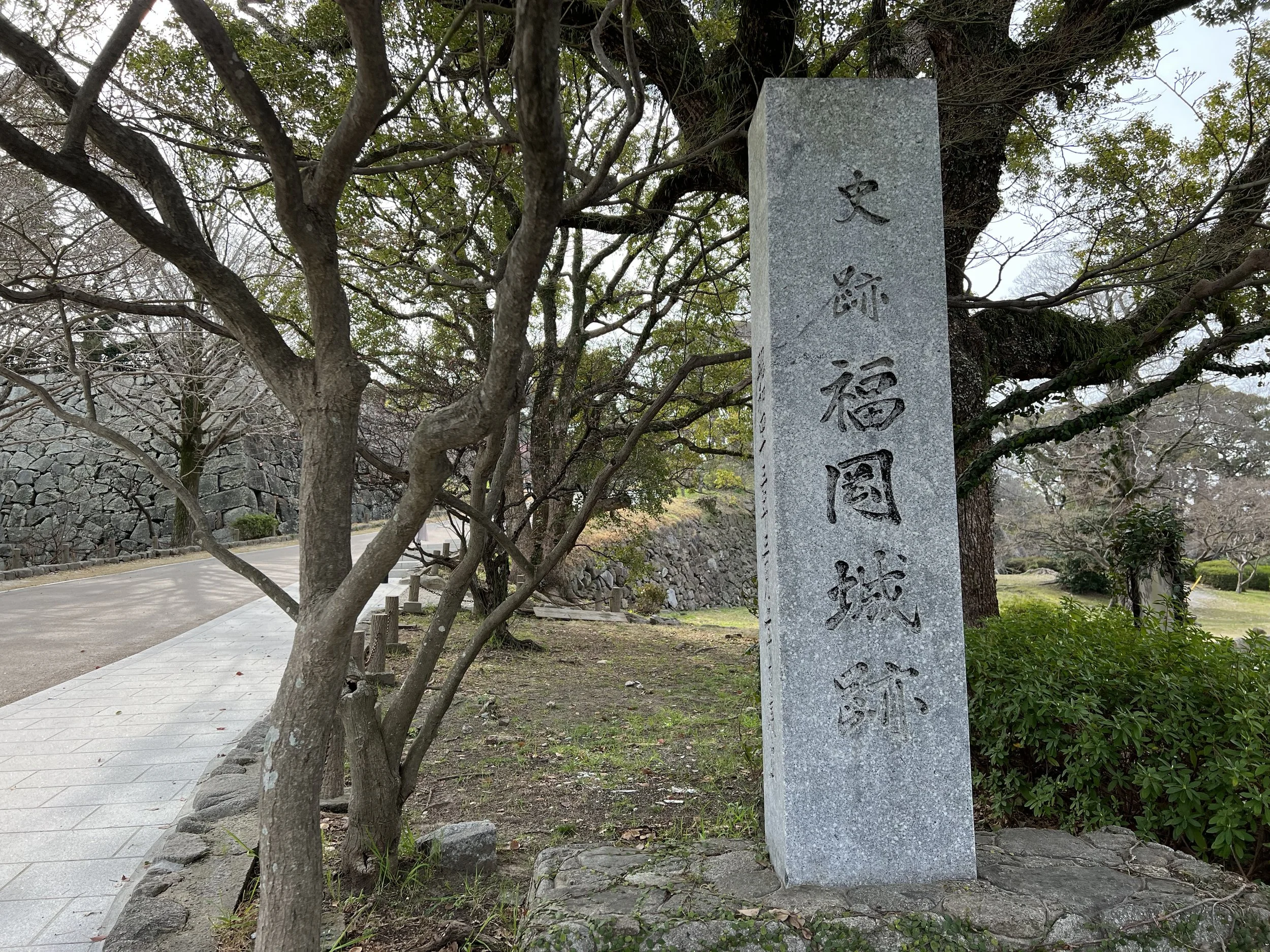 The castle was originally built in the early 17th century by Kuroda Nagamasa. He was appointed lord of the Chikuzen feudal domain—covering much of present-day Fukuoka Prefecture—as a reward for his support of Tokugawa Ieyasu during the Battle of Sekigahara. While very little of the original structure remains, the scale of the grounds gives a sense of how imposing the castle must have been.