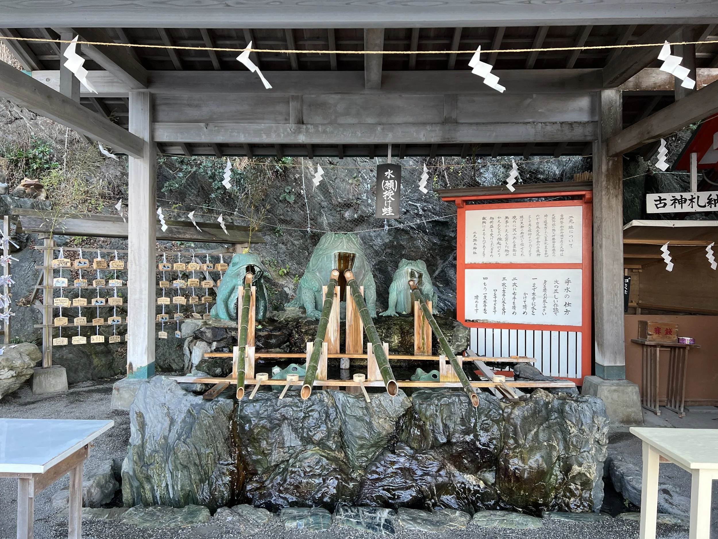 That’s when I started noticing the frogs. Stone frogs were everywhere. At the hand washing area, lined up near the water, placed around the shrine grounds, tucked into corners—you start to realize just how many there are. These frog statues symbolize safe return, tied to the Japanese word “kaeru,” which means both “frog” and “to return.” Historically, this shrine was also a purification site where visitors would cleanse themselves before continuing on to Ise Grand Shrine.