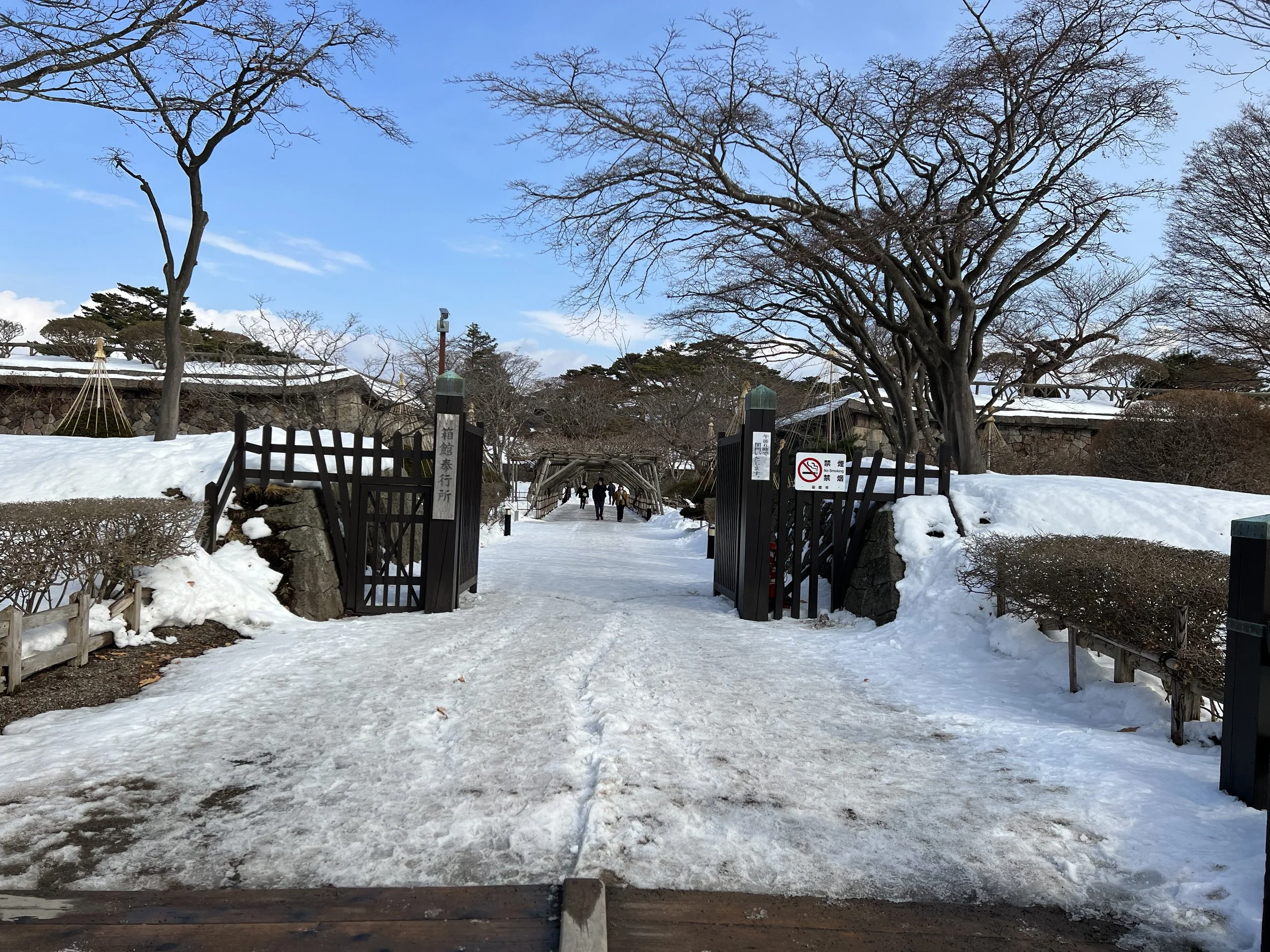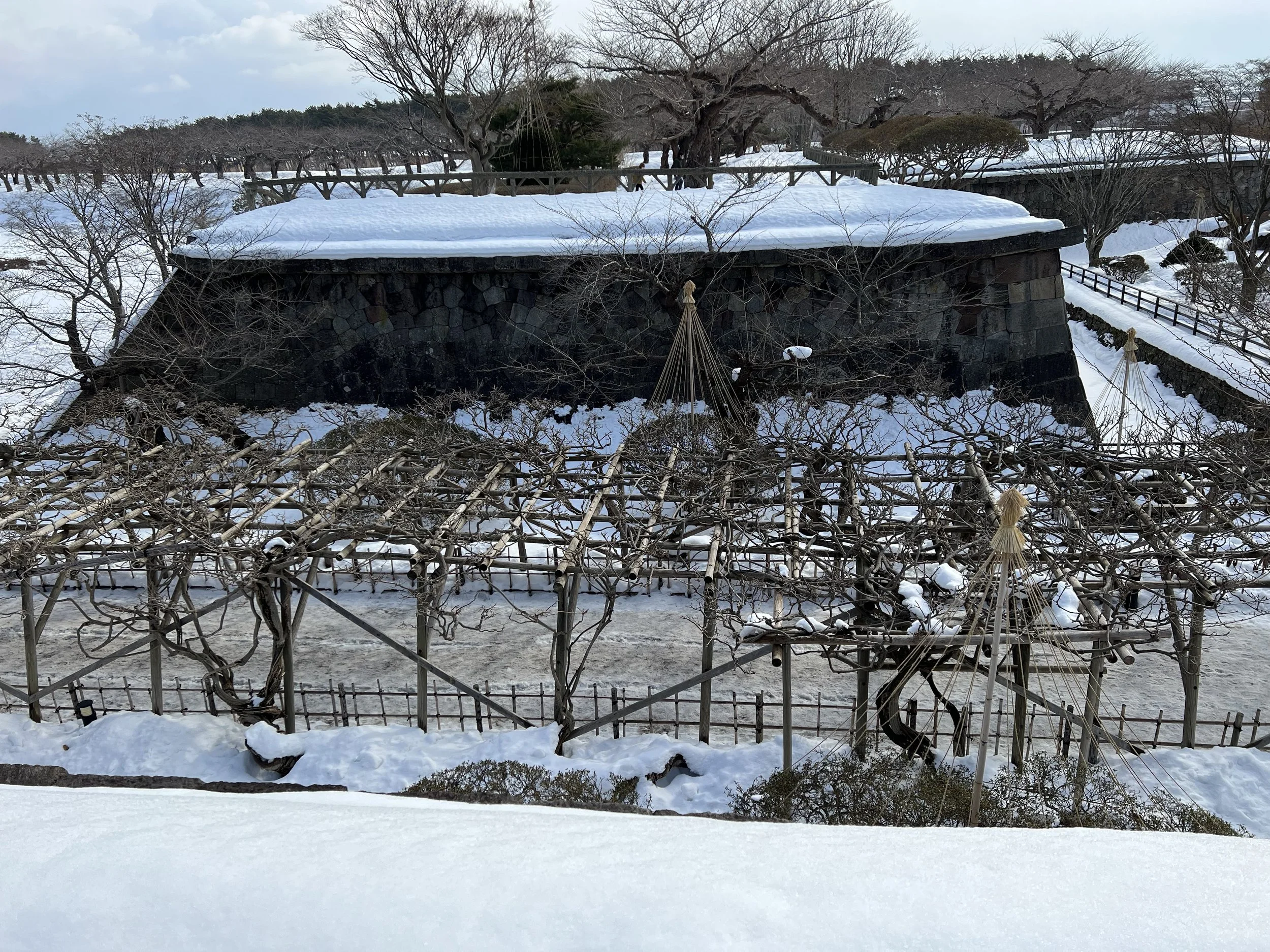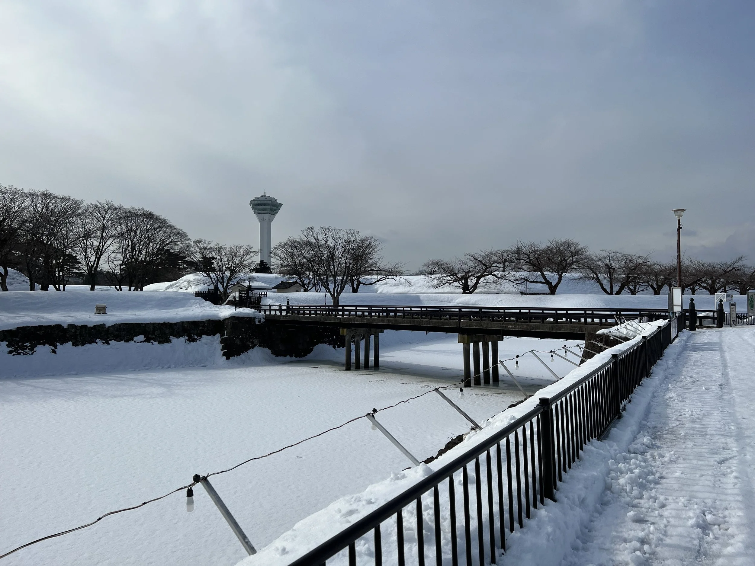 I walked the full loop around the fort, taking my time despite much of the ground being covered in snow. Even in winter, the combination of stone walls, frozen water, and the stark geometry of the fort was striking. Goryokaku feels unlike anywhere else in Japan — a fascinating blend of Japanese history and Western military influence, set against the unique landscape of Hokkaido.
