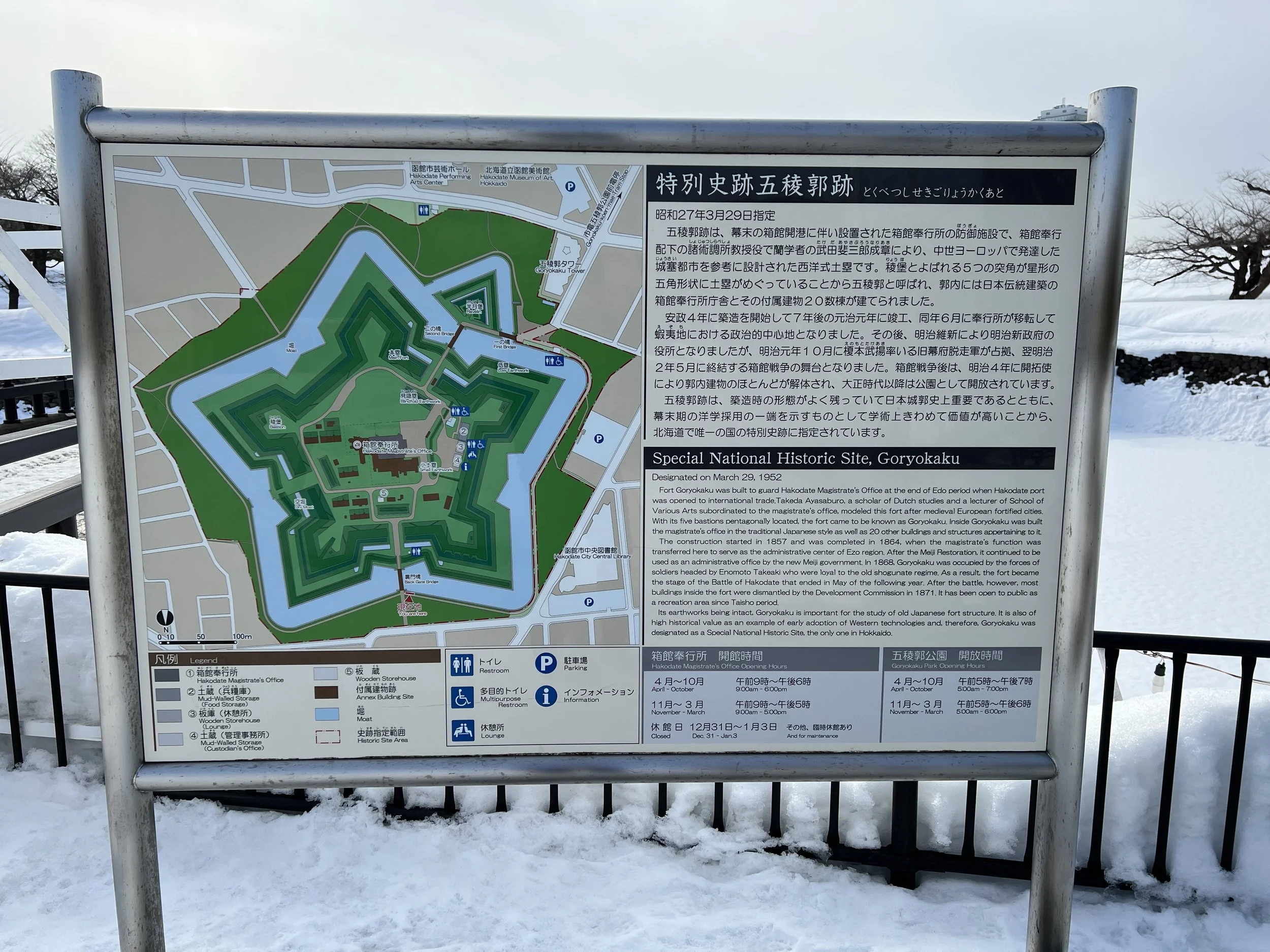 Unlike the traditional Japanese castles I’m used to visiting, Goryokaku Fort immediately stood out for its distinctive star-shaped design and Western-style layout. Built during the late Edo period, this fort was constructed to defend Hakodate against the growing threat posed by Western imperial powers. Only a few years after its completion, Goryokaku became the stage for a pivotal chapter in Japanese history — a civil war between the remaining forces of the Tokugawa shogunate and the newly established Meiji government.