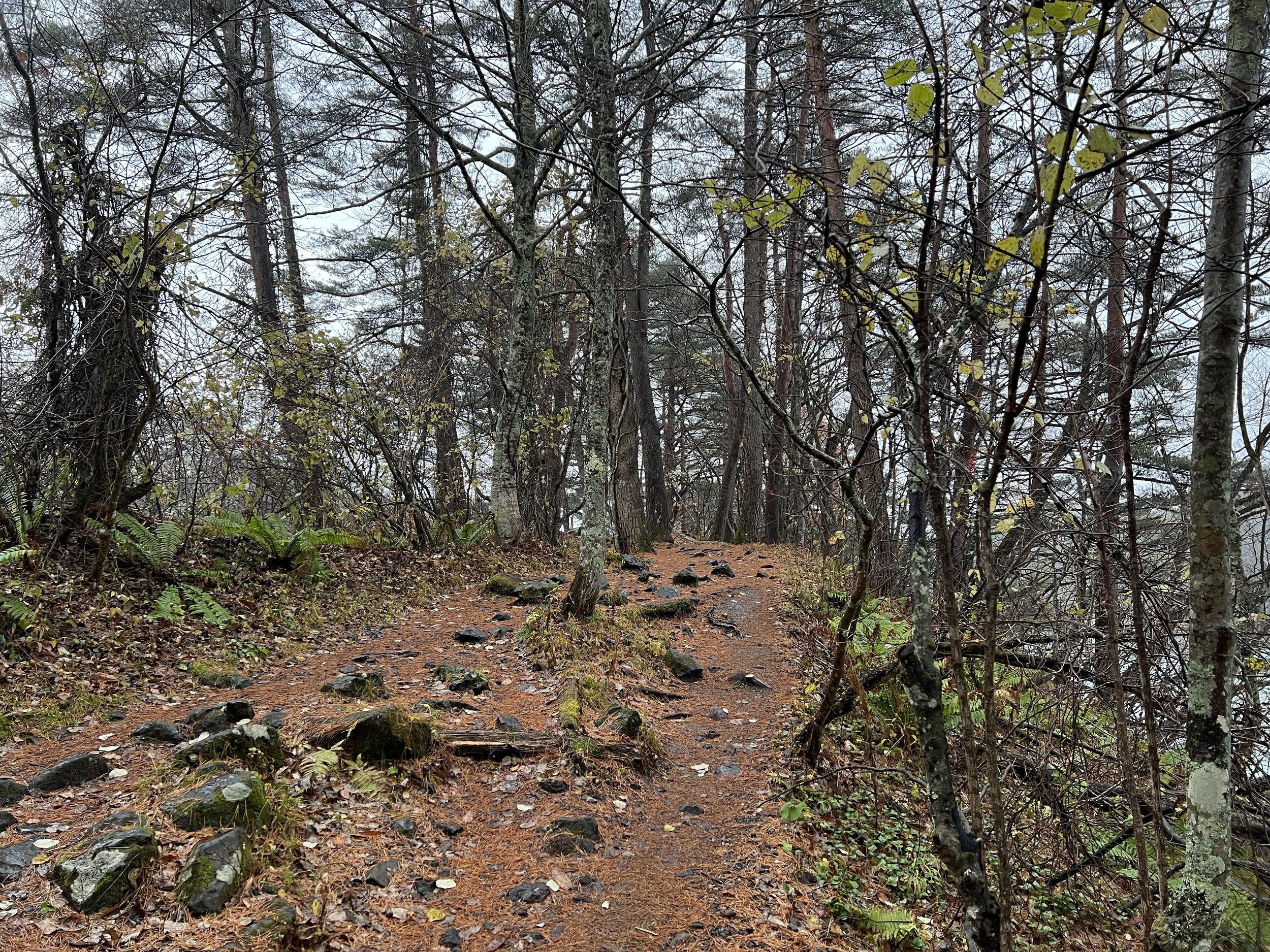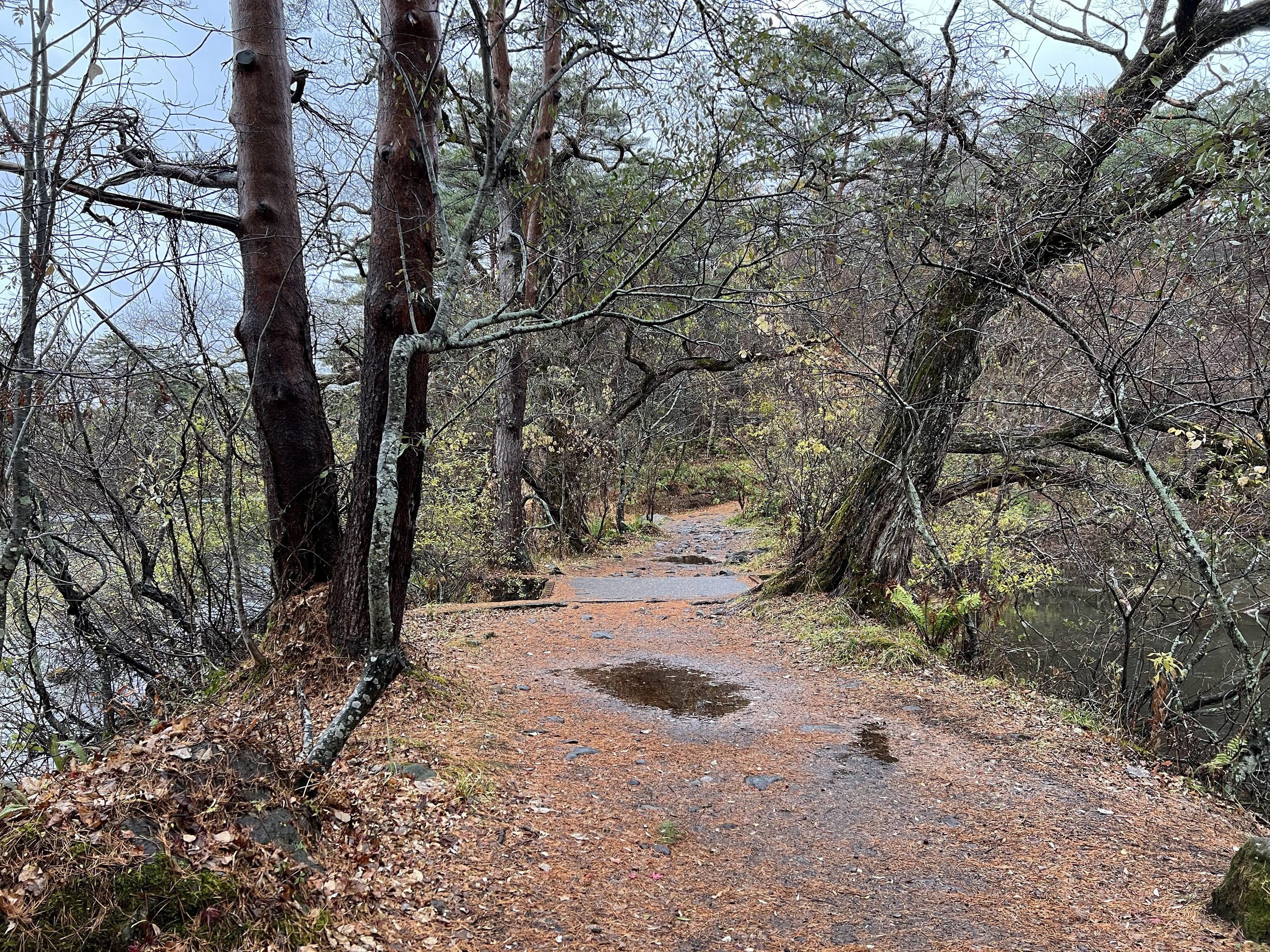 On the day I visited, it was pouring rain with strong winds, and I seriously debated whether to go out at all. A quick look at the forecast for the remainder of my stay suggested the weather wouldn’t improve, so I geared up as best I could and headed out. Reaching the trailhead required a train followed by a bus, and at the small souvenir shop near the entrance, I was advised to remain alert for bears, as sightings had been reported as recently as the day before. I grabbed a quick snack, adjusted my rain gear, and set off.