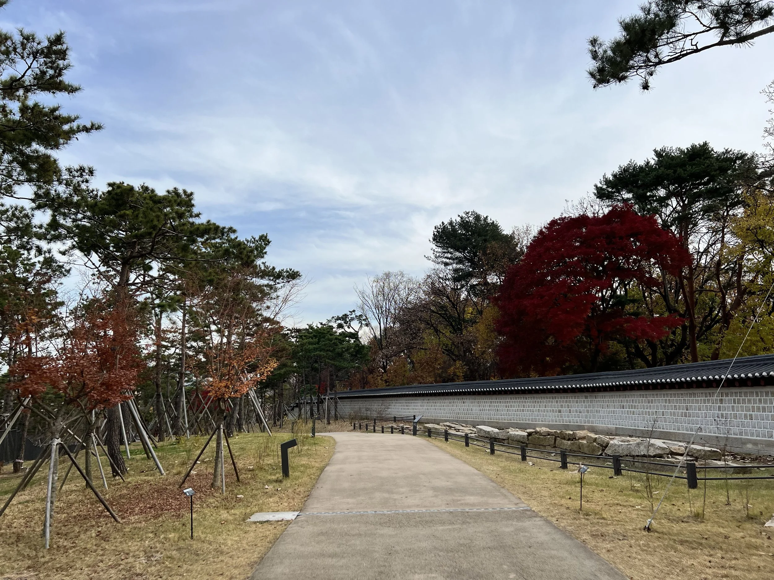 After my museum visit, I made my way toward Changgyeonggung Palace, passing through quiet side streets before following a trail that ran along its outer walls. Built in the mid-15th century by King Sejong for his father, the palace has deep historical roots. Unfortunately, when I reached the main gate, it was closed for maintenance. Even so, I enjoyed walking the perimeter path, catching glimpses of its ornate rooftops through the trees.