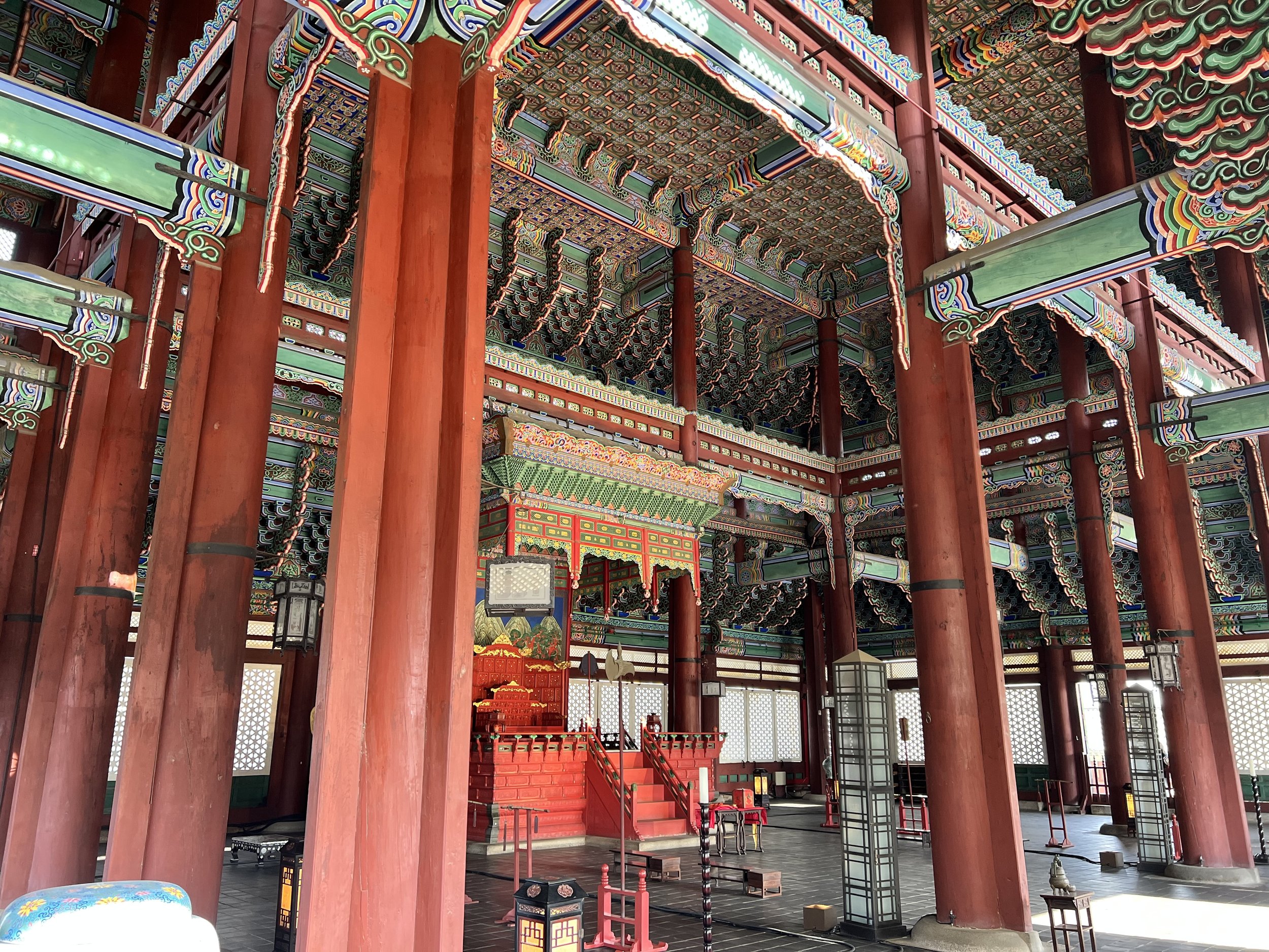 When I arrived at Gyeongbokgung Palace, I was immediately struck by the sight of so many visitors dressed in traditional hanbok. I soon learned that those wearing hanbok receive free admission, which explained the colourful flow of people entering the gates. I bought my ticket and stepped through the massive wooden doors into a world that felt centuries removed from the bustling city outside.