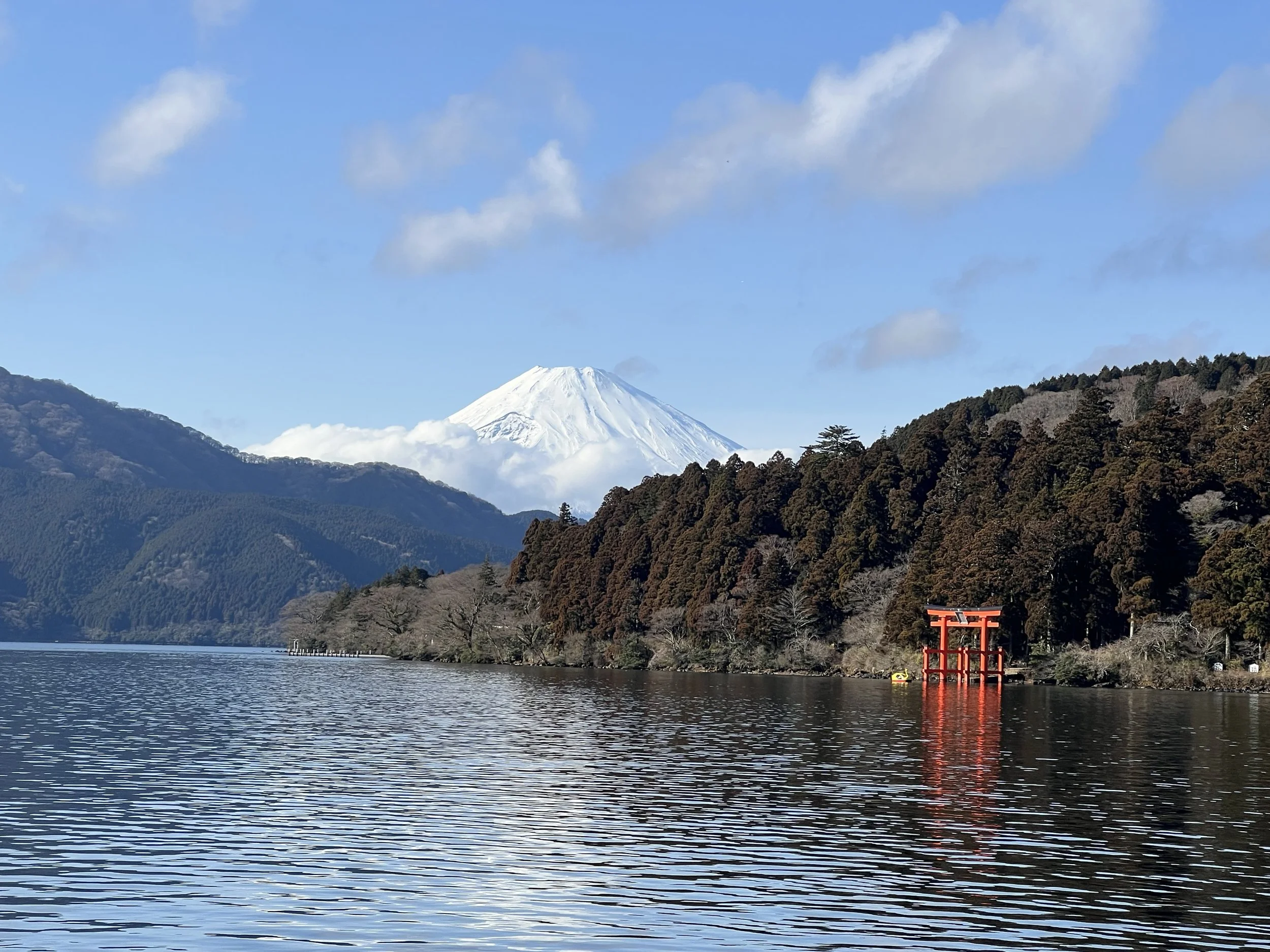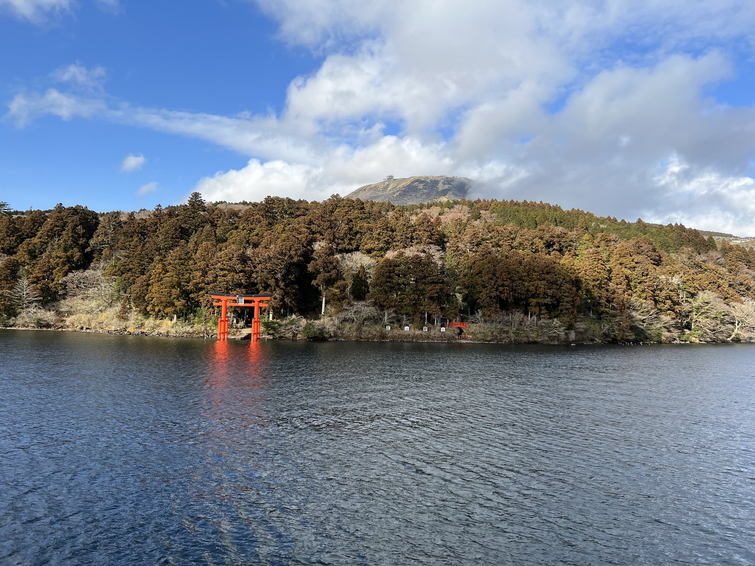 Instead, I walked back toward Motohakone Port, where the view opened up in a different way. From there, I could see the torii gate standing in the lake, framed by the surrounding landscape and on a clear day, even Mount Fuji appears in the distance. It wasn’t the exact shot I wanted in the first place, but it ended up being one of my favourite. If anything, it gave me a reason to come back.