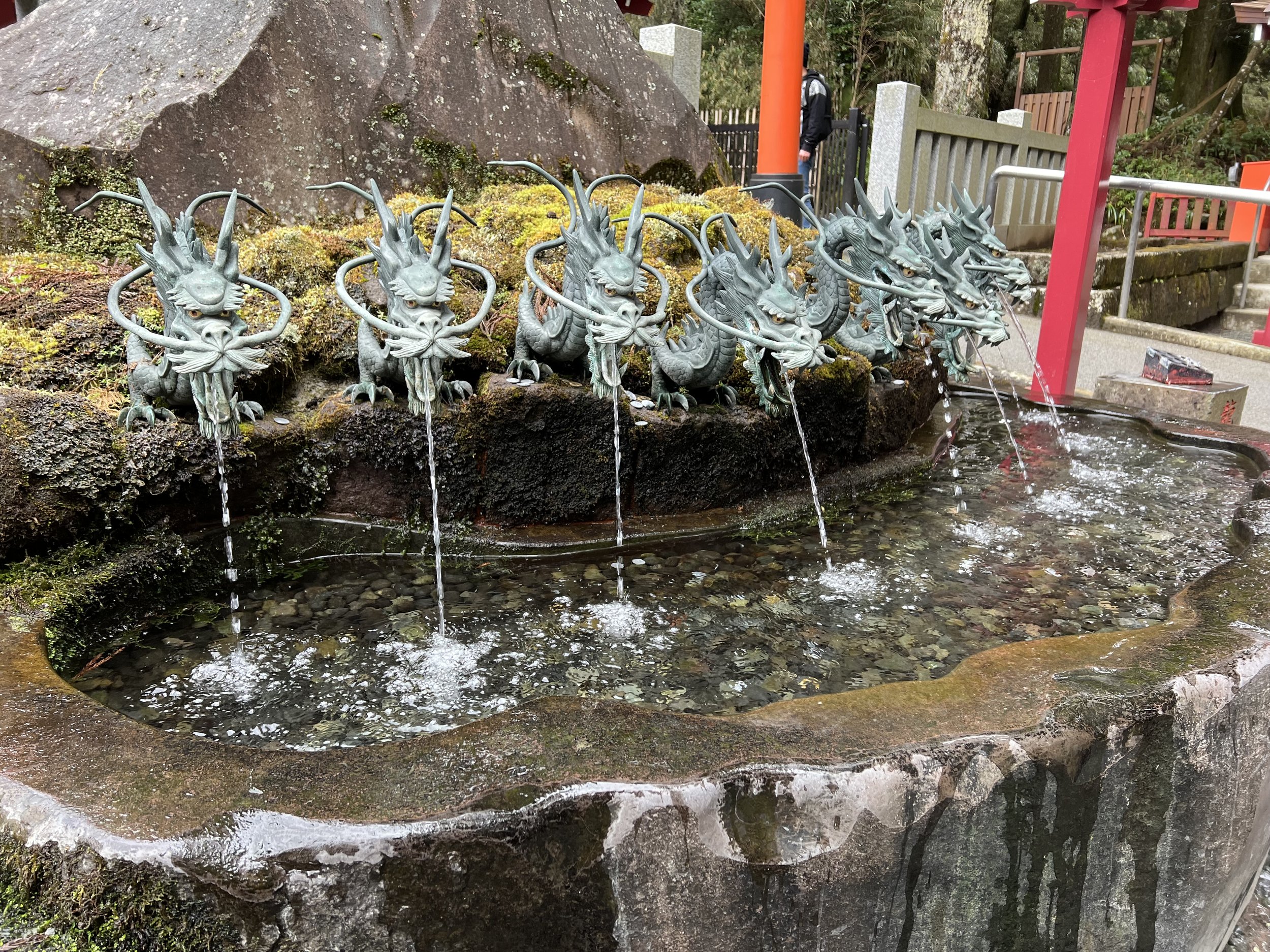 One story I came across during the visit stayed with me the entire time. The monk Mangan, who established the shrine, is said to have subdued a nine-headed dragon that once lived in Lake Ashi. According to the legend, he chained it to the lakebed, transforming it from a destructive force into a protective guardian of the area. It’s a vivid image, and it made more sense when I reached the purification area near the shrine—the basin was decorated with detailed dragon carvings. It’s the kind of detail that’s easy to overlook, but knowing the story behind it changes how you see it.