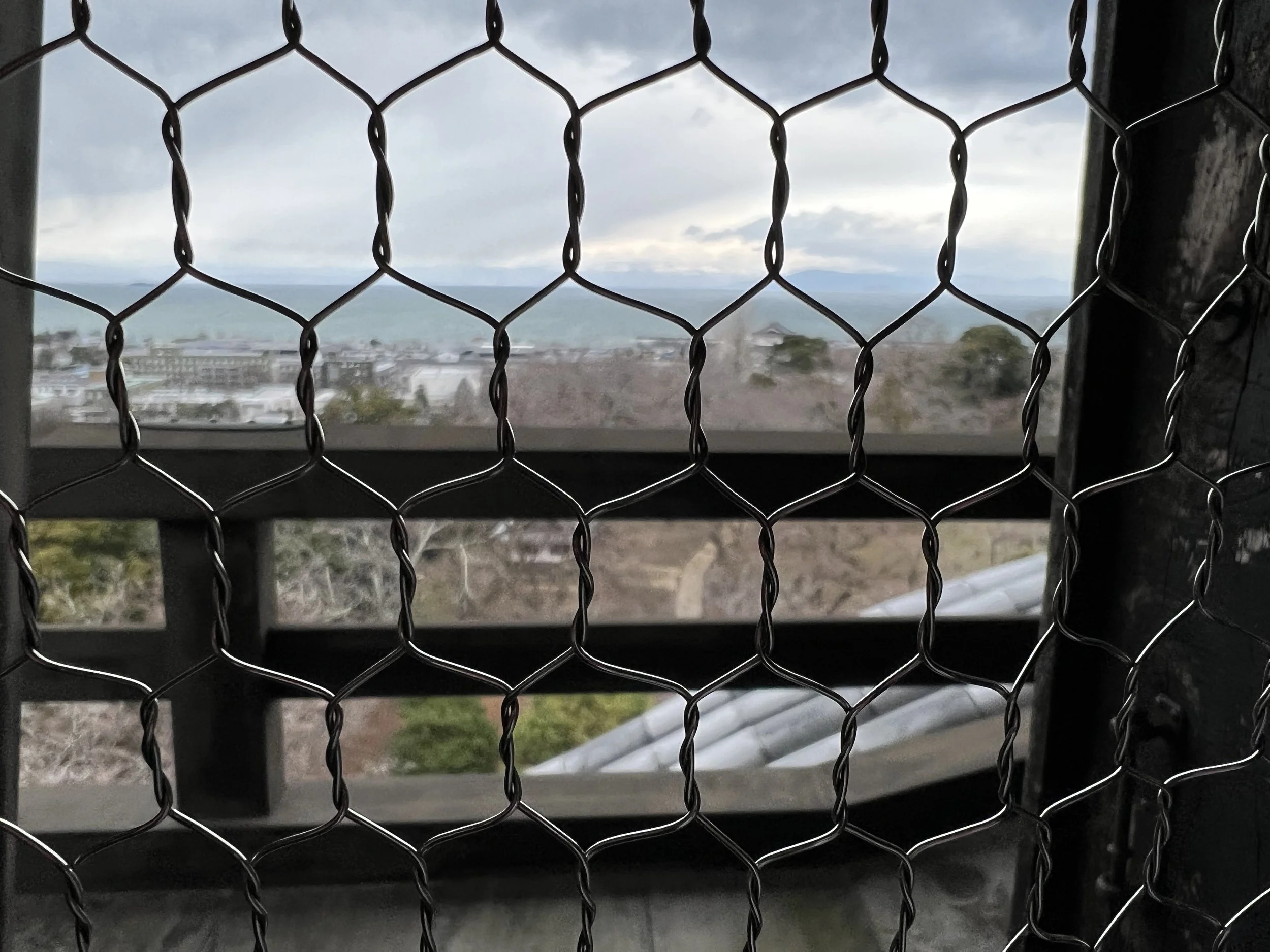 After purchasing my ticket and removing my shoes, I began making my way through the interior. The staircases between floors were noticeably steep, a reminder that castles were never designed with modern comfort in mind. I had to watch my head carefully as I climbed. Moving through the wooden interiors, observing the beams, windows, and defensive design, I eventually reached the top floor. From there, I was rewarded with sweeping views toward Lake Biwa, its vastness stretching out beyond the town — a view that made the strategic importance of this location immediately clear.