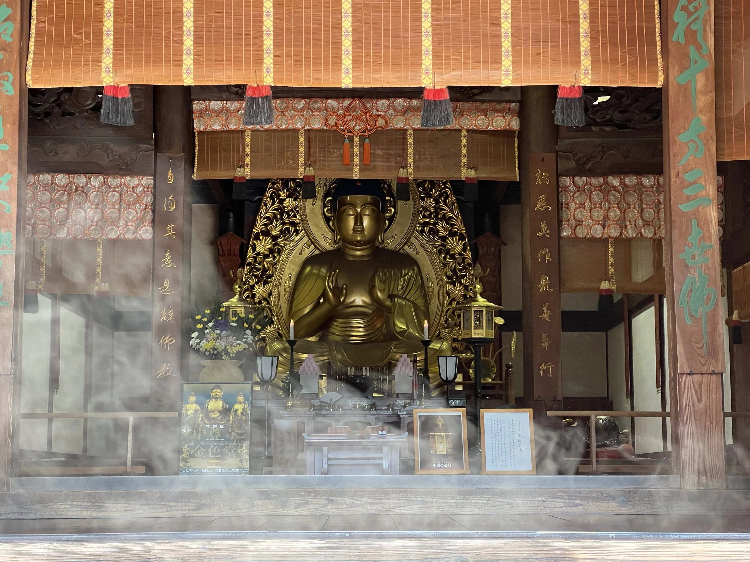 Photos are not allowed inside Konjikido Hall, but standing before its glittering interior was a breathtaking experience—a true “wow” moment. After exploring the main hall, I wandered through the temple grounds, visiting other smaller temples and buildings scattered around the area. I took plenty of photos before continuing my walk toward Takkoku-no-Iwaya Bishamondou.
