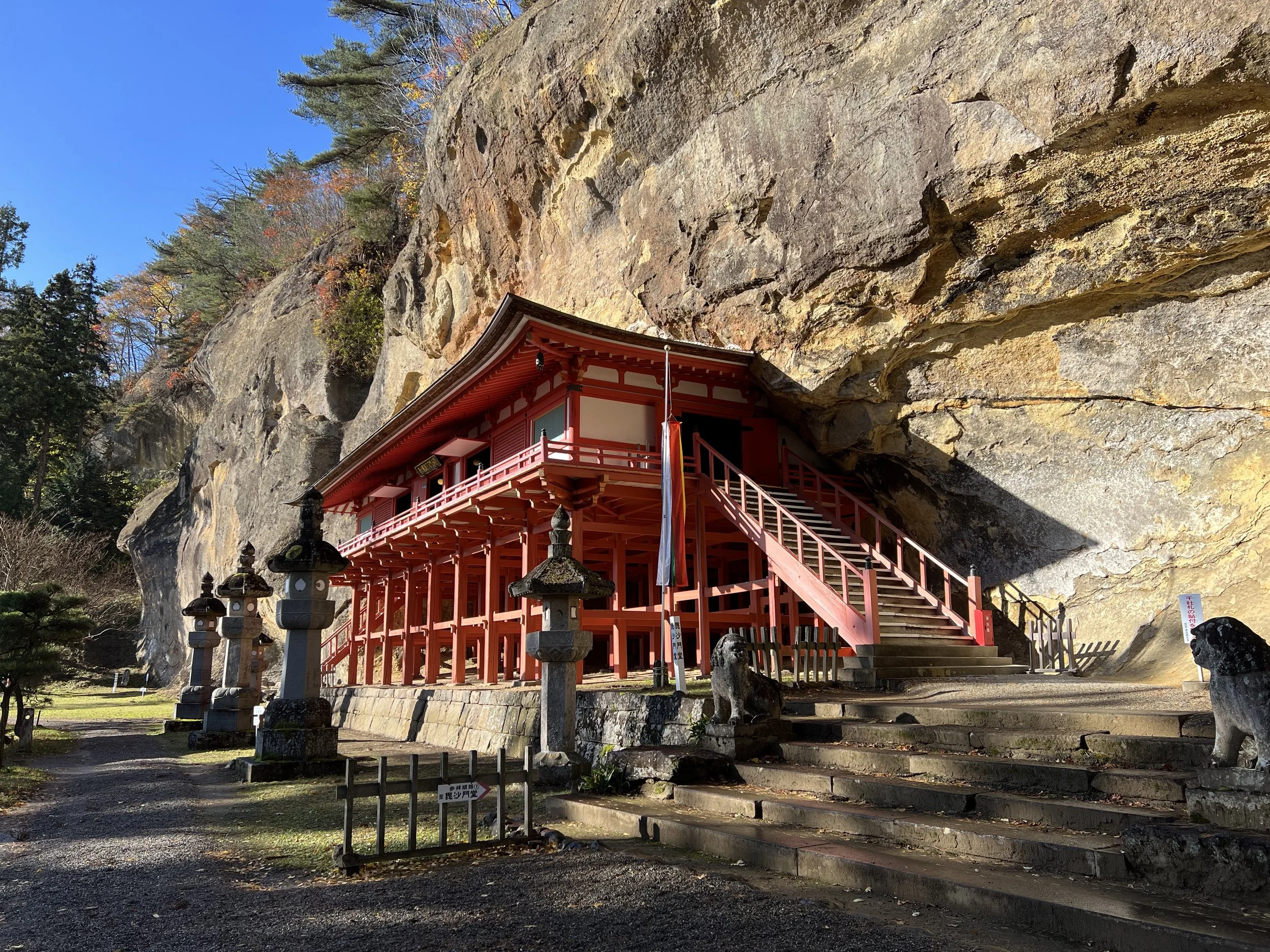 Takkoku-no-Iwaya Bishamondou is about 7 kilometers from Chusonji Temple. Since there were no bus options and I didn’t want to take a taxi, I decided to walk. The route was mostly flat and scenic, with stretches of countryside views that made the journey enjoyable.