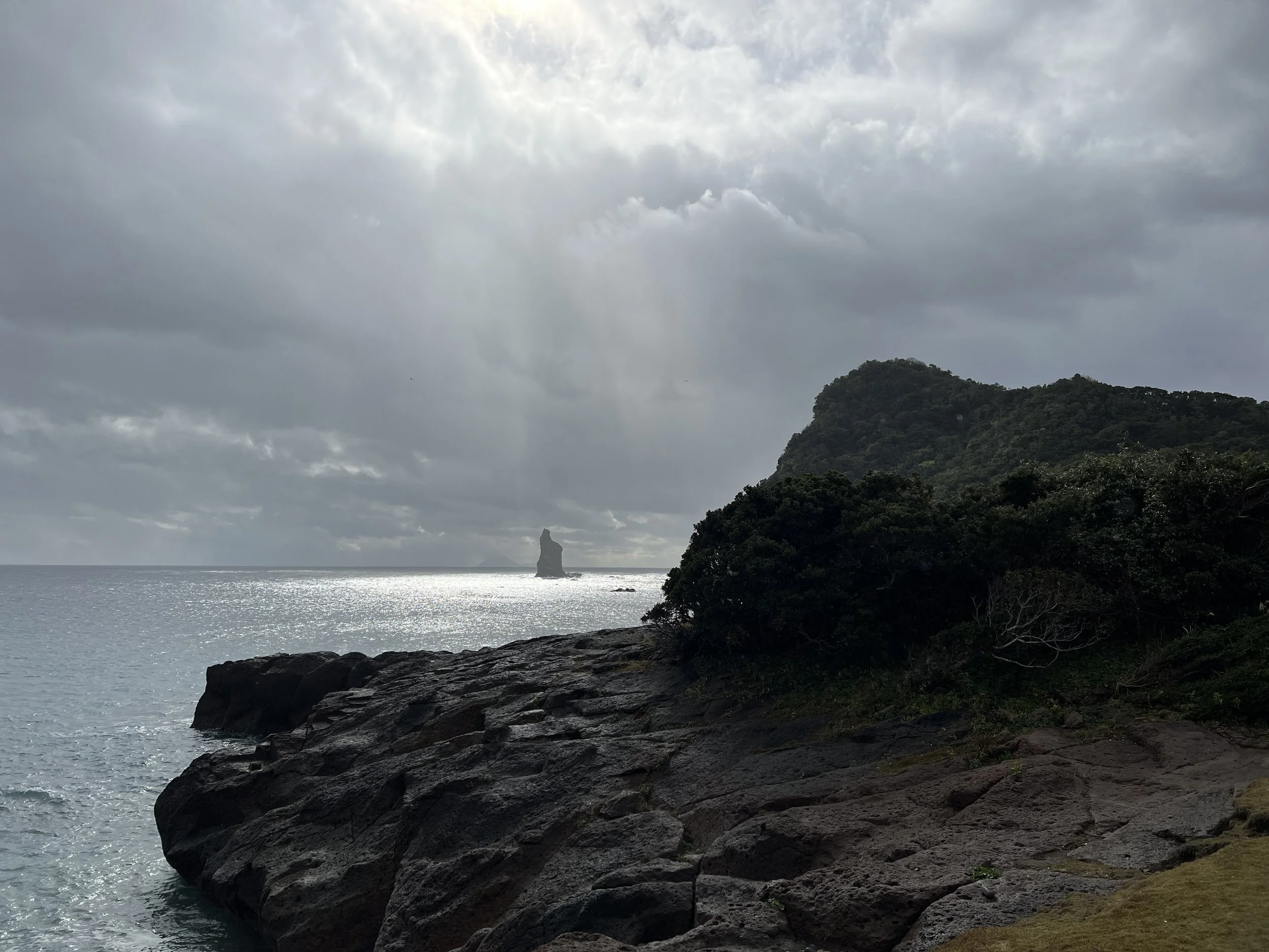 Despite the grey skies and light rain, two groups were camping in the park, barbecuing and enjoying the rugged coastal atmosphere. I followed the park trail along the cliffs until I reached the coastline viewpoint. At just the right moment, the clouds parted above Tategami Rock, allowing a shaft of light to illuminate it. For a brief instant, it looked almost ethereal — a dramatic, solitary pillar rising from the sea.