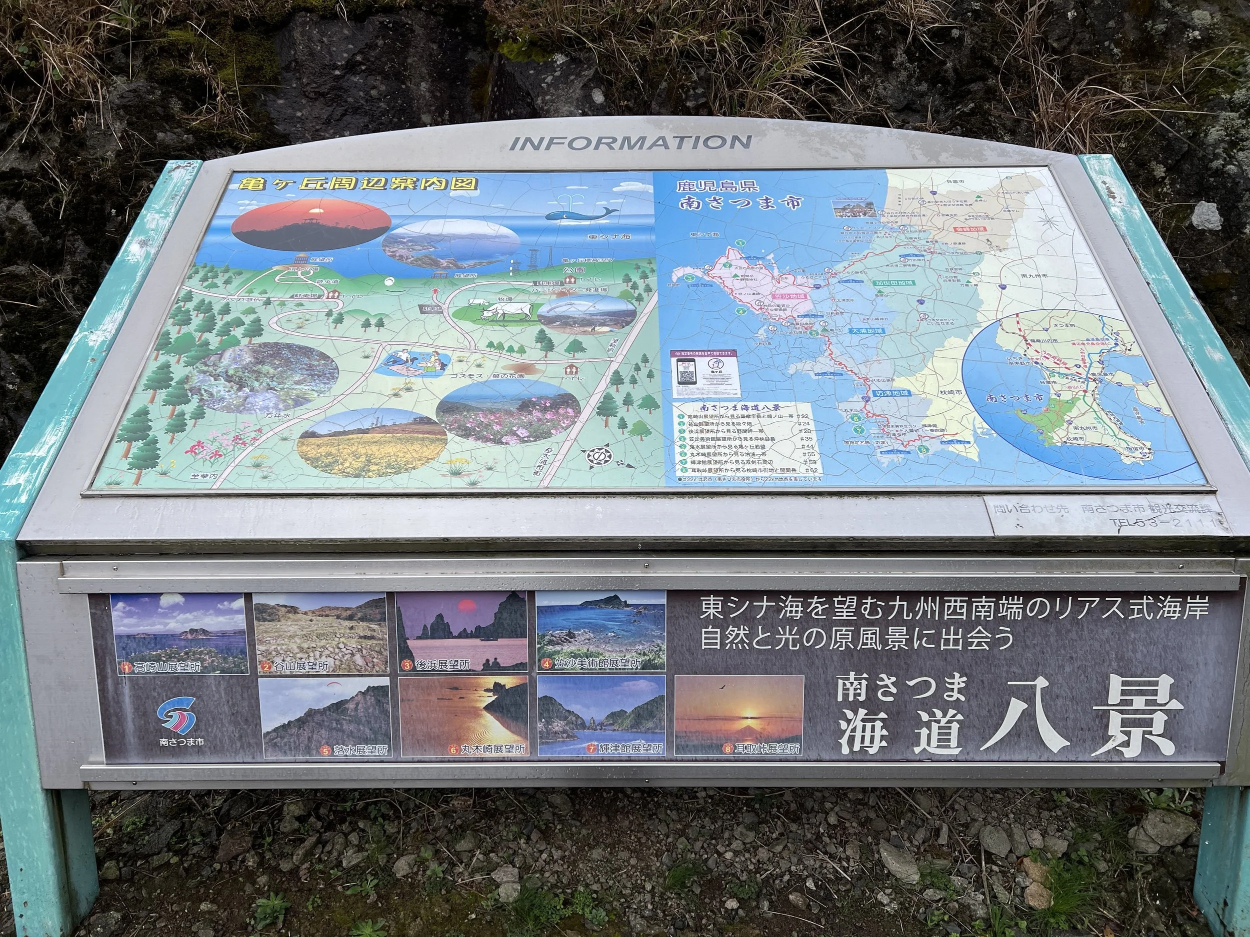 Itinerary: Ibusuki Toyota Car Rental → Kamegaoka Hill East China Sea Observatory 亀ヶ丘東シナ海展望所 → Kamegaoka Hill Hoshi-Furu-Oka Observatory 亀ヶ丘星降る丘展望所→ Hinokami Park 火之神公園 → Lake Ikeda 池田湖 → Golden Torii 黄金の鳥居 → Tara Beach 田良浜 → Mt.Uomidake 魚見岳 → Ibusuki Toyota Car Rental