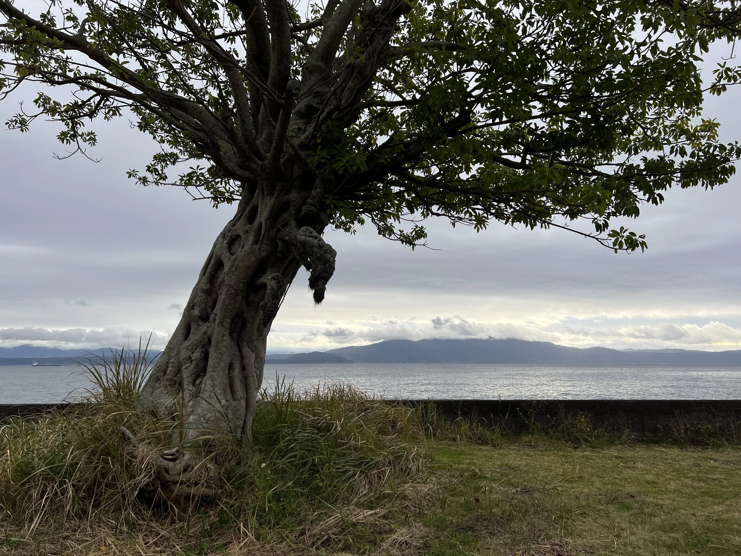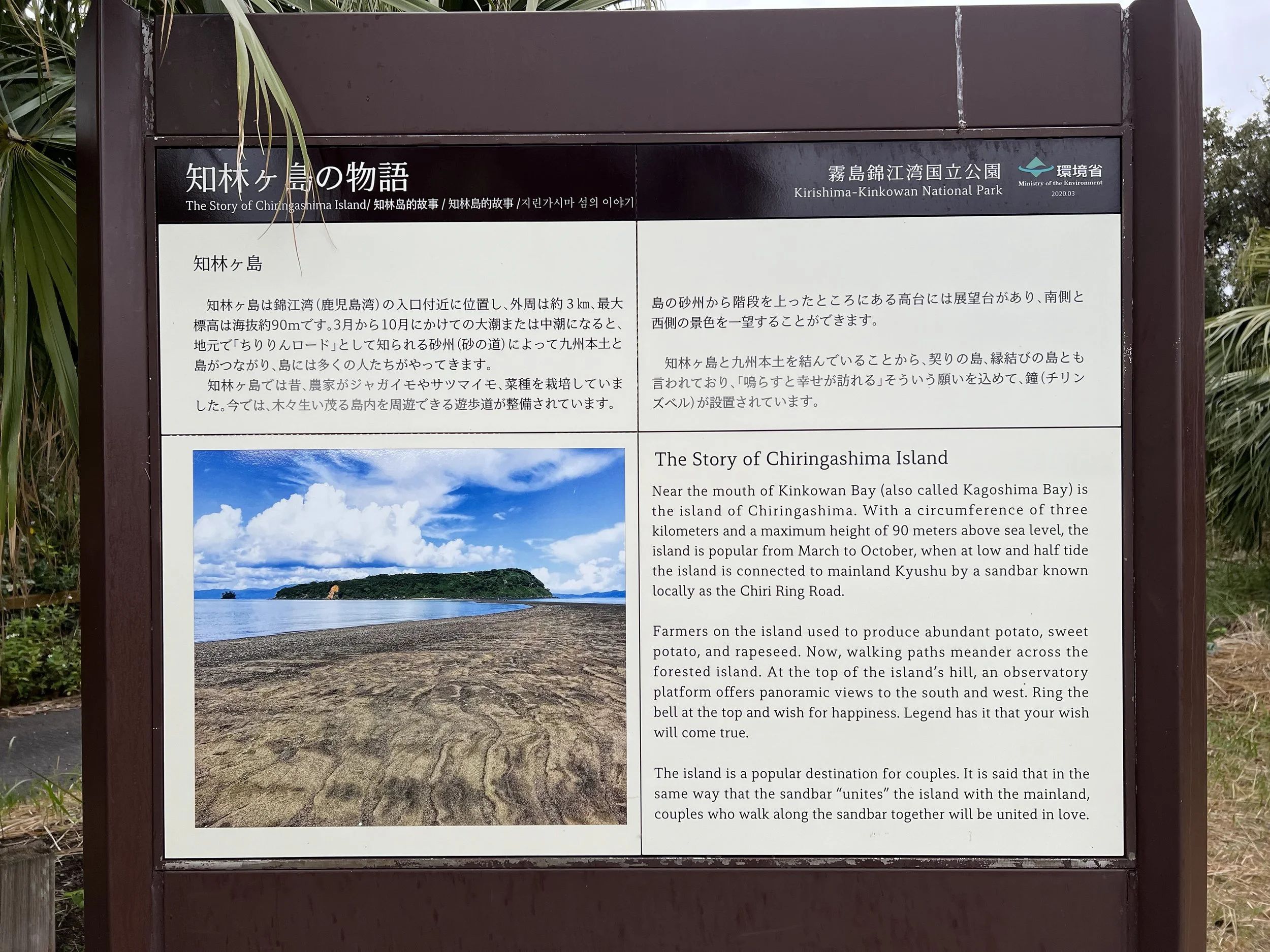 Next, I drove to Tara Beach, known for views of Chiringashima — an uninhabited island in Kinko Bay, roughly three kilometres in circumference and 90 metres high. Known as the “Island of Mystery,” Chiringashima is connected to Kyushu by a sandbar that appears during low tide between March and October. The sandbar stretches about 800 metres and is only visible for one to four hours per day, depending on tidal conditions.