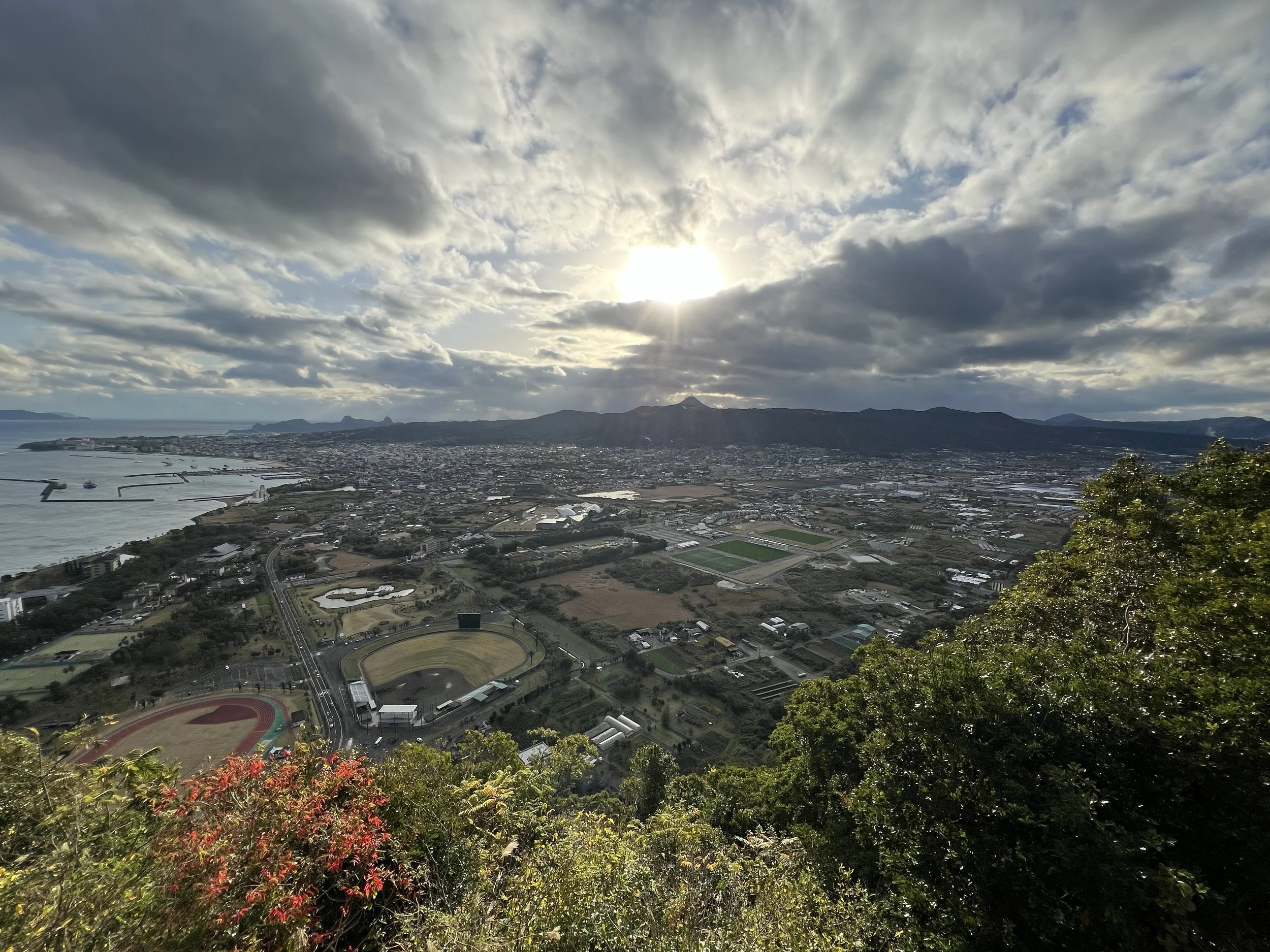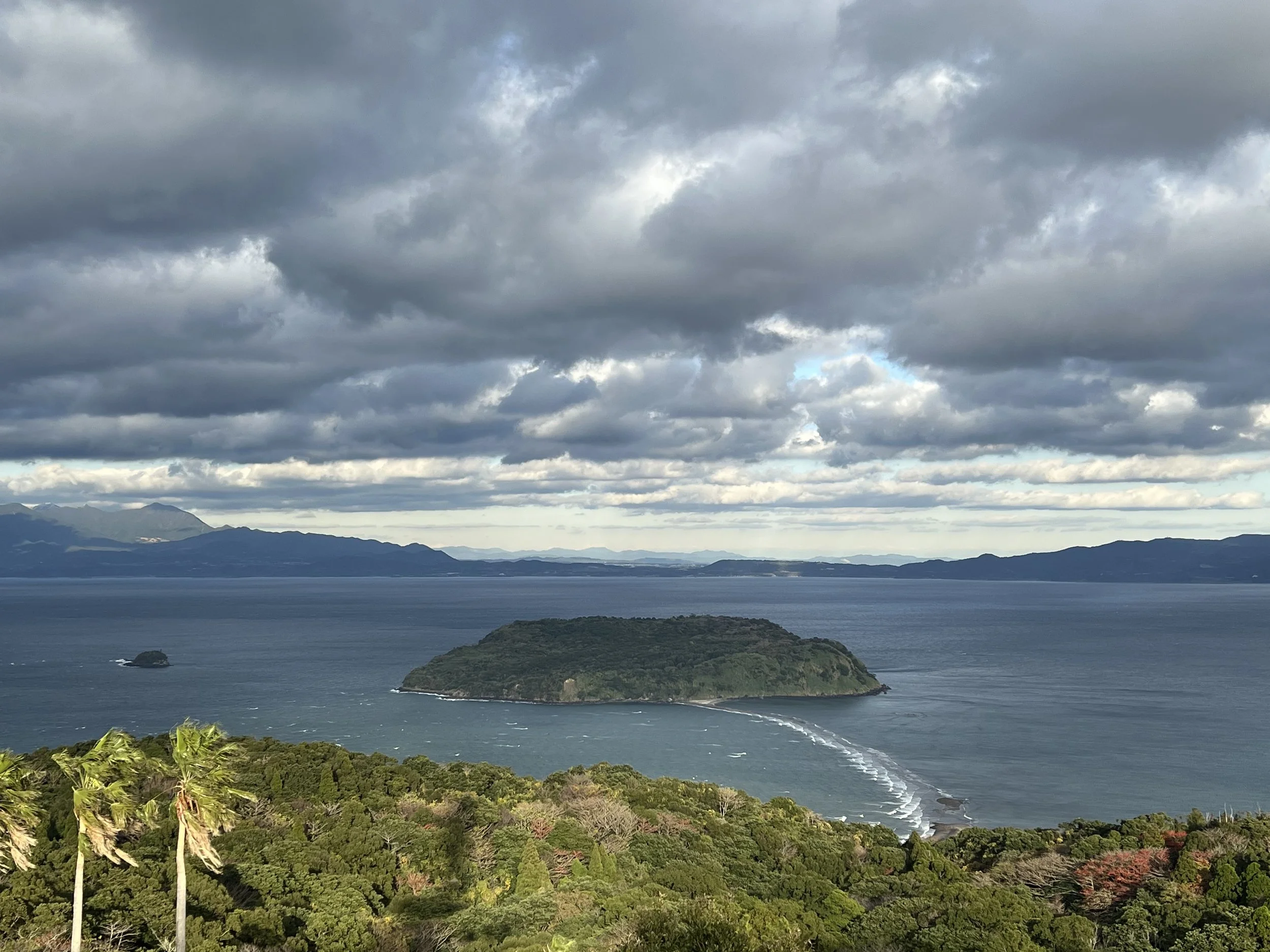My final stop was Mount Uomidake, which offers an elevated observatory with sweeping views over Ibusuki and Chiringashima. From above, you can clearly see where the sandbar forms. By this point, the clouds were beginning to lift, and patches of blue sky were emerging. I considered staying for sunset — this would undoubtedly be a spectacular spot for it — but I needed to return the rental car before closing.