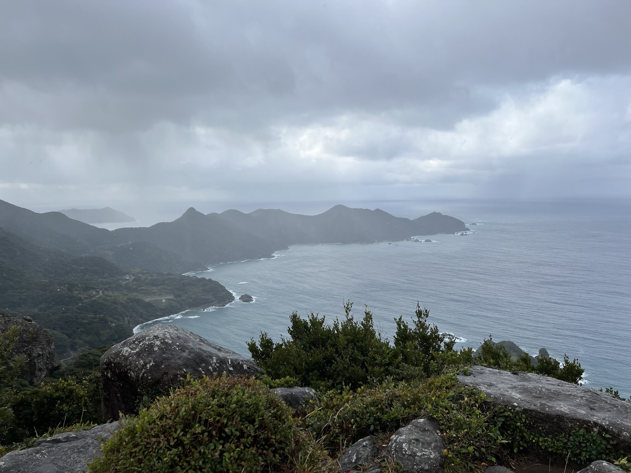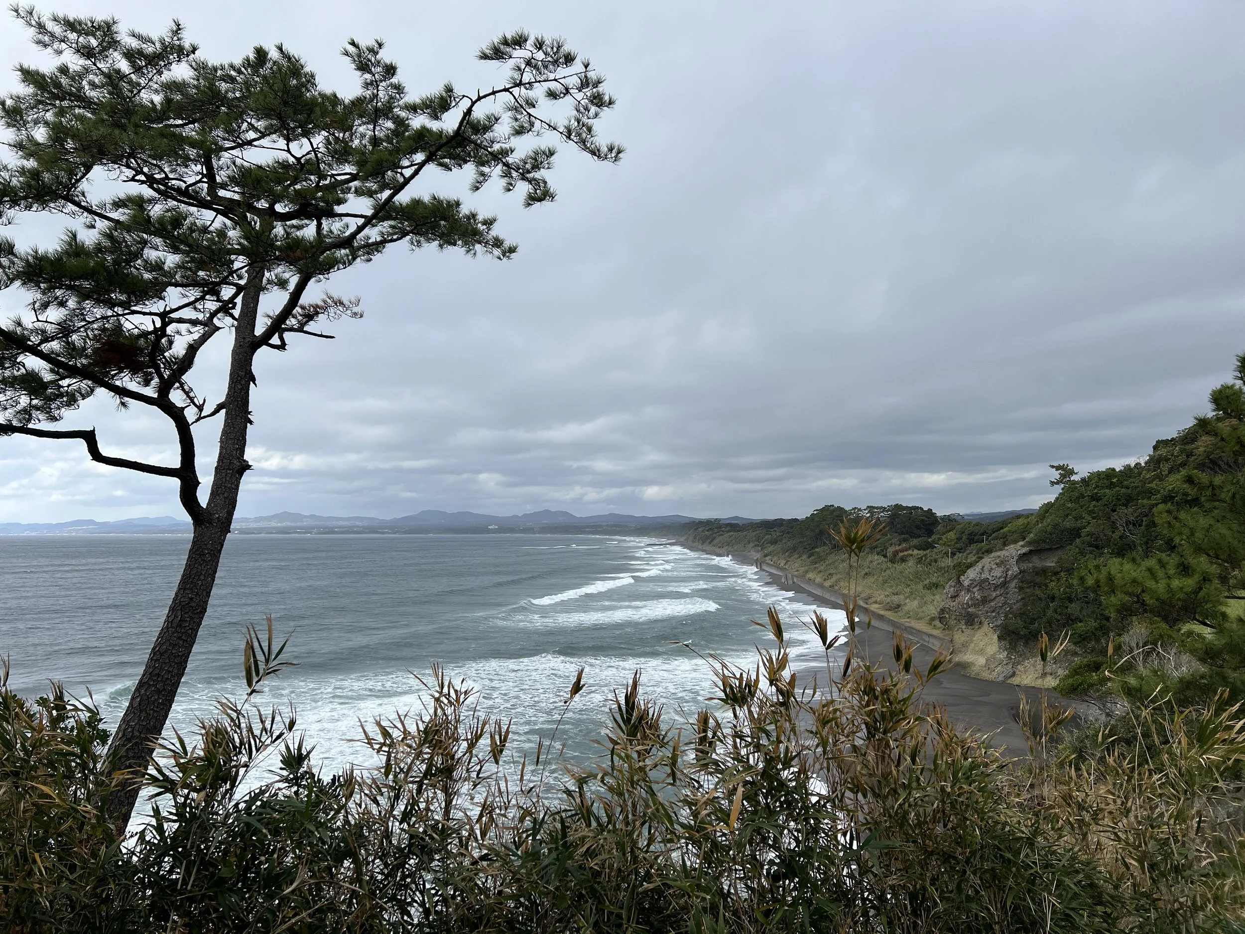 From Ibusuki, I headed west towards Kamegaoka Hill in Minamisatsuma. There are two observatories here, both offering sweeping views over the East China Sea and located only a short drive from one another. The weather was temperamental — a brief spell of hail greeted me as I climbed into the hills — but it passed quickly. I made the short hike up to the first observatory, and even under brooding skies, the panorama was stunning. The ocean stretched endlessly into the horizon, waves breaking against the rugged coastline below.