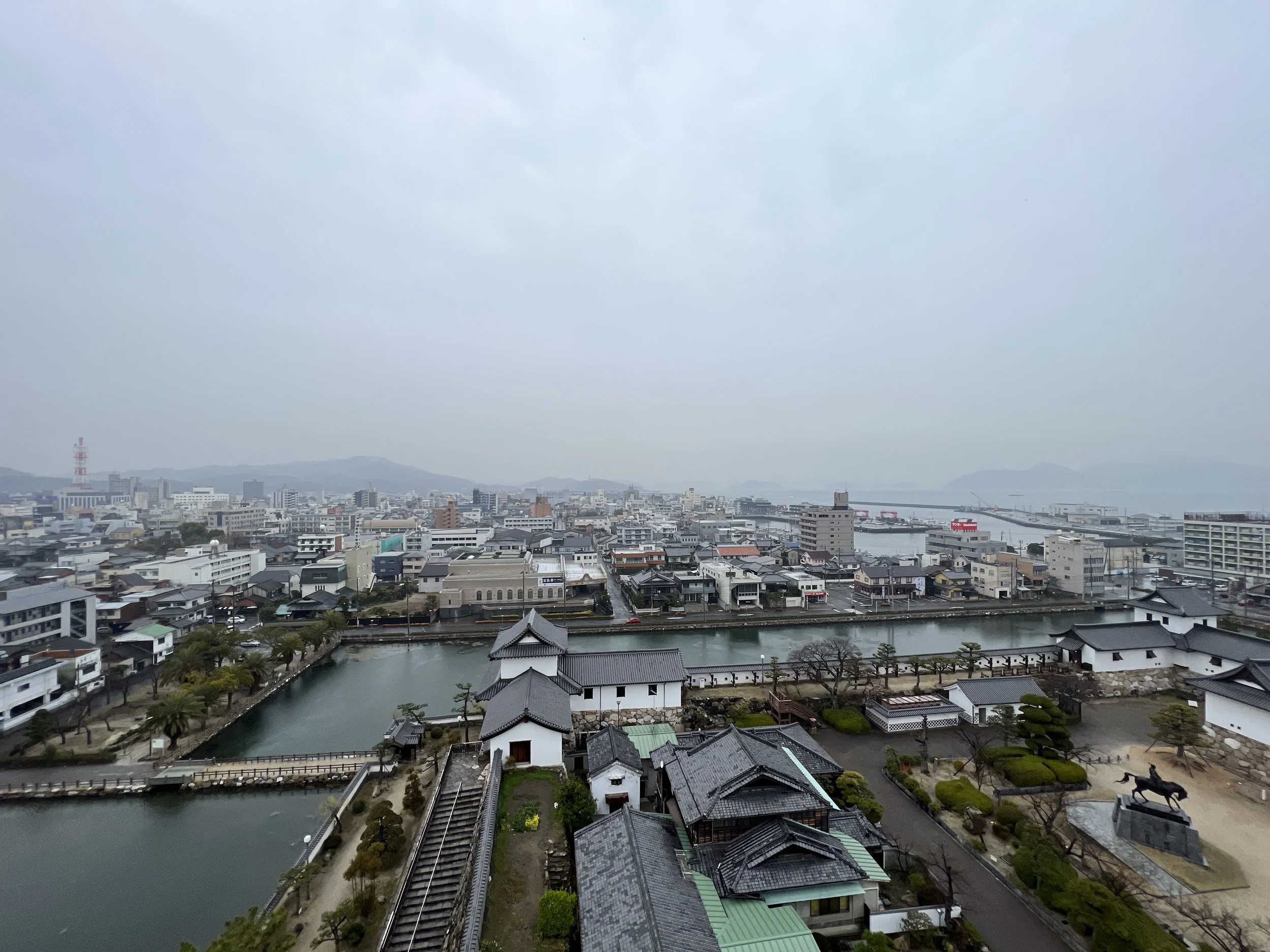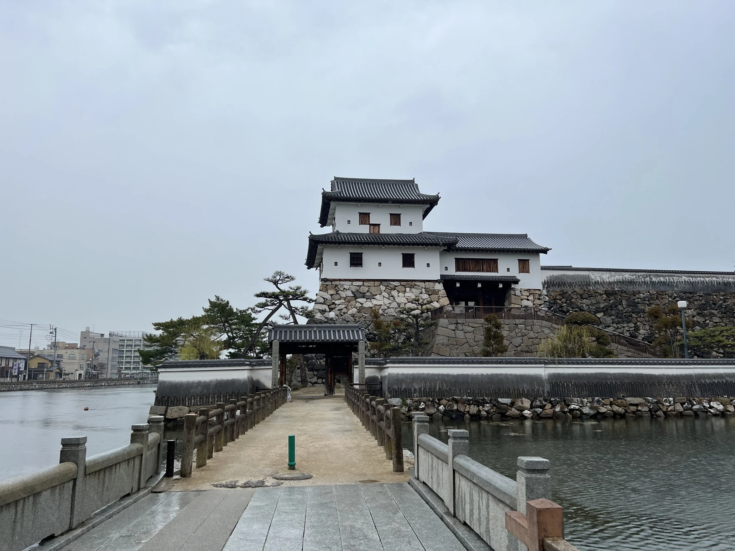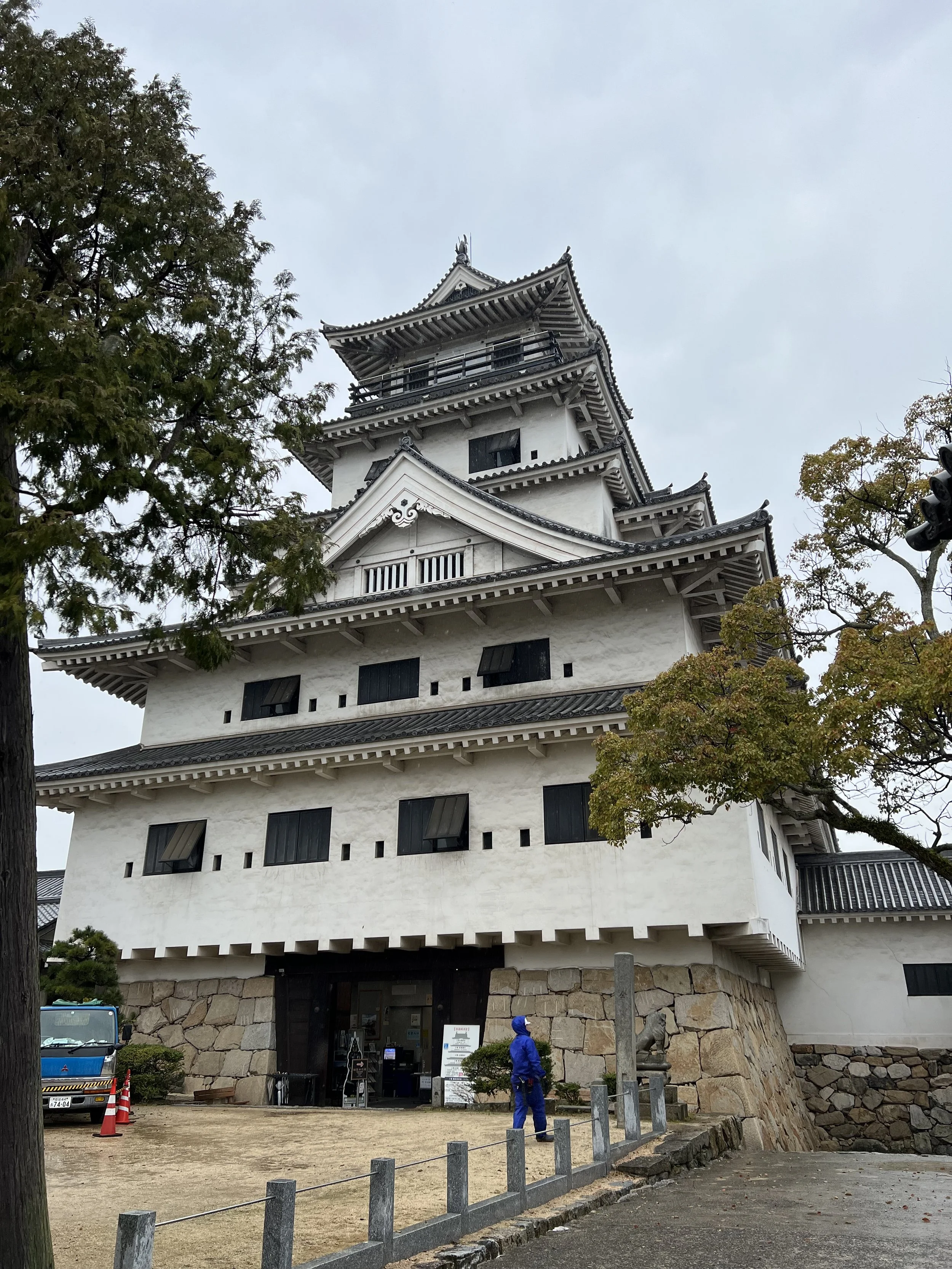 It was pouring rain, and after spending most of the day exploring outdoors, I debated whether I still wanted to visit Imabari Castle. The weather was relentless, and the idea of walking around another open site wasn’t exactly appealing. Still, Imabari Castle is one of Japan’s three great sea castles, and knowing that, I couldn’t bring myself to skip it. Imabari itself is best known for its exceptionally soft and durable Imabari towels and as the gateway to the famous Shimanami Kaido cycling route, but the castle remains one of the city’s defining landmarks.