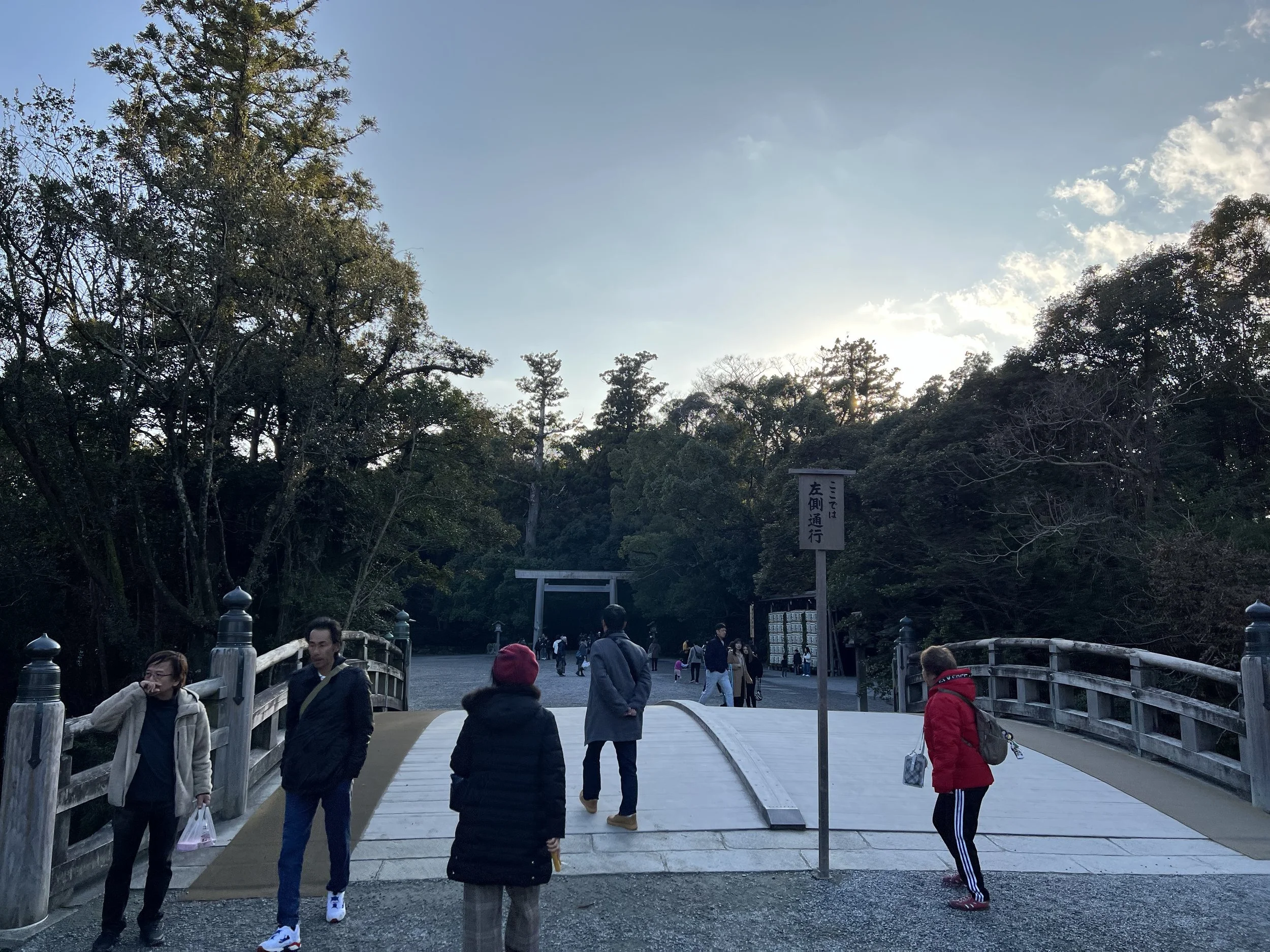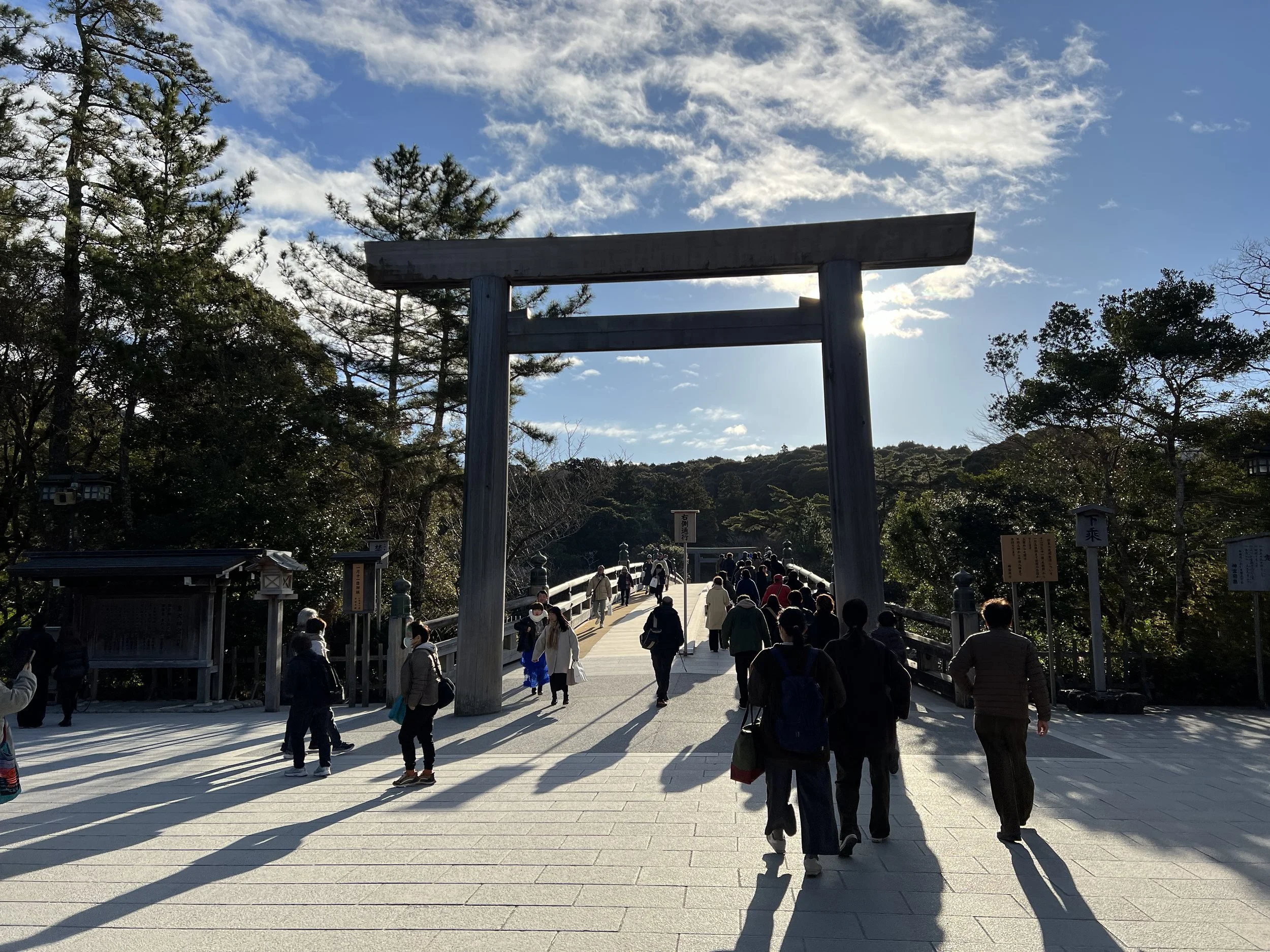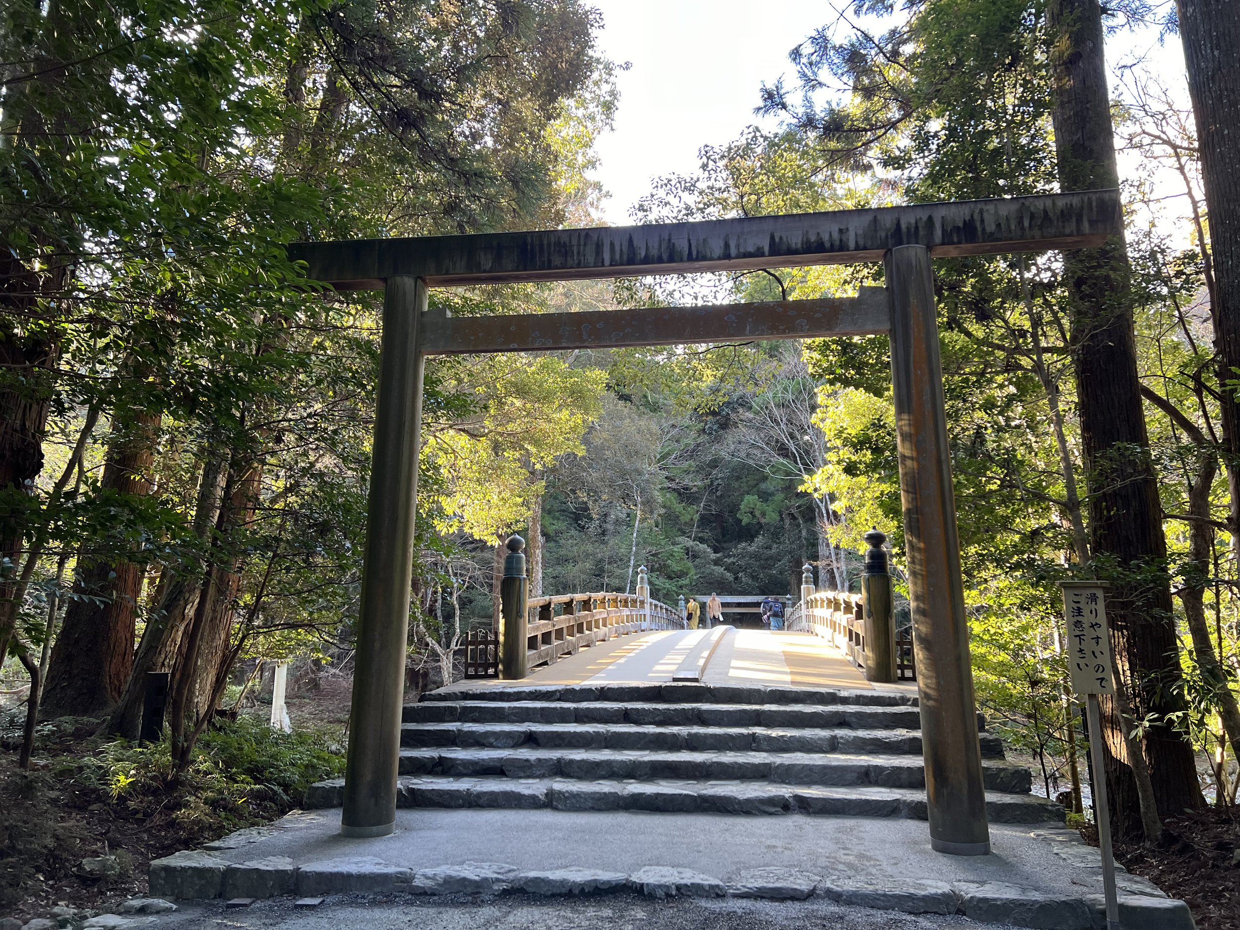 As I approached the entrance, I noticed something I hadn’t expected. Before stepping onto the bridge, everyone stopped and bowed. I followed along, even though I wasn’t entirely sure why. I had always known to bow at torii gates, but seeing this at the bridge made me curious. Later, I learned that crossing the bridge symbolically marks the transition into sacred space similar to passing through a torii.