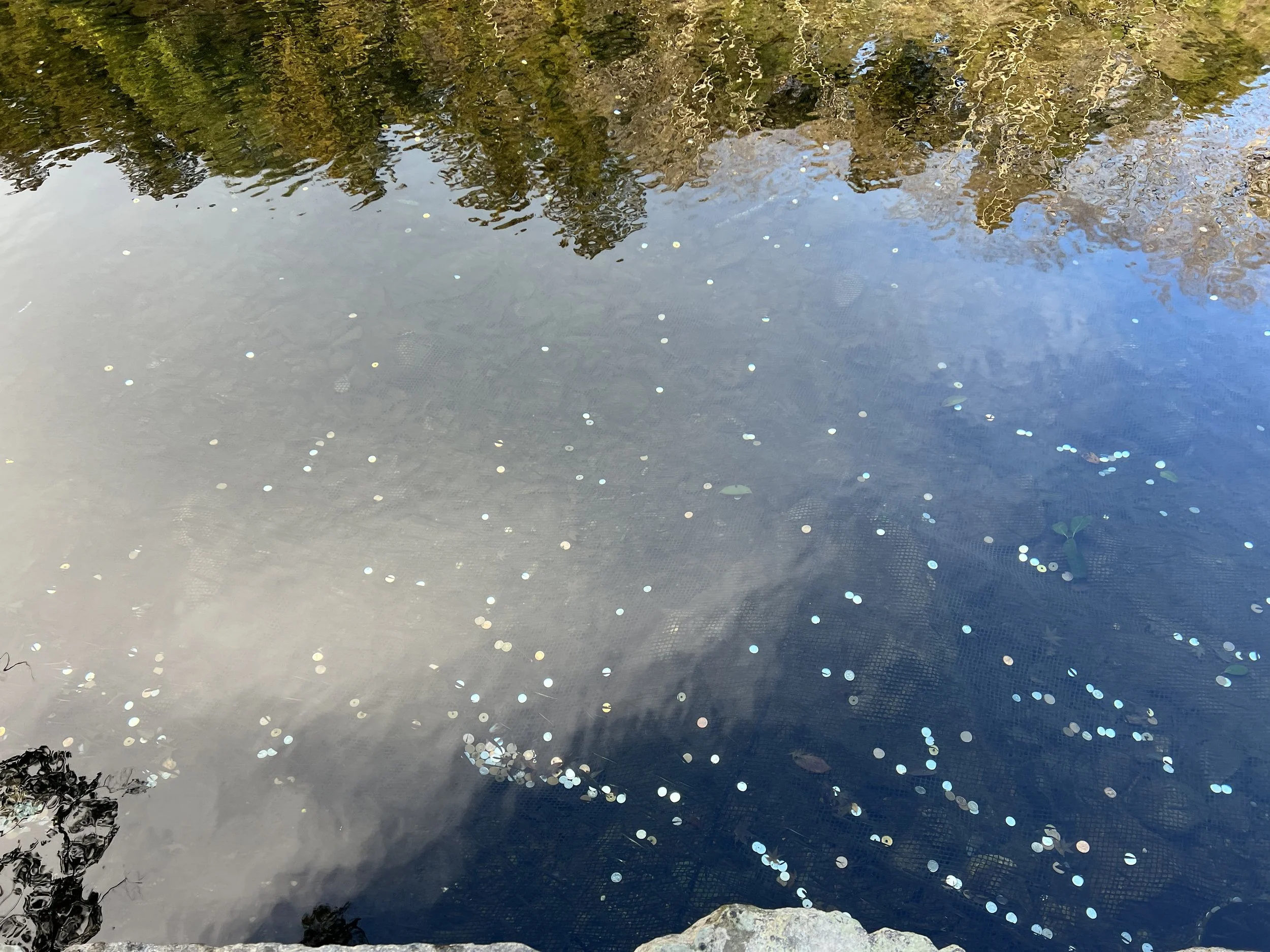 Shortly after entering, I noticed something interesting as people veering off toward the Isuzugawa River. This river is considered sacred, and many visitors take a moment to symbolically cleanse themselves before continuing. The sunlight reflecting off the water, combined with countless coins scattered along the riverbed, made the whole scene shimmer. After spending some time there, I continued toward the main sanctuary.