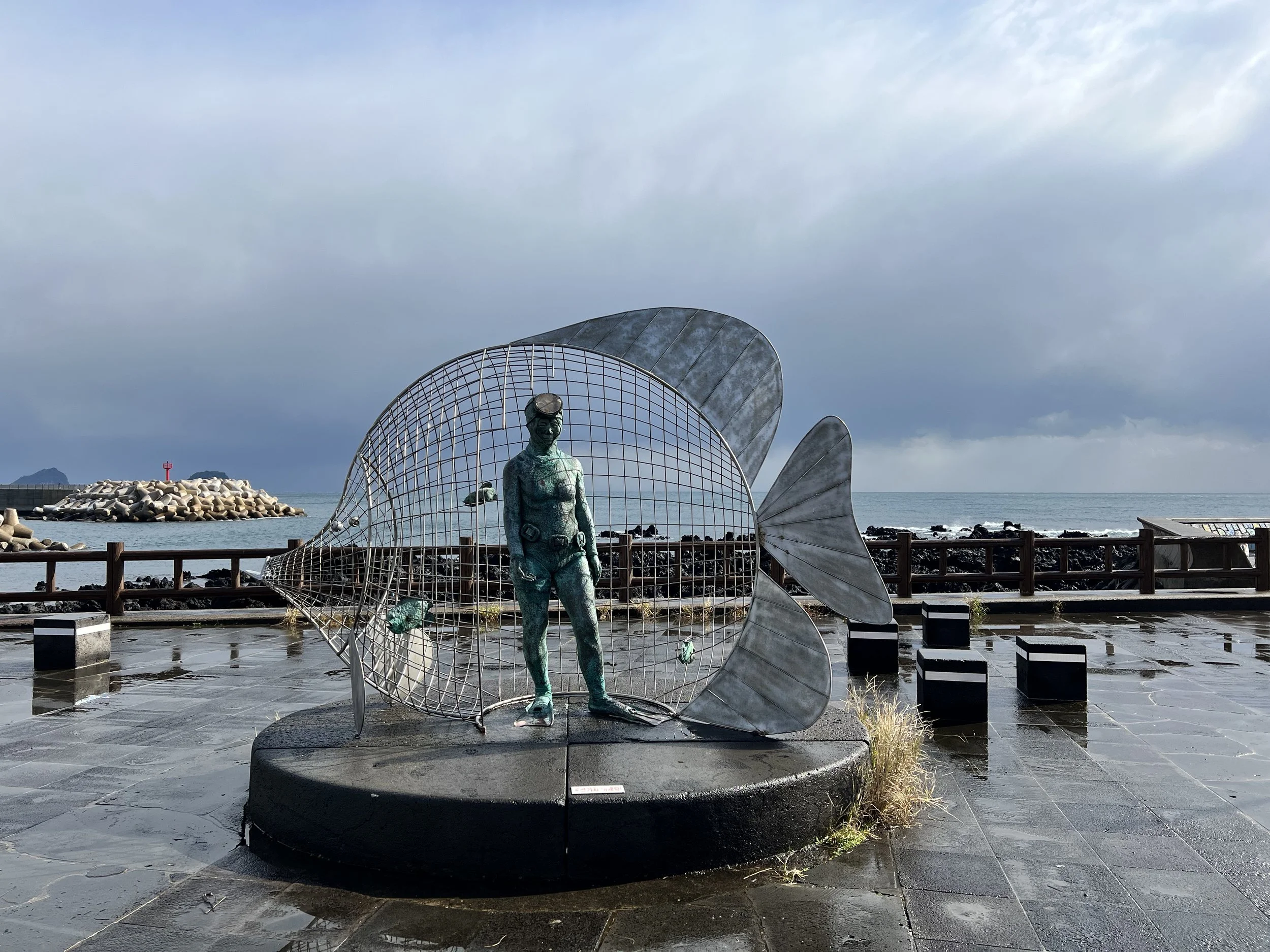 With four days in Jeju, I planned to hike four sections, all on the southern side since I was staying there. Today, I hiked Trail 7, starting in Seogwipo. I picked up a Jeju Olle Passport from the visitor centre before heading out. The trail passed through city parks, beaches, and fishing towns. Like the Camino’s yellow arrows, the Jeju Olle Trail is marked with blue (clockwise) and orange (counterclockwise) arrows and ribbons.