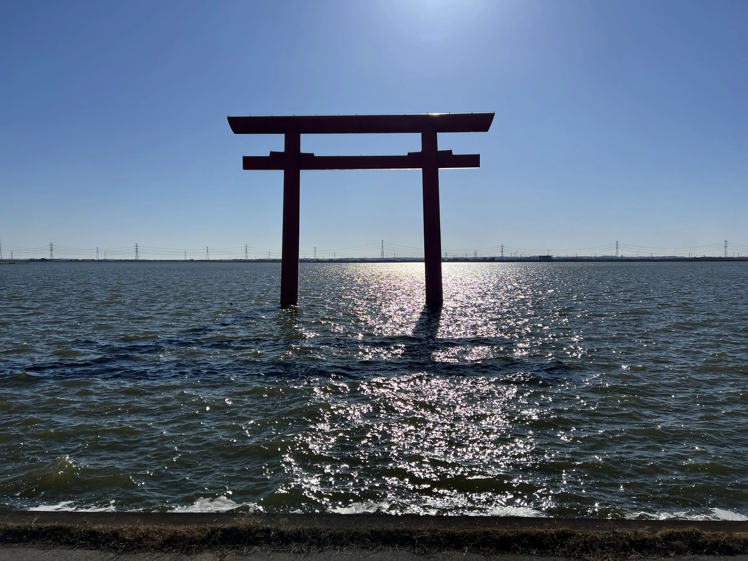From there, I continued wandering along the forest trails within the shrine grounds before eventually making my way toward the Kashima Jingu West First Torii 2.5 kilometres away. This impressive torii gate stands in Lake Kitaura and rises about 18.5 metres high. Historically, this gate served as an approach for worshippers arriving by boat.