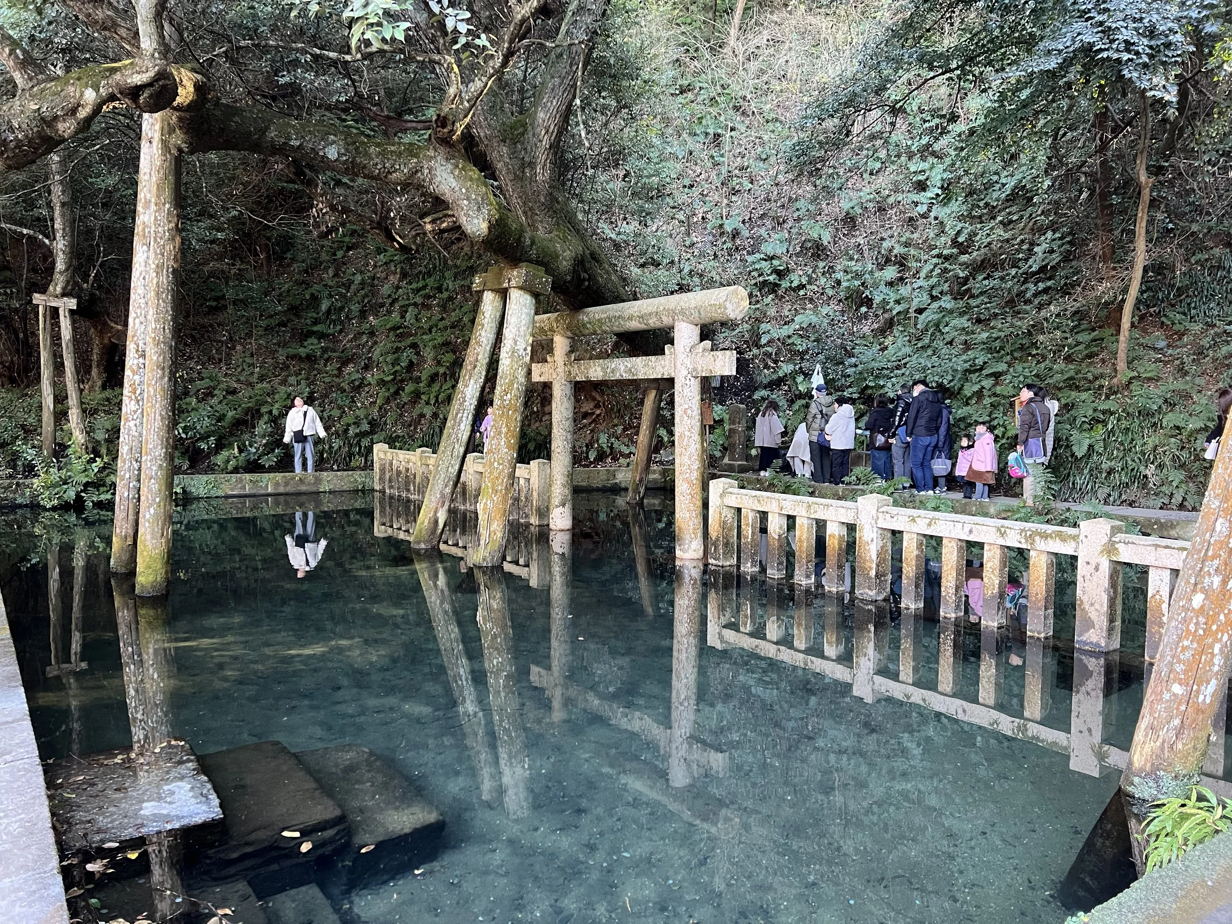 After the performance ended, I walked around the pond itself. Mitarashi Ike is fed by underground spring water and was historically used for ritual purification before worshippers approached the shrine. While that practice is no longer performed here—modern purification basins now stand at the shrine entrance—the pond still holds a sacred atmosphere. The water is remarkably clear, and with the surrounding trees reflecting on the surface, it takes on a gentle green tint. As people walked around the pond, the atmosphere seemed to shift—voices lowered and the entire area grew noticeably quieter.