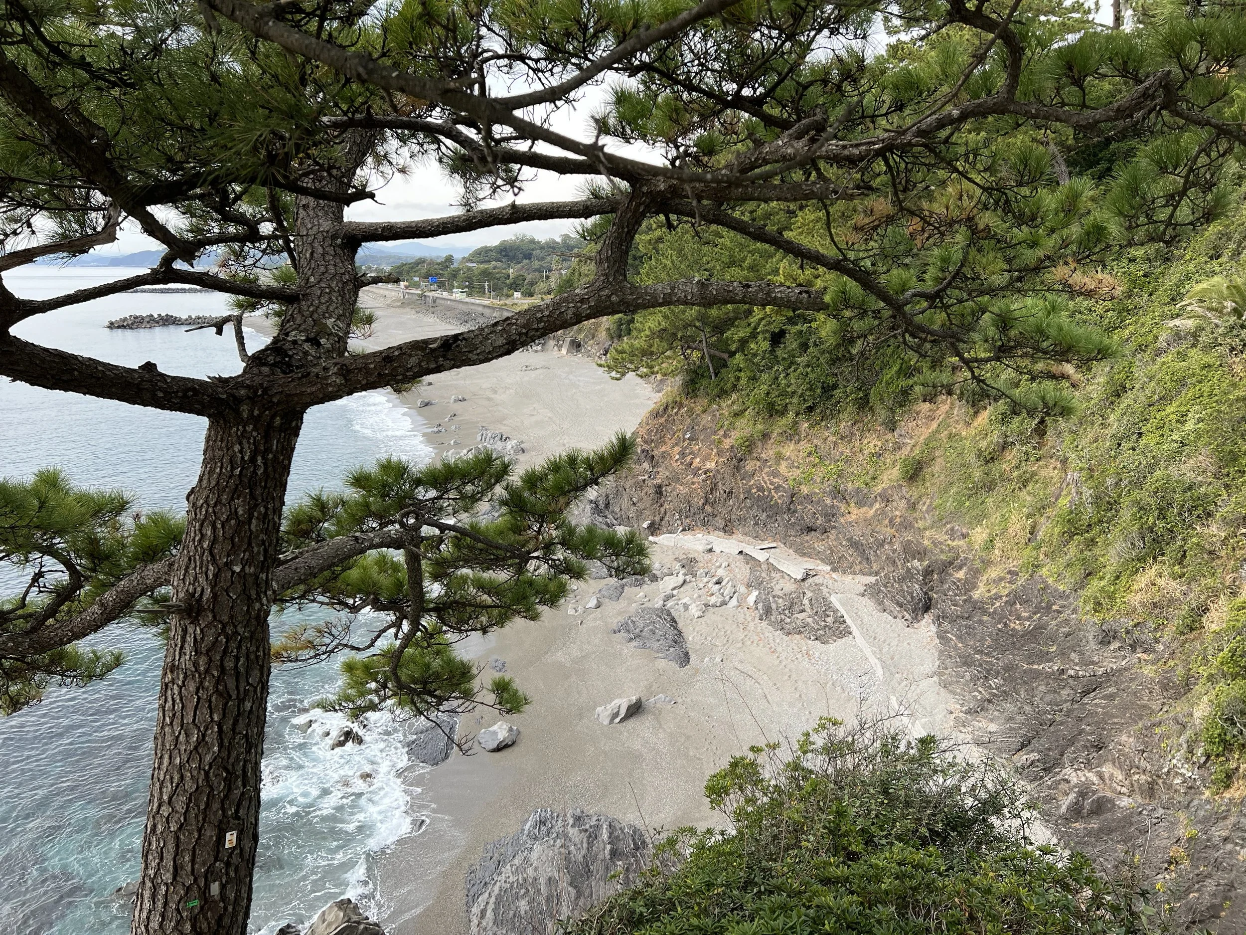 I was visiting one of the Shikoku Henro temples, Chikurin-ji, and making my way toward Sekkeiji Temple. Katsurahama sits roughly midway between these two temples, and having heard about its scenery, I decided to stop to explore the area and have lunch before continuing on. I took a bus from the Chikurin-ji area, which dropped me off near the beach’s shopping zone.