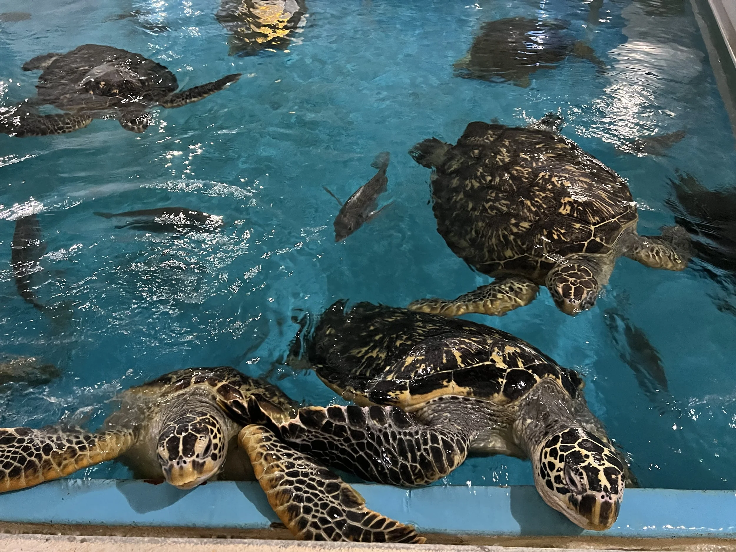 From there, I followed a different path back down toward Katsurahama Aquarium. I debated whether it was worth visiting, as the facility is quite small and the entrance fee seemed relatively high. In the end, curiosity won out. The aquarium houses several sea turtles, and it was fascinating to see them up close. As with many aquariums in Japan, visitors can purchase feed to give to the animals. I watched as the turtles swam eagerly toward anyone holding food.