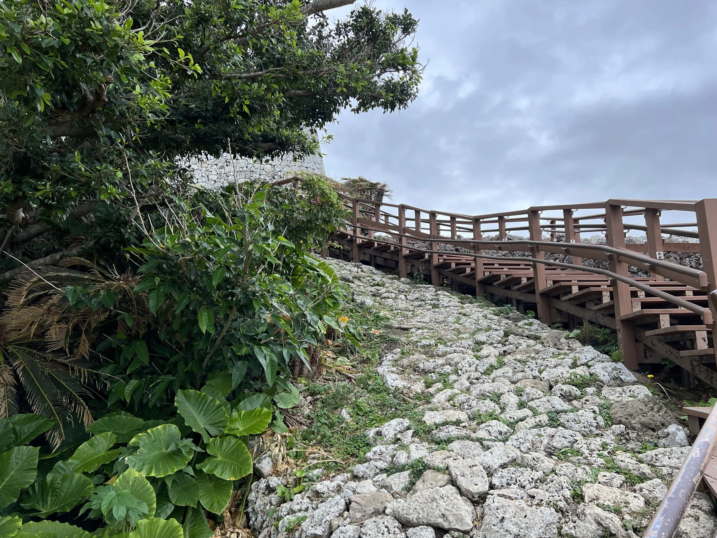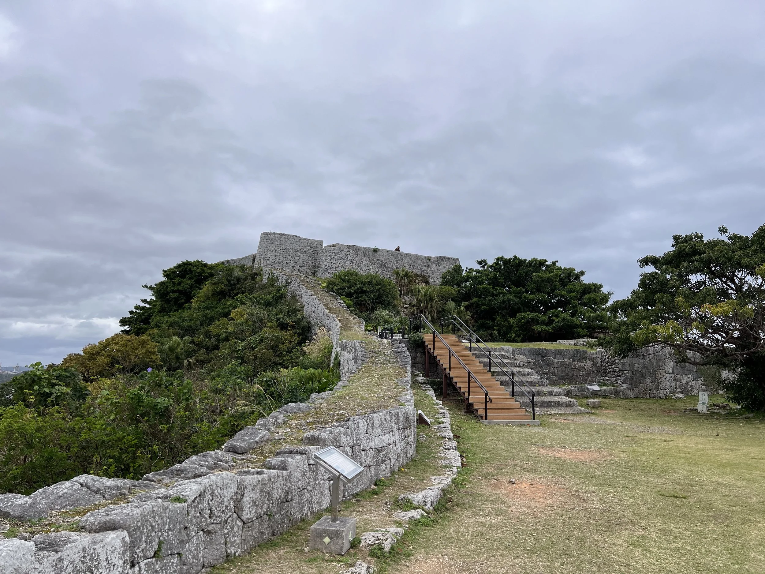 When I arrived at the parking lot across the street from the castle, tickets were purchased inside the Amawari Park museum. Admission to the museum is included with the castle ticket, but I decided to explore the ruins first. It’s only a short walk to the entrance, and although there is a gradual incline, staff operate golf cart-style vehicles to ferry visitors partway up the hill. I chose to walk — the slope didn’t feel too steep, and it gave me the chance to take in the full view of Katsuren Castle rising above the landscape.