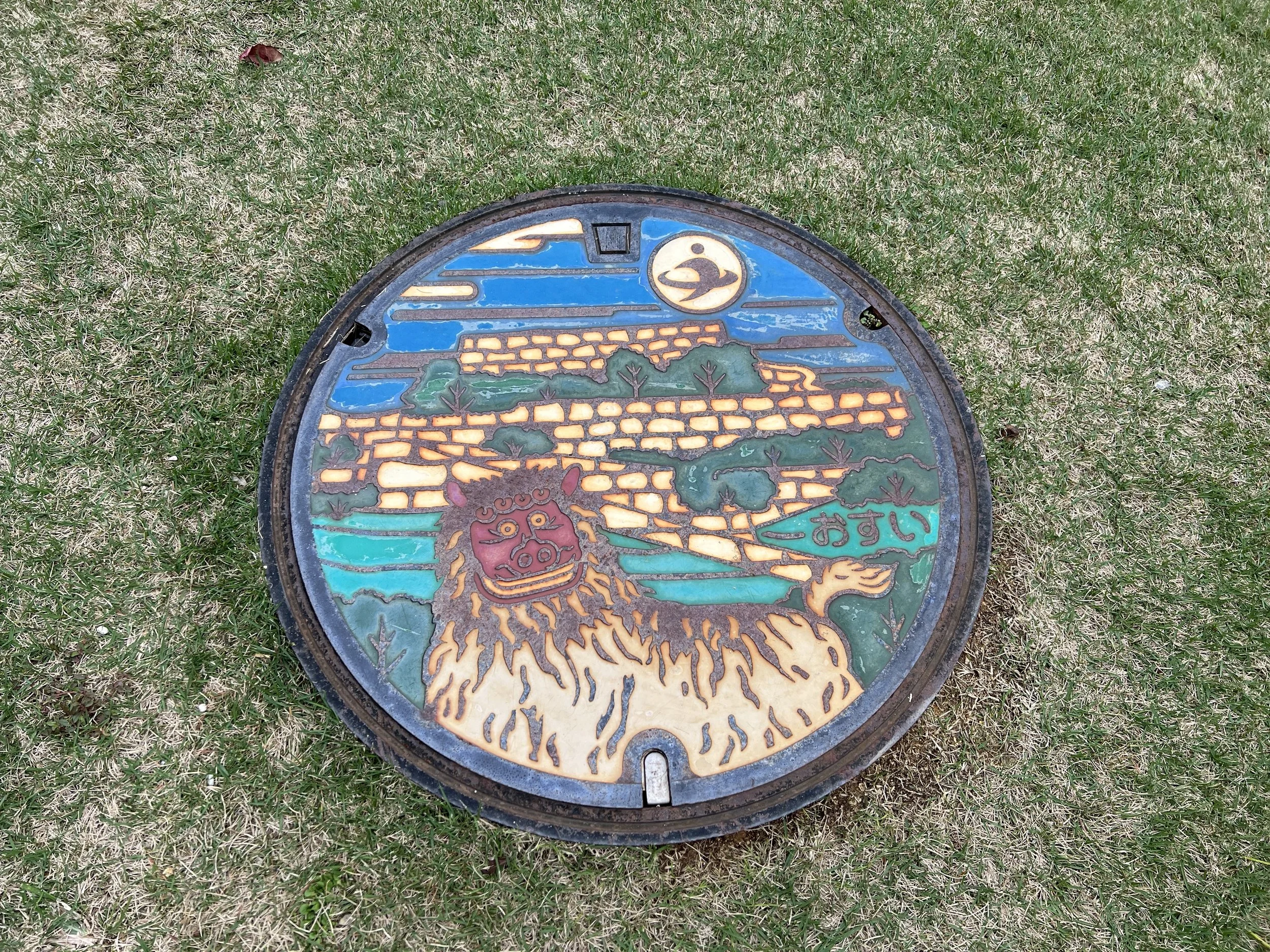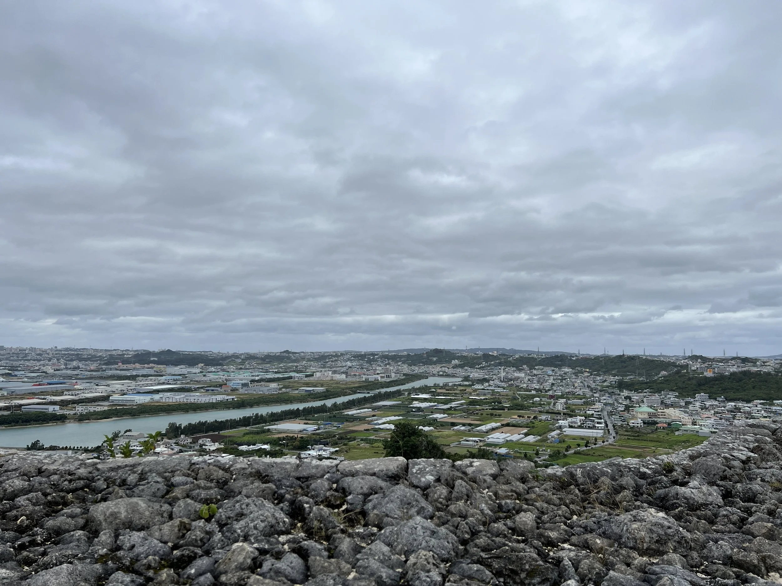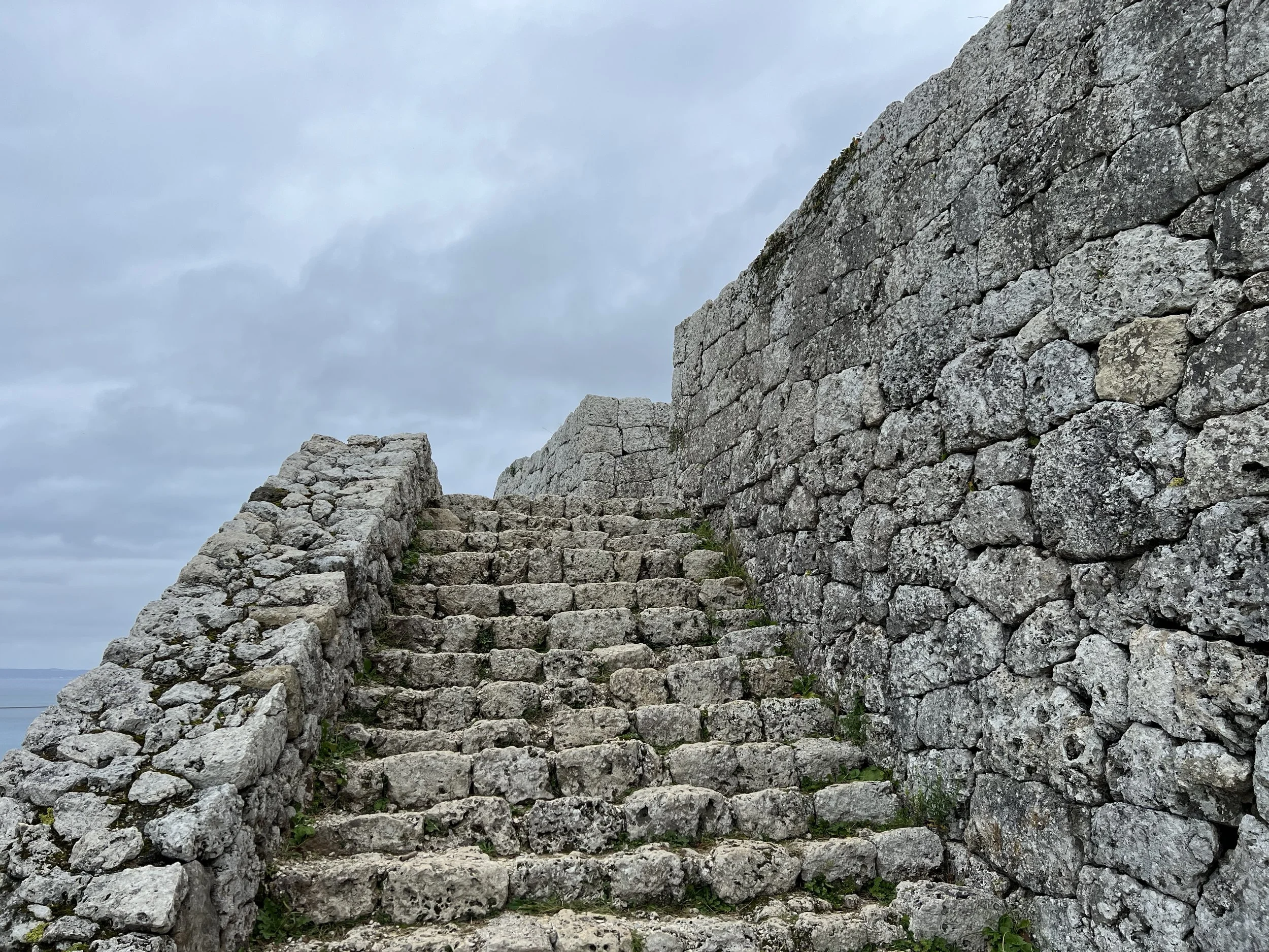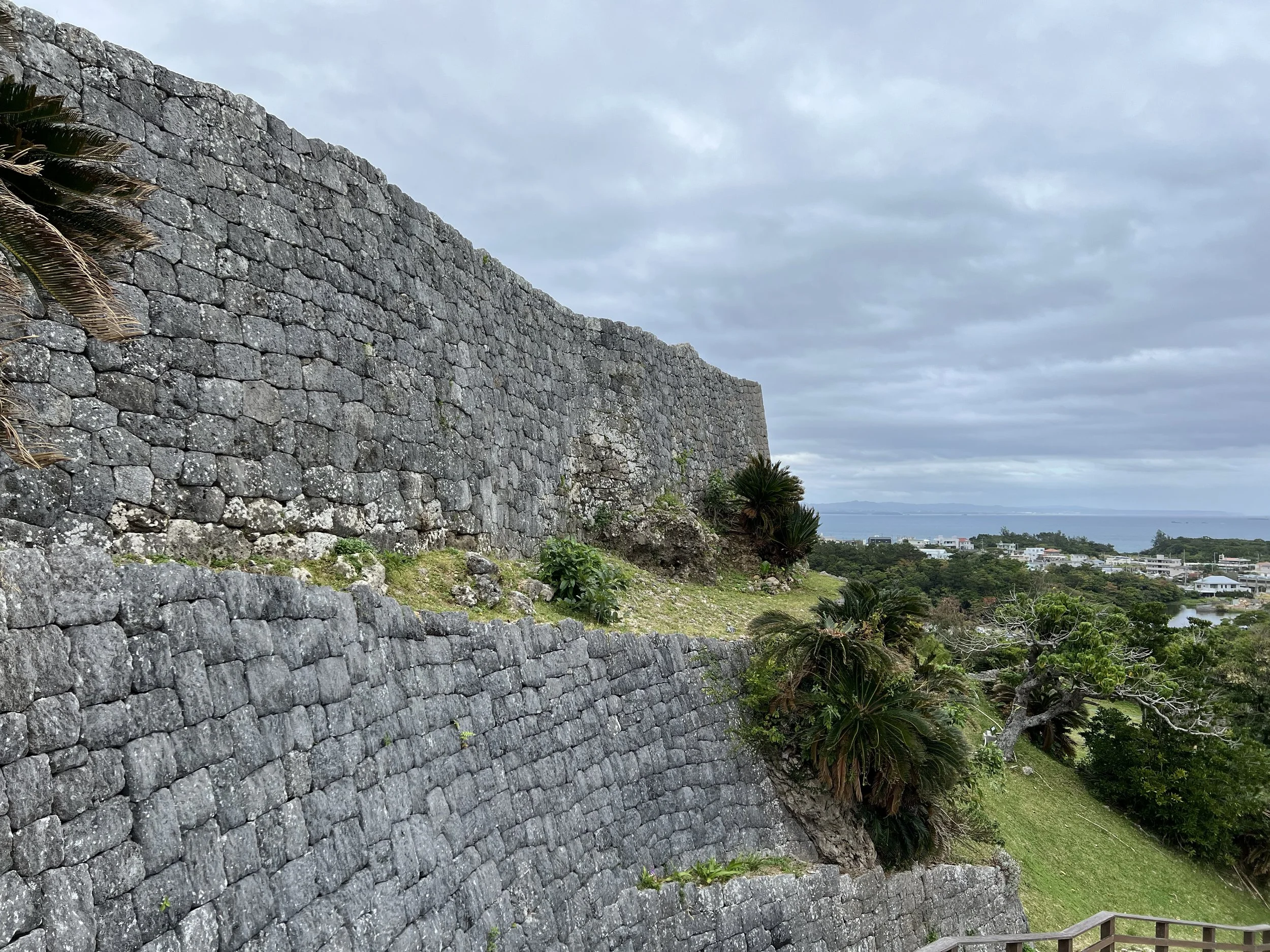 Like many of the castles in Okinawa, the limestone terrain is surprisingly tricky underfoot. It’s not slippery, but the porous stone seems to catch the soles of your shoes with every step. I made my way up the stone staircases, passing through impressive curved stone walls, with expanding views of the town below and the ocean stretching out in the distance.