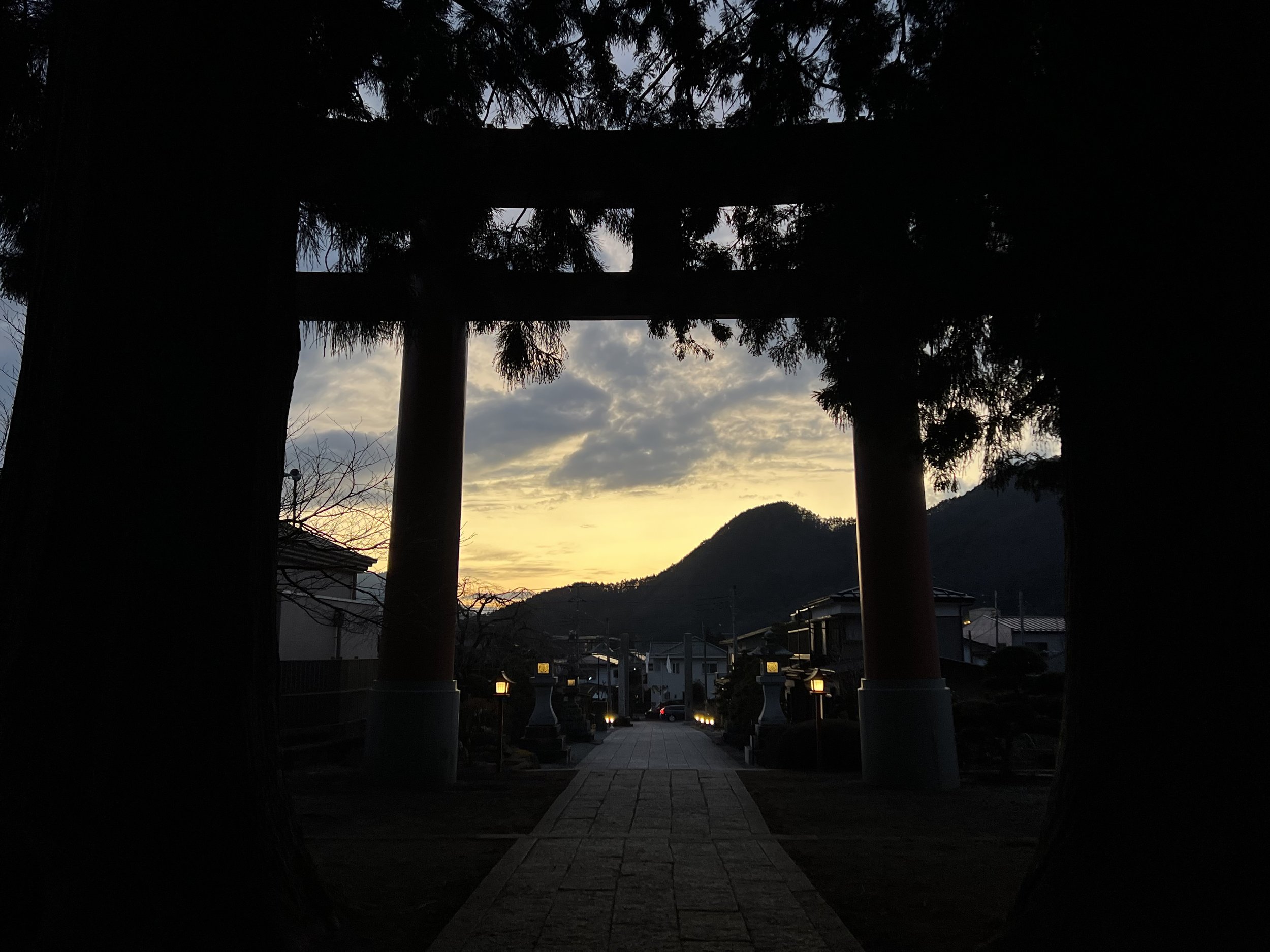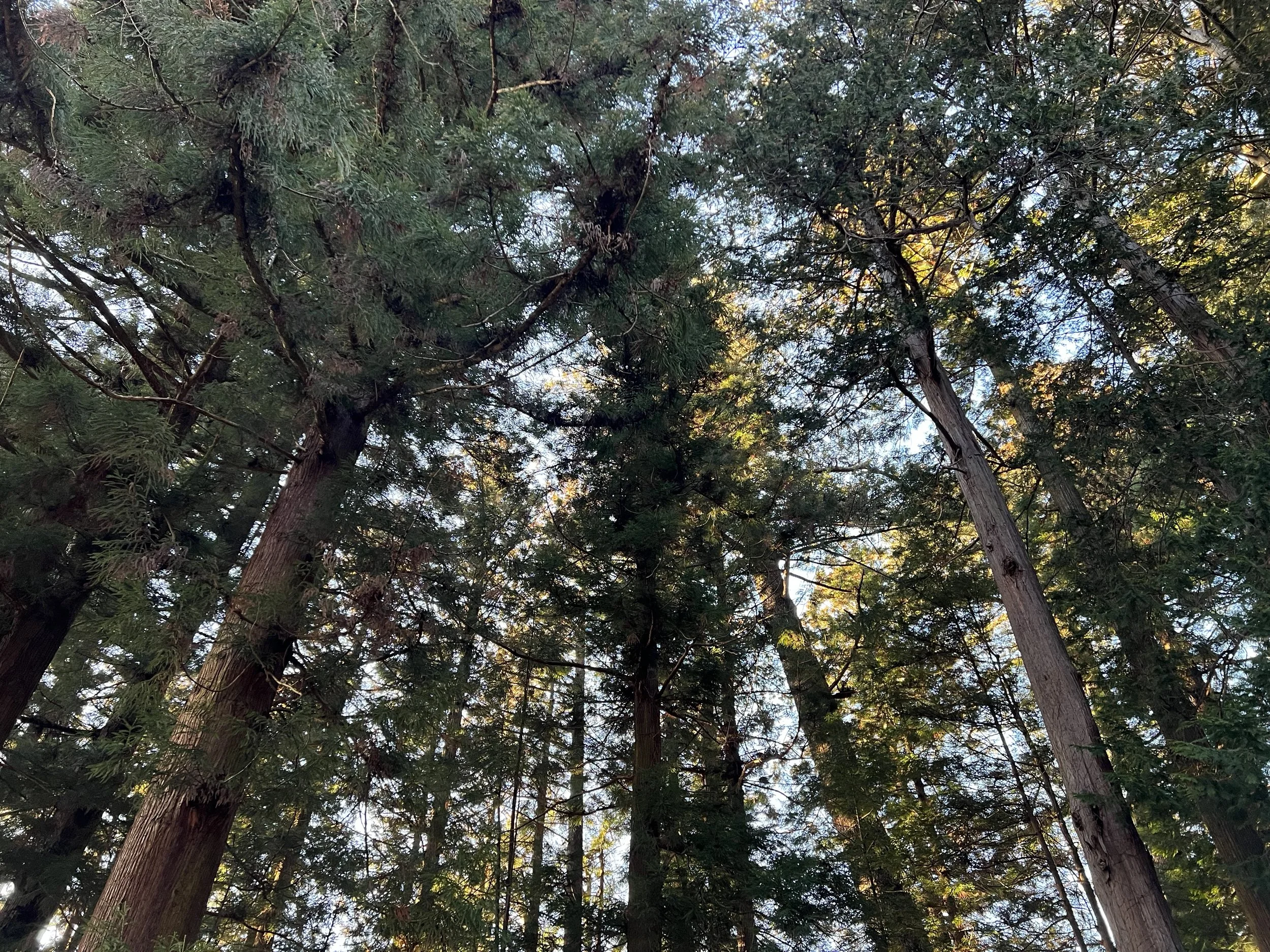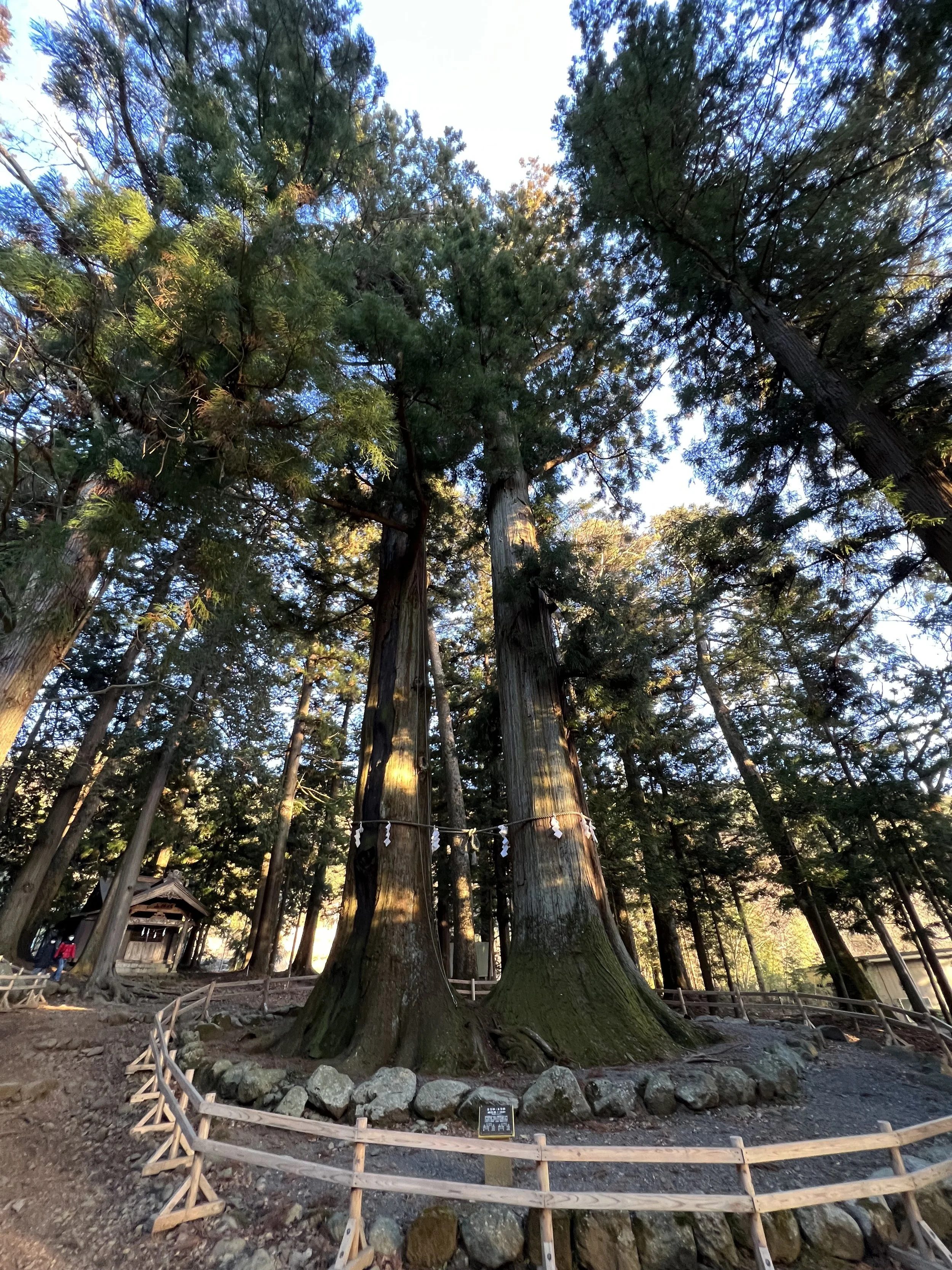 As the sun started to set, a warm orange glow lit up the torii gate at the shrine’s entrance. Walking through it, I was immediately surrounded by towering cedar trees. The atmosphere shifted instantly—it felt quieter, almost otherworldly, like stepping into a different dimension. The shrine grounds are home to seven sacred cedar trees, each considered a deity in its own right. I found myself completely drawn to them, almost forgetting to focus on the shrine buildings themselves.