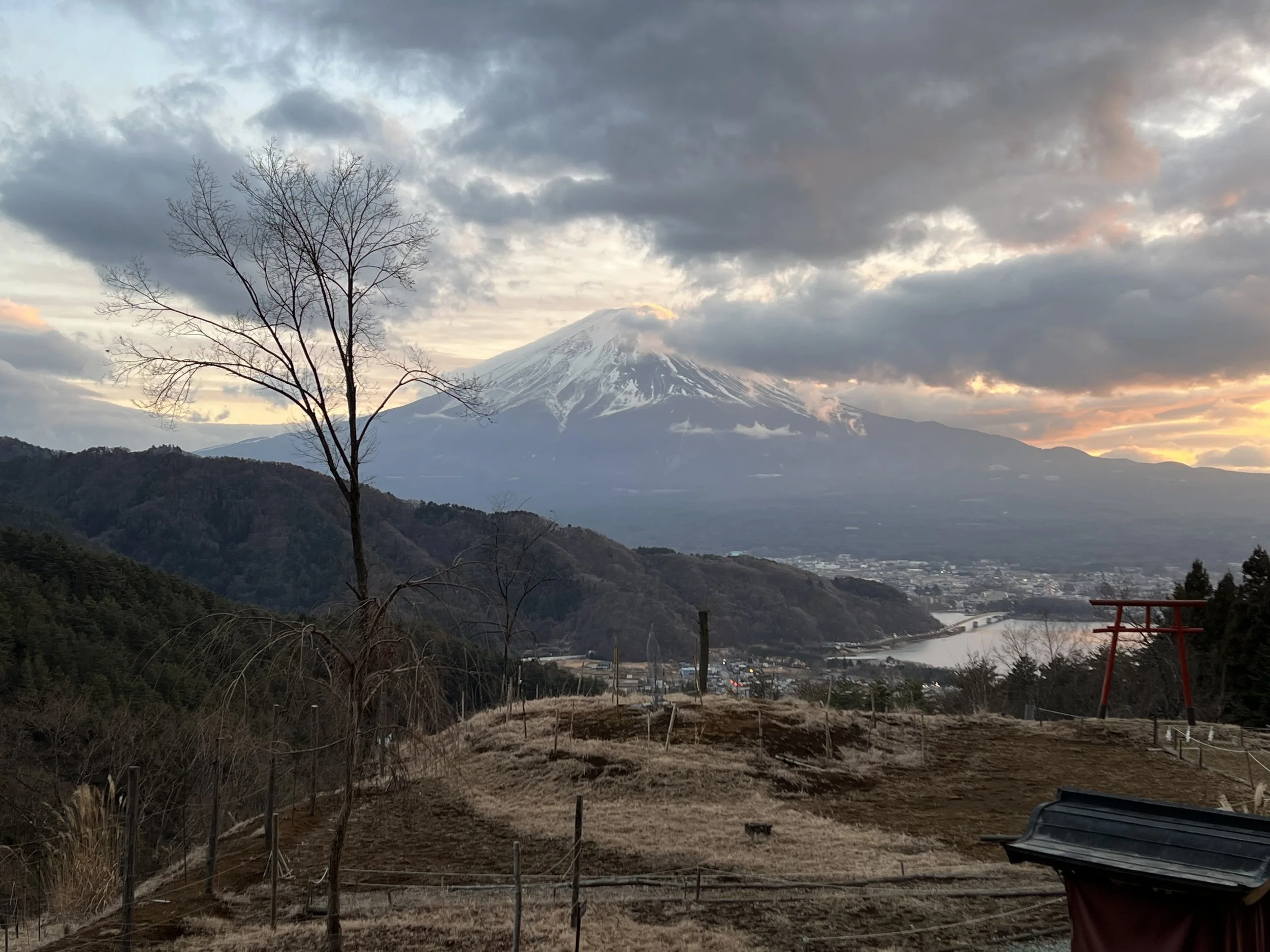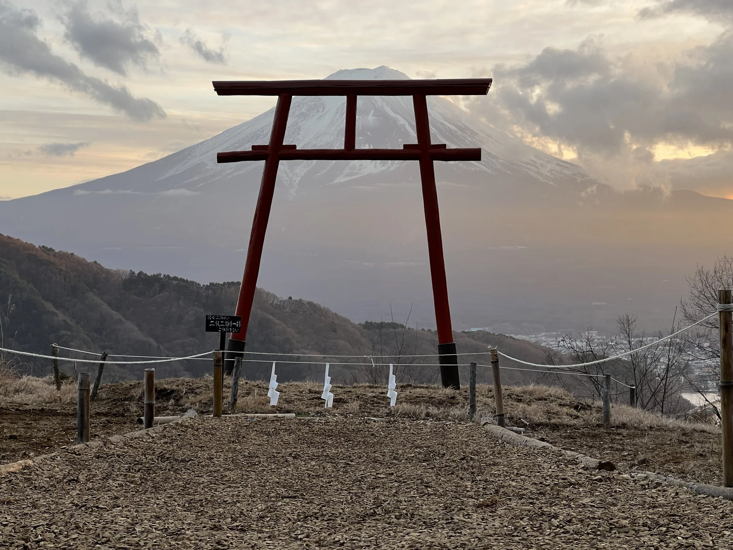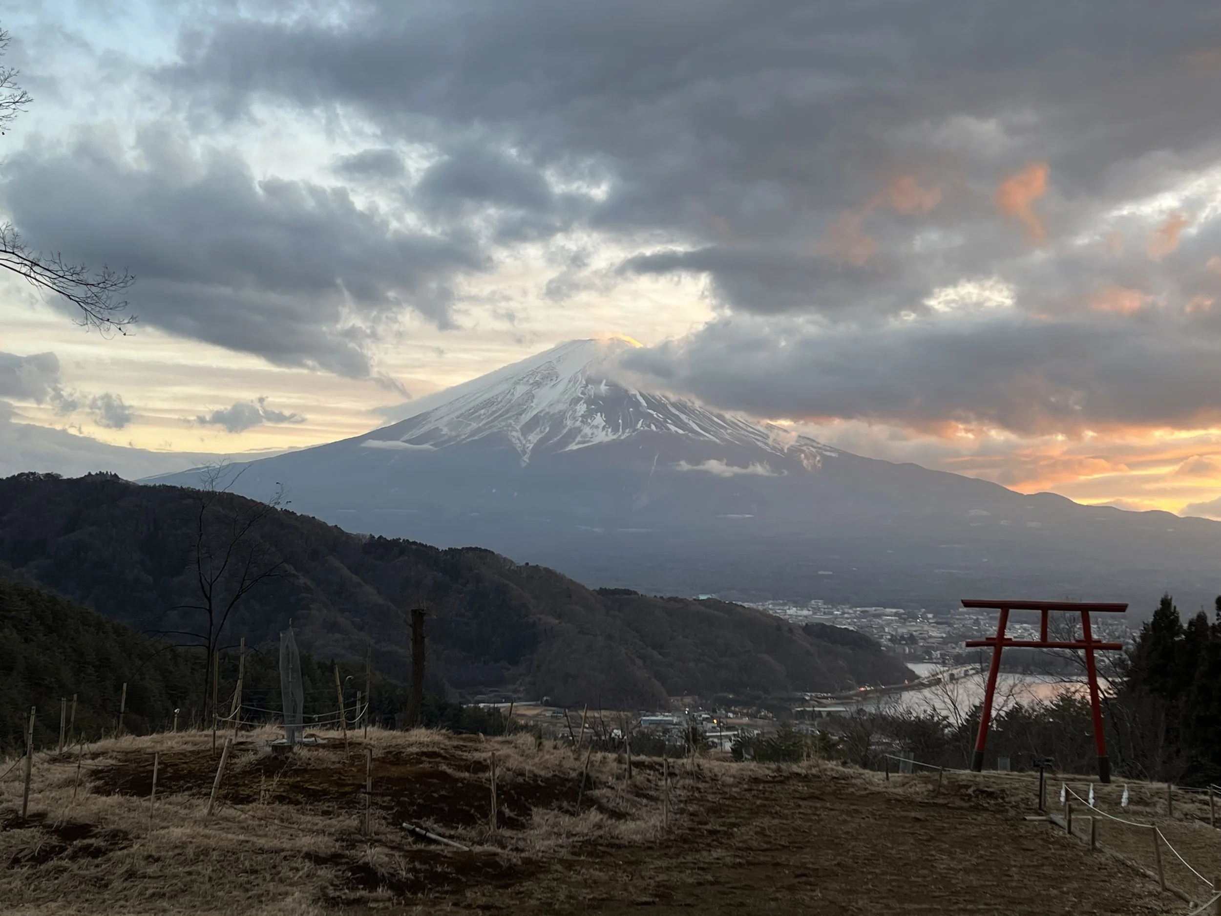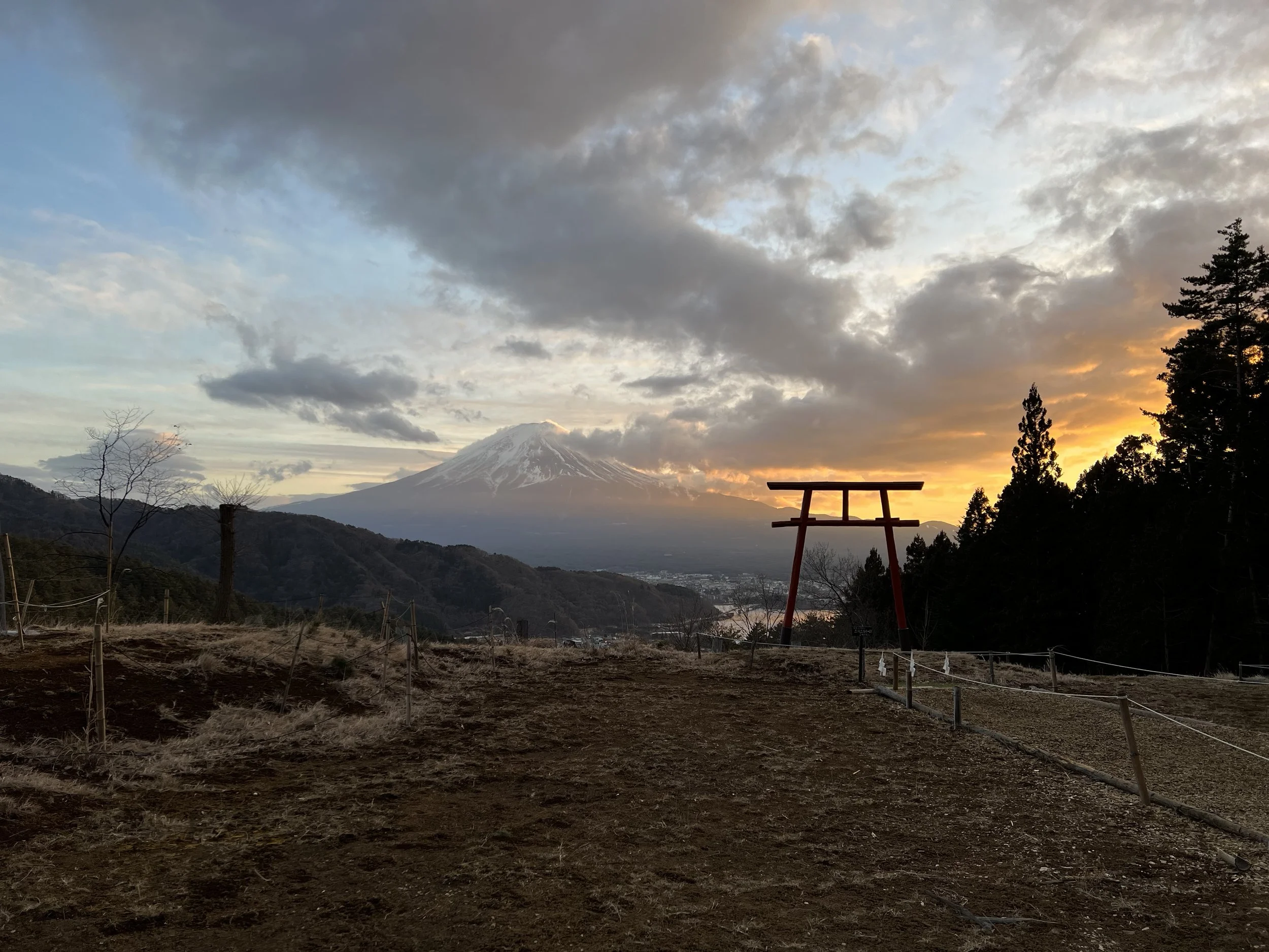After the steady climb, I finally reached the torii gate. I paid the small fee and stepped into the viewing area and it was absolutely worth it. The timing couldn’t have been better. The soft orange hues of the setting sun, the clear and unobstructed view of Mount Fuji, and the torii gate perfectly framed in the foreground created a scene that felt almost unreal.