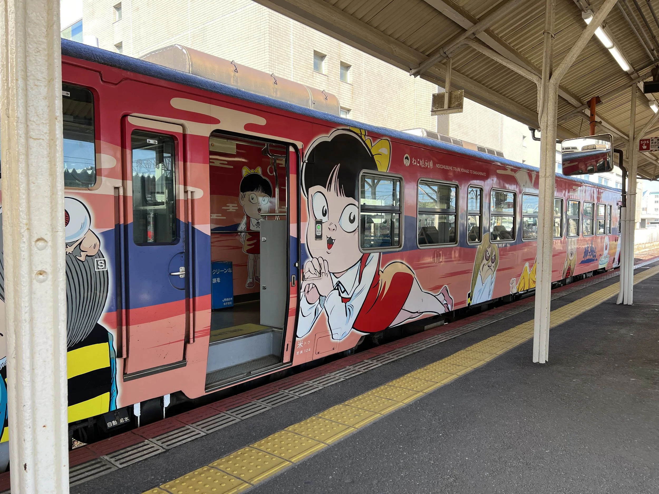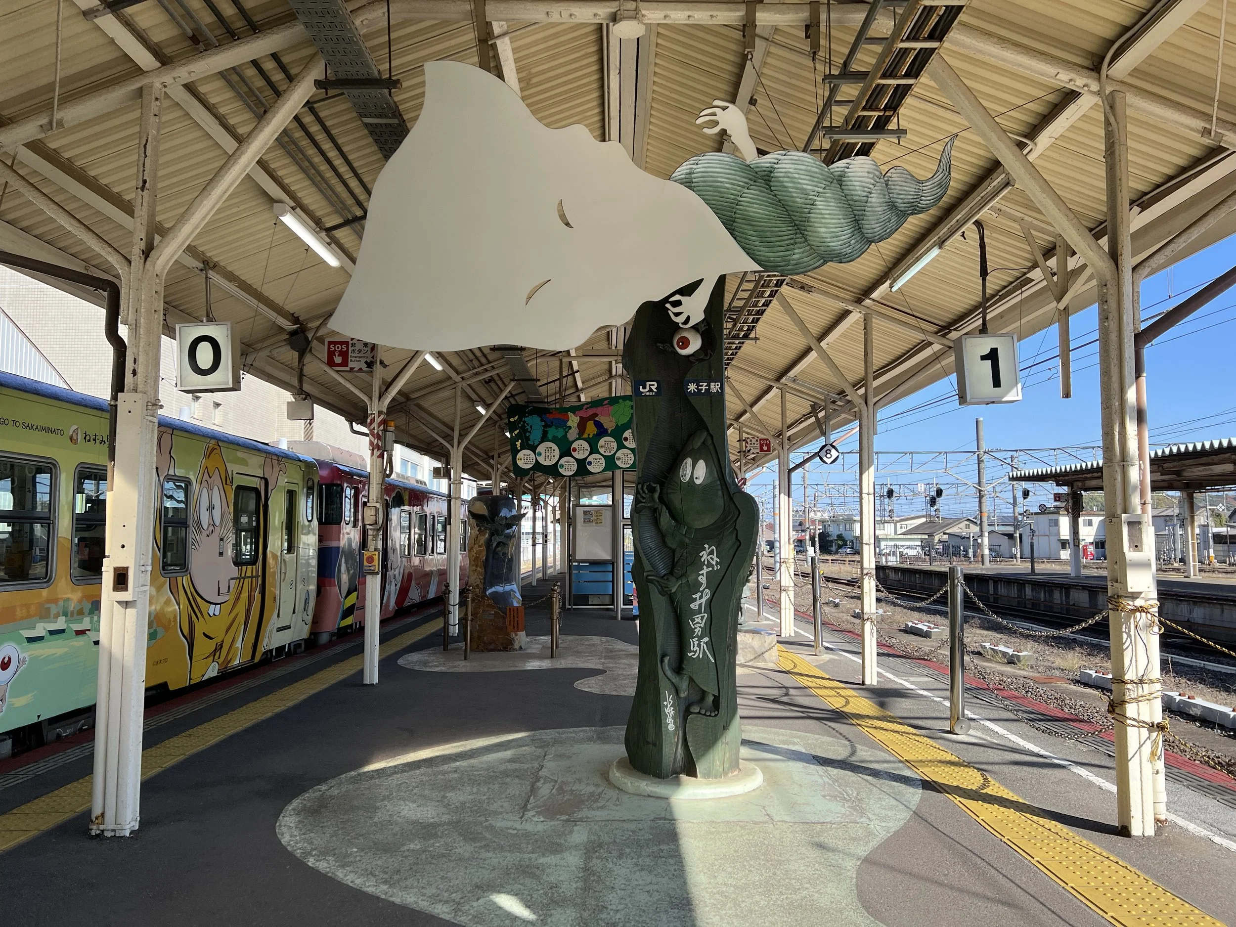 When I was travelling from Yonago to Sakaiminato, I had no idea these trains existed. I only realized it when I arrived at the platform and saw the train pulling in. The platform itself was also decorated with character art, and that moment of discovery instantly elevated the entire journey. What would have been a simple local train ride suddenly felt like part of the destination rather than just a way to get there.