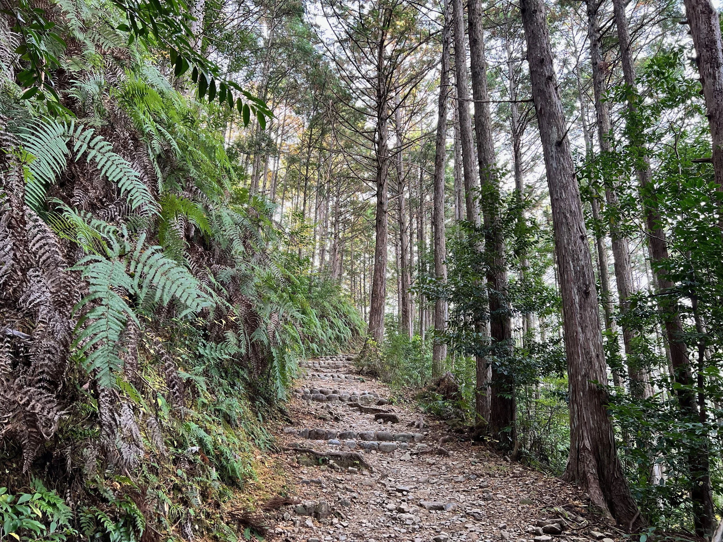 This intermediate section, known as the Kogumotori-goe, or “lesser of the small bird-catching passage,” is less challenging than the other difficult passages on the Nakahechi Route. The area also holds significance for Shugendo, the practice of mountain worship and ascetic training, which shaped the trail’s development.