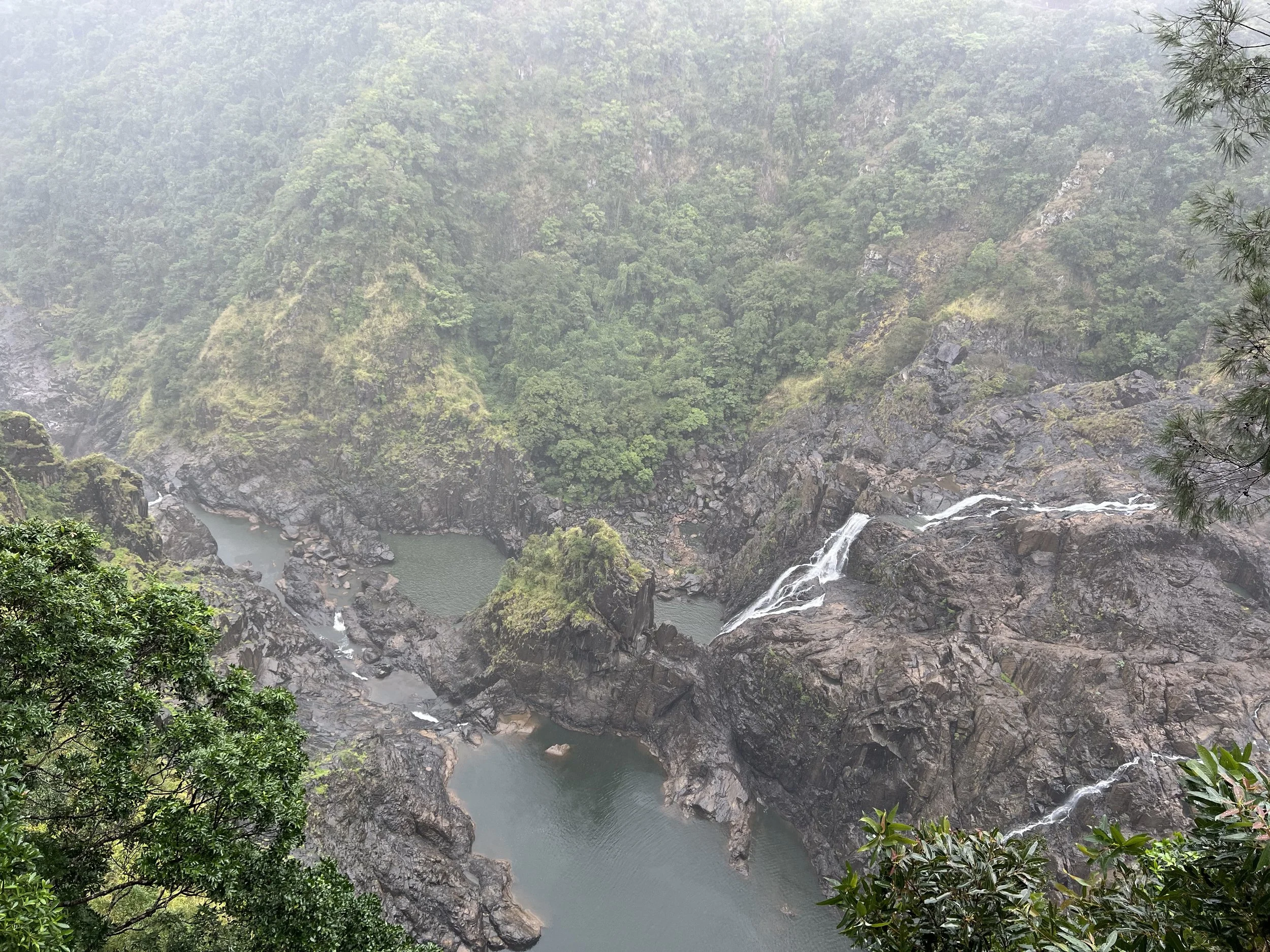 The low clouds and mist added an unexpectedly magical, almost mystical feel to the journey. As I chatted with my seatmates, we passed through tunnels, curved around mountainsides, and eventually reached the Barron Falls Train Station, where the train stopped to allow passengers to step out and enjoy the lookout. The falls weren’t at full flow—runoff was light that day—but the dramatic gorge still made the stop worthwhile. I could only imagine how powerful the waterfall must look after heavy rain.