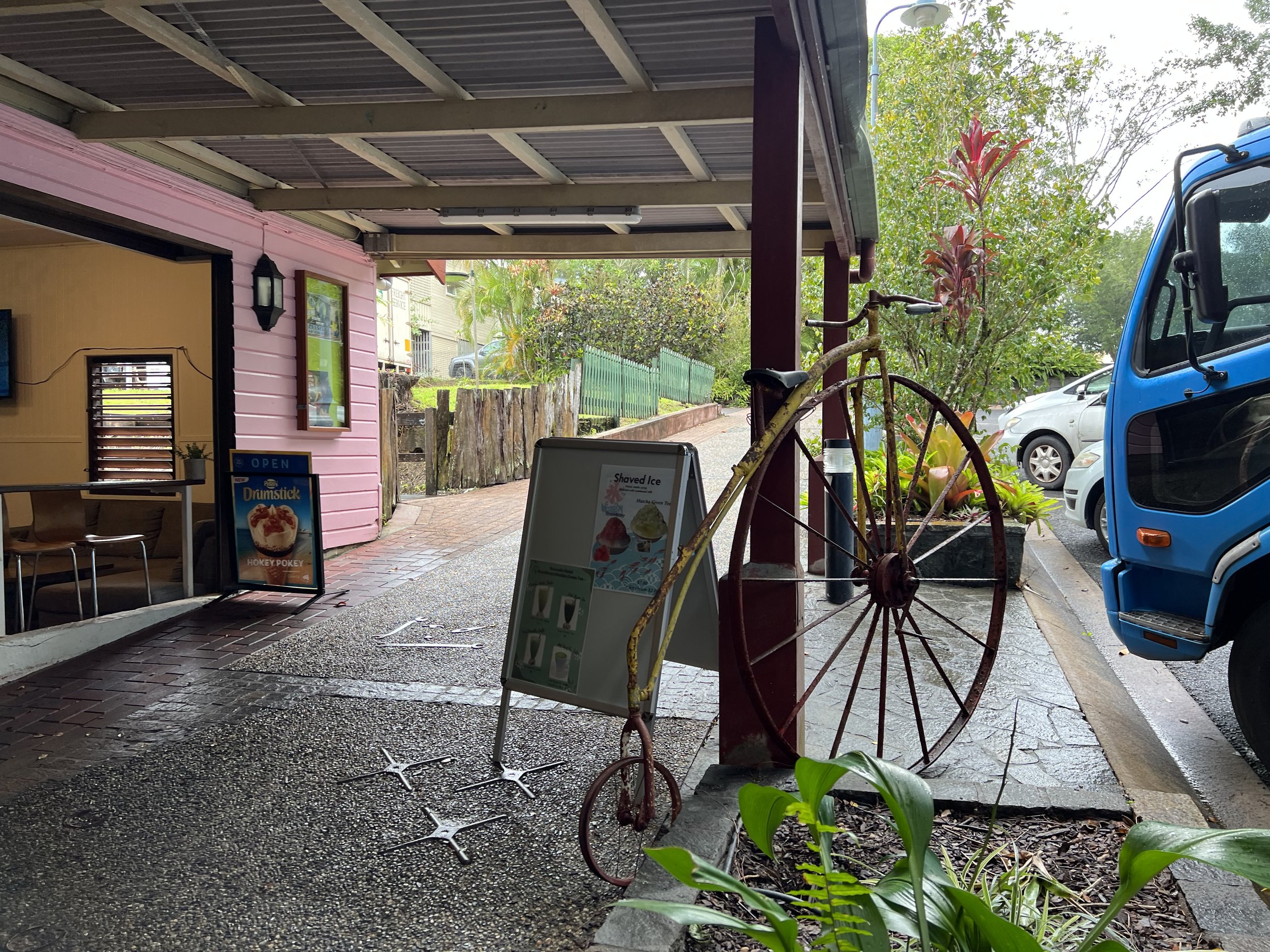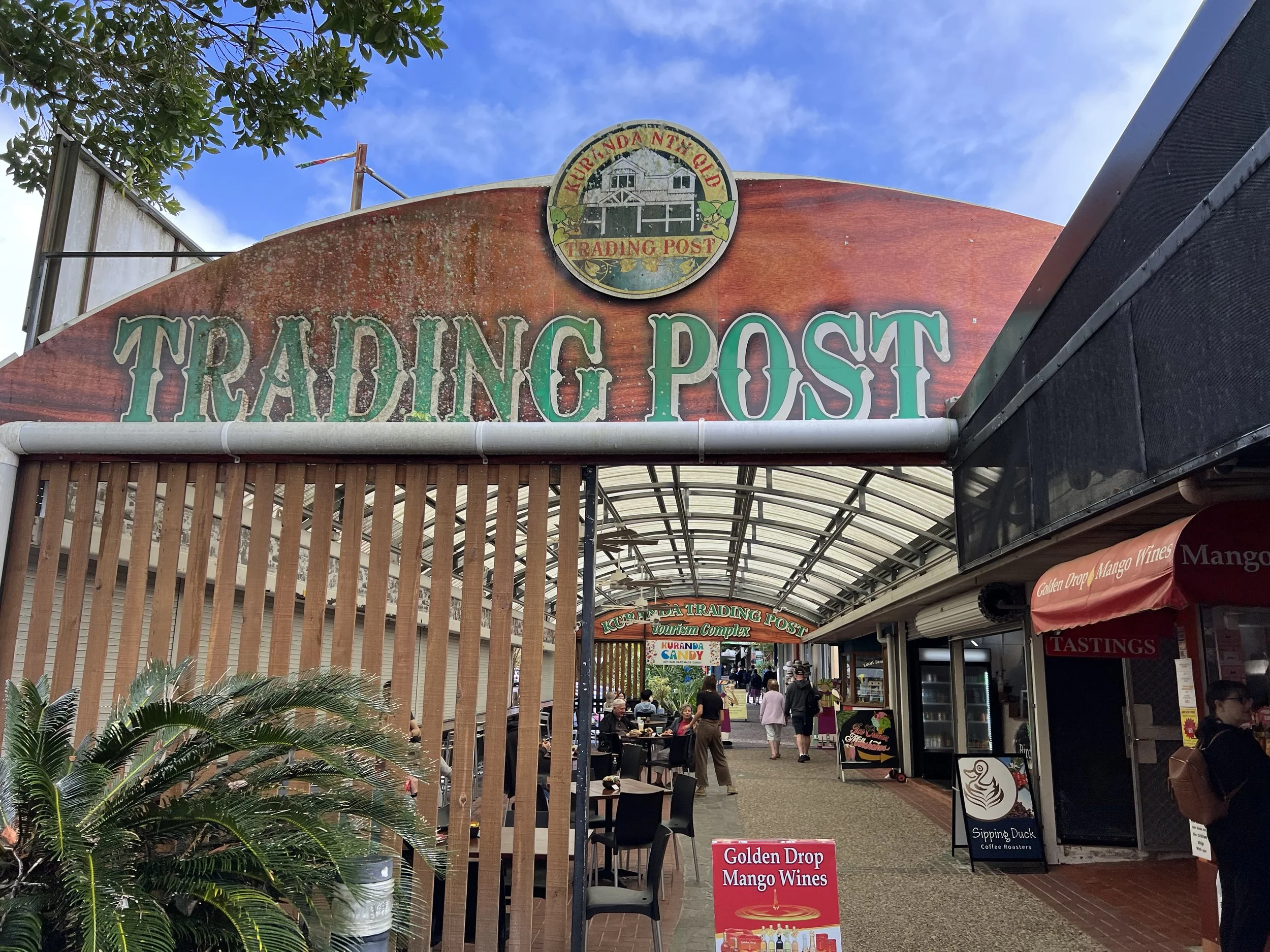 Kuranda offers plenty to do: the Butterfly Sanctuary, the Koala Gardens, and the Kuranda Amphitheatre are all popular choices. Since my time was limited, I chose to explore the village more deeply. The sidewalks are lined with murals, sculptures, and other art installations, giving the village a creative and colourful charm. There are several cafés, pubs, restaurants, galleries, and souvenir shops to wander through. I explored a handful of shops, visited a couple of art galleries, and simply enjoyed strolling through the village. I eventually stopped for lunch at a pub near the Skyrail station, and by coincidence ran into the same seatmates from the train—so we ended up enjoying lunch together.