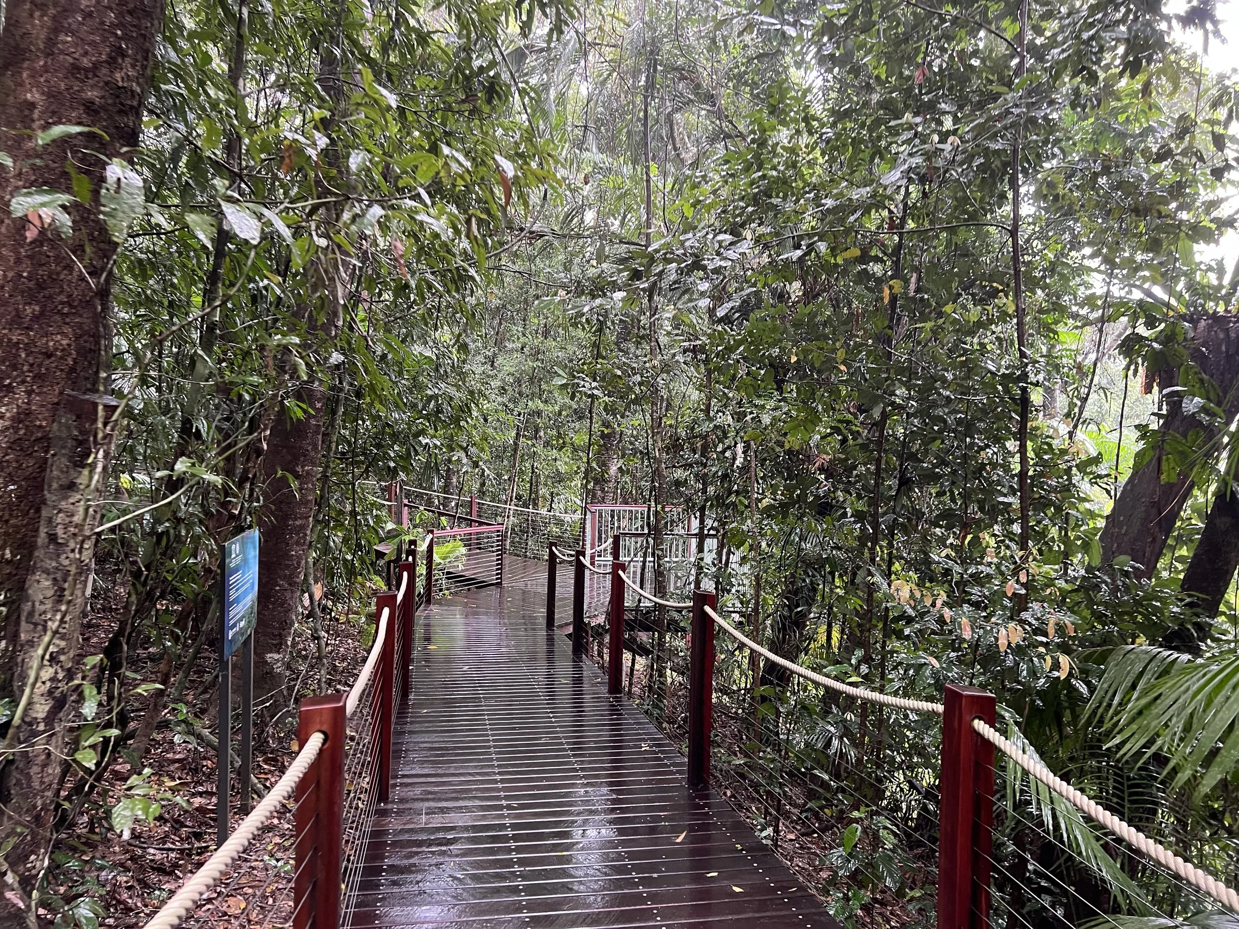 At Red Peak, the rain had intensified. I still wanted to walk the boardwalk through the ancient rainforest, which is accompanied by educational displays explaining the area’s natural and cultural significance. I would’ve loved more time, but with the downpour I ended up moving through the area quicker than planned. Ideally, I’d recommend spending 20–30 minutes here instead of the rushed 10–15 minutes I managed. Even with the rain, the rainforest was beautiful and tranquil.